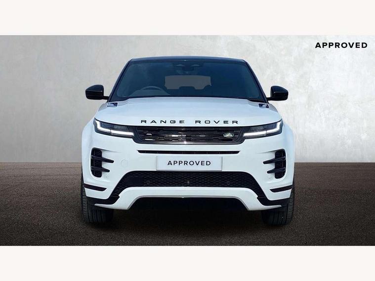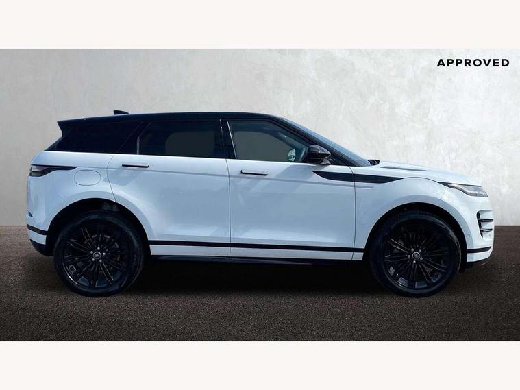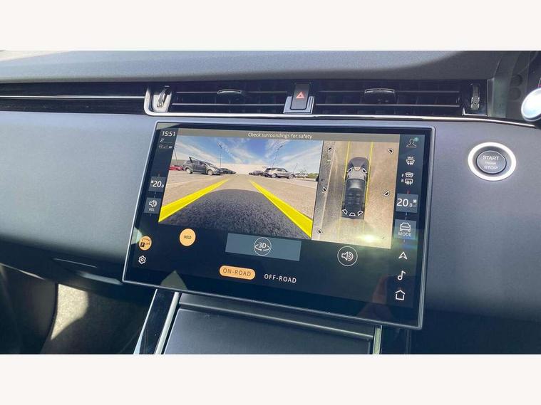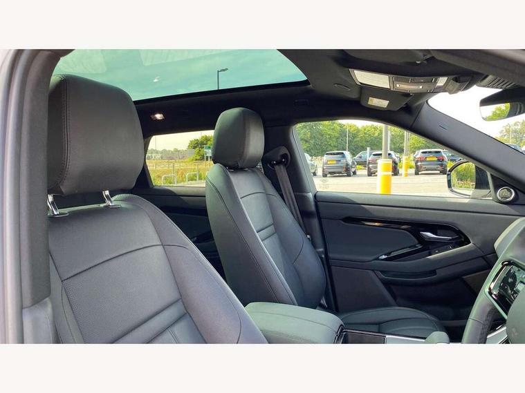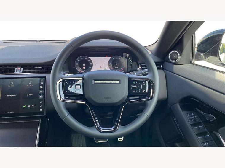 11.4" touch screen, 3D 360 degree surround camera with wade sensing, Adaptive cruise control, Android Auto, Apple car play, Blind spot assist, Bluetooth connectivity, Brake pad wear indicator warning light, Driver condition monitor, eCall emergency system, Eco mode, Electronic power assisted steering (EPAS), Front and rear parking aid, InControl remote, Interactive driver display, Land Rover InControl apps, Lane keep assist, Pivi pro connected includes diamond pivi variant, smart settings, connected navigation pro, nuance speech licence, Powered tailgate/boot lid, Rear collision monitor, Rear traffic monitor, Tailgate, Traffic sign recognition with adaptive speed limiter, Voice control system, Wireless device charging, All terrain progress control, Diesel exhaust fluid (DEF) large tank, Efficient Driveline, Large fuel tank, Terrain Response 2, Digital Audio Broadcast radio-DAB, Steering wheel mounted controls, Acoustic laminated windscreen, Auto headlights, Auto high beam assist, Automatic headlight levelling, Electric windows with one touch open/close and anti trap, Flush deployable exterior door handles, Front and rear recovery eyes, Heated rear window with timer, Heated washer jets, Heated windscreen, LED headlights with signature DRL and LED tail Lights, Power fold, auto-dimming, heated door mirrors with approach lights and auto dimming driver side, Rain sensing windscreen wipers, Rear animated directional indicators, Rear fog lights, Rear side wing doors, Rear wiper, Side repeater indicators in mirror, Tailgate spoiler, Third brake light, Winter wiper park position, 12 way driver memory and 10 way passenger electric front seats with 2 way manual headrest + 4 way lumbar support, 40:20:40 split folding rear seats with centre headrest and armrest, Ambient interior lighting, Bright metal pedals, Carpet mats, Chrome tread plates with range rover branding Includes stainless steel loadspace scuff plate with etched graphic, Customer configurable single point entry, Front and rear cupholders, Heated front seats, Heated steering wheel, Isofix system on outer rear seats, Manually adjustable steering column, Overhead lighting console, Overhead stowage for sunglasses, Passive front head restraints, Rear air vents, Rear head restraints, Satin chrome gearshift paddles, SE Grained leather upholstery, Single passenger seat, Standard steering wheel with Moonlight Bezel, Sunvisors with illuminated vanity mirrors, Twin sliding front centre armrest, Power socket pack 2 - Evoque, 3 rear 3 point seatbelts, Anti-lock braking system (ABS), Brake hold function, Customer configurable autolock, DSC - Dynamic Stability Control, Electronic brake force distribution, Electronic parking brake, Electronic traction control, Emergency braking, Front and rear seatbelt reminder, Hill descent control, Hill launch assist, Low traction launch, Occupant protection assist, Passenger seat occupant detector, Power operated child locks, Roll stability control, Six airbags - Driver and passenger airbags/driver knee airbag/front side airbag and curtain airbags, Torque vectoring brake, Tyre pressure monitoring system, Alarm, Immobiliser, Intrusion sensor, Keyless entry, Locking wheel nuts, All season tyres,