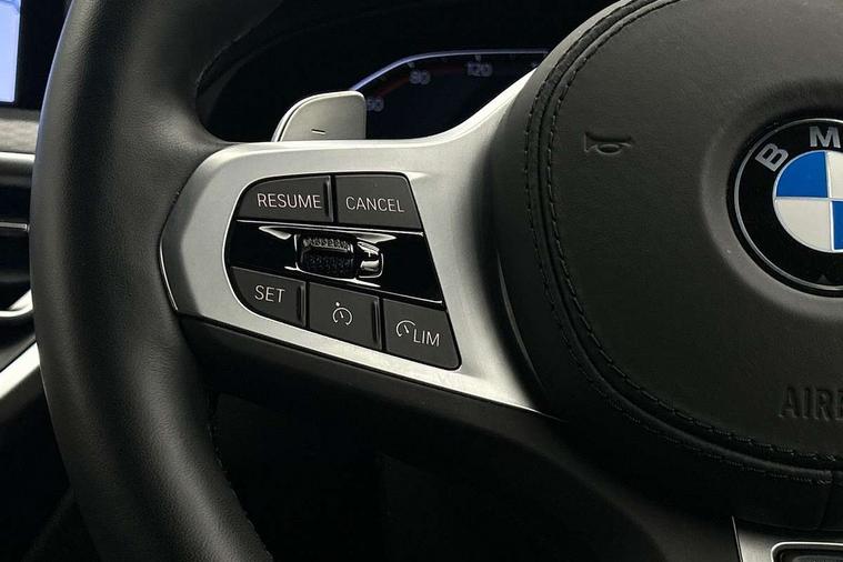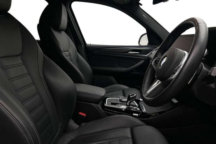 Active Guard, Attentiveness assist, BMW Live Cockpit Professional nav system including 12.3" instrument display + 12.3 high resolution control display, BMW Online services, BMW Teleservices, Brake pad wear indicator in front and rear, Check Control warning system for monitoring of lights and door/luggage compartment open warning, Condition based service - BMW service history, electronic service booklet, integrated owner's handbook, Connected drive services, Cruise control with brake function + speed limiter, Electric boot lid, Front/rear Parking distance control, iDrive Controller with 8 favourite buttons, Instrument cluster with speedometer with mph readout, tachometer, fuel gauge and oil temperature gauge, Lights on warning by audio warning signal when ignition is switched off, Oil sensor for level and grade, warning by check control system, On board computer - average speed+fuel consumption, service interval, clock/date, odometer/trip meter, outside temperature display and ice warning, Optimum shift indicator, Personal Profile - automatic lock when driving away selectable, Run flat indicator, Stop/start system, Variable sports power steering with drive performance control Sport+ mode, Automatic transmission with gearshift paddles, Incorrect fuelling protection, M sport suspension, Multi-link rear suspension, Performance Control, BMW professional radio/CD/MP3, DAB tuner, Acoustic glazing, Automatic windscreen wipers and automatic headlight, Black finish on B pillars, Body colour door handles, Body colour electric adjust heated aspherical door mirrors, Body colour roof mouldings, Body coloured bumpers, Direction indicator, side repeaters, integrated in exterior mirrors, Dynamic brake lights, Exhaust tailpipes - dual, round, split left and right with chrome finisher, Fingertip control / anti-trap function on electric window, Folding wing mirrors with auto dimming, Follow me home headlights, Front and rear bumper system with replaceable deformation elements, Front and rear electric windows, Gloss chrome tailpipes finishers, Green tinted heat insulating glass, Heated windscreen washer jets, High beam assistant, High gloss black shadow line roof rails, High gloss shadowline exterior trim in decorative moulding side frame/recess cover/guide rail/B, C pillars/mirror frame and triangle with mirror base, High level 3rd brake light incorporating LED Technology, Interior rear view electrochromatic mirror with automatic anti dazzle function, LED tail lights, Lightweight engineering, M aerodynamic bodystyling, M Sport entry door sill strips, Model designation, Rear side wing doors, Rear wing door, Rear wiper, Shark fin antenna, Side exterior M designation badges, Visible VIN plate, Welcome lighting, Windscreen wipers with adjustable interval, 12V power socket in front centre console, 3 rear headrests, 3 seat bench in 2nd row, 3 zone automatic air conditioning, 4 lashing points to secure luggage, 40:20:40 split folding rear seat with loading system, Ambient lighting, Anthracite headlining, Automatic interior light when door is opened/ignition switched off or via remote key, Driver seat backrest width adjustment, Floor mats in velour, Foldable storage floor with compartment, Four grab handles integrated in roof lining, Front and rear bottle holders integrated into door trim storage compartments, Front and rear side armrests integrated into door trim, Front centre armrest with storage compartment, Front footwell lights, Front head restraints, Front passenger seat, Front sports seats, Front/rear courtesy lights with soft on/off dimming, Front/rear reading lights, Heated front seats, Isofix rear child seat preparation, Leather gear knob, Luggage area underfloor compartment, Luggage compartment lighting, M sport leather steering wheel, Multifunction steering wheel, Parcel shelf removeable and storable under boot floor, Reach and rake adjustable steering column, Rear centre armrest with 2 cupholders, Removable / retractable luggage cover, Slope adjustable rear seats, Storage compartment in rear centre console and front/rear door trims, Sun visors with vanity mirrors and ticket pocket, Toolkit located in luggage compartment, Two front cupholders with removable oddments tray/lid, Vernasca leather upholstery, Connected pro pack - X3, Driving assistant pack - X3, ADB - Automatic Differential Brake, Anti-lock braking system (ABS) with brake assist, Automatic Stability Control (ASC), Battery safety cut-off, BMW emergency call, Brake drying, Brake energy regeneration, Braking pre-tensioning, Child locks on rear doors, Cornering brake control (CBC), Crash Sensor - activation of central locking release, hazard warning light and interior lighting, Deactivation of fuel pump in the event of a crash, Driver and front passenger front and side airbags with passenger deactivation and ITS front and rear head airbags, DSC+, Dynamic brake control, Dynamic Traction Control - DTC, Electromechanical parking brake, Hill descent control, Hill start assist, Seatbelt security check for front seats, Side impact protection, Three point seatbelts to all seats with front and outer rear pyrotechnic belt tensioners and seat belt force limiters, Two tone horn, Tyre pressure sensor, Ventilated front and rear disc brakes, Warning triangle and first aid kit, Central locking switch for all doors, fuel filler cap and luggage compartment, Electronic engine immobiliser, Locking wheel nuts, Remote control including two integrated key - one button for open/close all lockable content, windows and separate button for open luggage compartment, Remote control Thatcham category 1 alarm, Start/stop button with Comfort Go keyless engine start and auto Start/stop deactivation button, Low rolling resistance tyres,