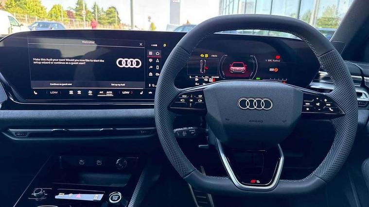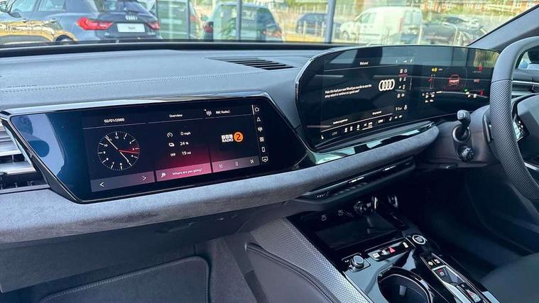 Adaptive cruise control, Advanced driver attention and fatigue montior, Audi application store, Audi assistant, Audi connect emergency call and service, Audi drive select, Audi smartphone interface, Audi virtual cockpit plus with 11.9" OLED colour display, Automatic start/stop system with coasting functionality, Camera based traffic sign recognition, Intersection assist, Lane change assistant with exit warning system, rear cross traffic alert and rear turn assist, Lane departure warning with emergency assist, MMI 10.9" front passenger touch display, MMI navigation plus with high resolution 14.5" OLED touchscreen colour display, Park assist plus, Parking system plus with 360 display, Progressive steering with servotronic, Swerve assist and turn assist, Top view camera, Traffic sign based speed limiter, Household plug type G, Hybrid propulsion system, Industrial connector CEE 32A, 230V, long and straight for the e-tron charging system, Mode 3 type 2 AC charging cable 22kW, Sports suspension lowered by 20mm, 2 USB-C ports in both the front and rear, Audi sound system impressive sound with 10 loudspeakers including centre speaker and subwoofer, 6-channel amplifier with a total output of 180 watts, DAB digital radio reception, Smartphone compartment with wireless charging, Aluminium window trims, Auto dimming rear view mirror, Black door handles, Black roof rails, Dark chrome-plated tailpipe trims, Door mirrors - electrically adjustable, heated, folding and auto dimming on both sides, Front and rear electric windows, Front door sill trims with aluminium inlays, illuminated with 'S' logo, Headlight cleaning system, High beam assist, LED daytime running lights, LED rear lights pro incl. dynamic rear indicators and illuminated light strip with animated coming and leaving home function, LED third brake light, Matrix LED headlights with eight light signatures selectable via the MMI or the myAudi app, Privacy glass, Rear and side windows with heat insulating glass, Rear side wing doors, Rear wash/wipe, Removal of S line badge on the front wings, S line bumpers, radiator grille and diffuser in phantom black and diffuser insert in matt anthracite, White rhombus logo projection light in exterior mirrors, Windscreen with acoustic glazing, 3 rear headrests, 3 seat rear bench, 3 spoke leather steering wheel with multi-function buttons with touch control, flattened on top and bottom, with S badging and contrast stitching, 3-zone automatic climate control, 40:20:40 split folding rear seat bench with centre armrest and cup holders, Auxiliary air conditioning, Comfort front centre armrest, Electrically adjustable front seats, Front and rear floor mats, Front sport seats with integrated headrest and S embossed logo, Headlining in black cloth, Heated front seats, i-Size child seat mounting on the front passenger side and outer rear seats, i-Size and top tether on the outer rear seats, LED roof module front and rear including reading lights, Luggage compartment lid, electrically opening and closing, Manual steering column height and depth adjustment, Memory function for driver seat, Single front passenger seat, Stainless steel pedals and footrest, Steering wheel grips in perforated leather and shift paddles, Storage compartment lighting under the centre armrest, Ambient lighting package plus - A5, Black styling pack plus - A5, 3x3 point rear seat belts, Acoustic vehicle alerting system, Convenience key with safelock, Driver airbag, Electric child safety locks, First aid kit with warning triangle and vests, Front emergency brake assist, Front passenger airbag, Front passenger airbag deactivation, Hill hold assist, Occupant detection in rear seat area, Proactive passenger protection system for front, sides and rear, Red brake calipers, Seat belt monitoring with rear seat occupant reminder, Side airbags in front and rear with head airbag system and front interaction airbag, Tyre pressure loss indicator, Anti theft alarm, Anti-theft wheel bolts, Keyless Go, Accent surfaces and control buttons in gloss black, Black dashboard with contrast stitching, Softwrap in Dinamica with contrast stitching, Upper and lower interior elements in dinamica microfiber, 20" 5 arm fold design Audi sport alloy wheels in silk matt grey and gloss turned finish, Tyre repair kit,