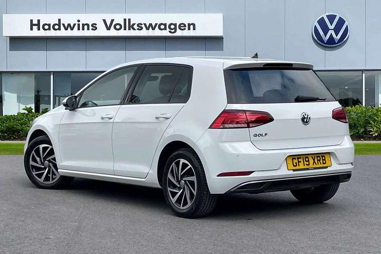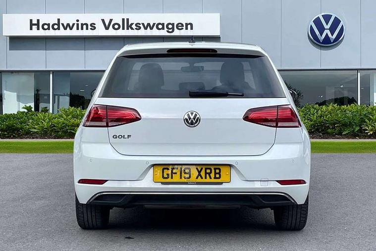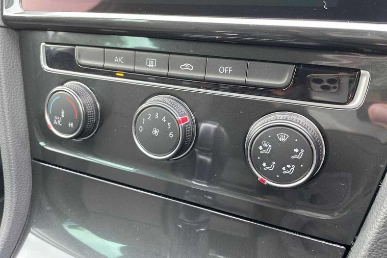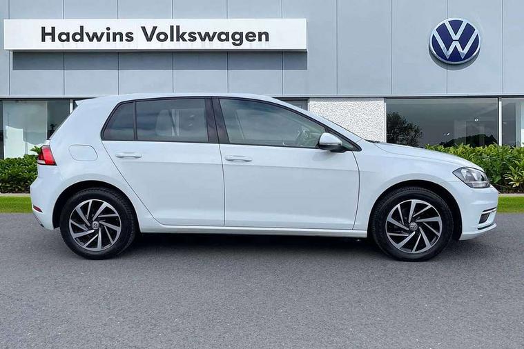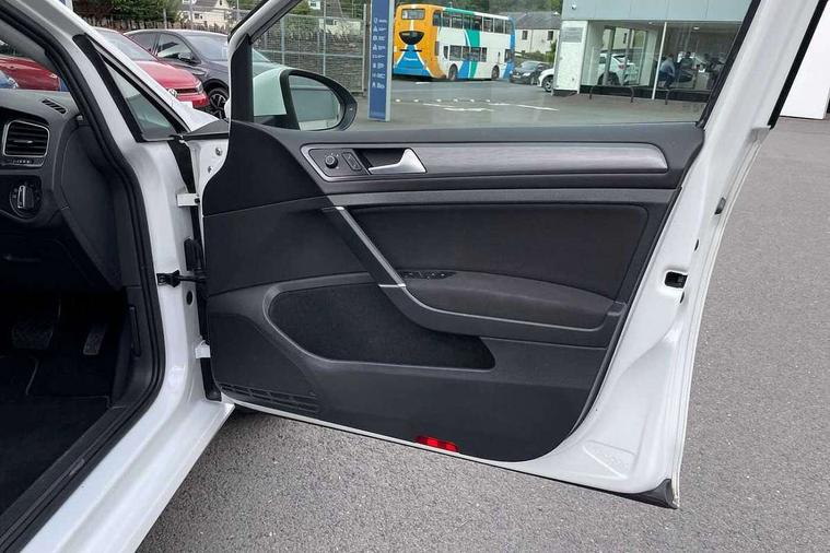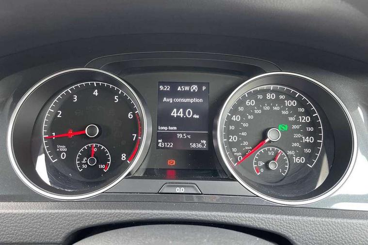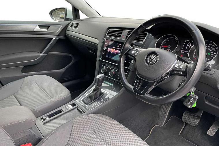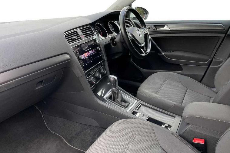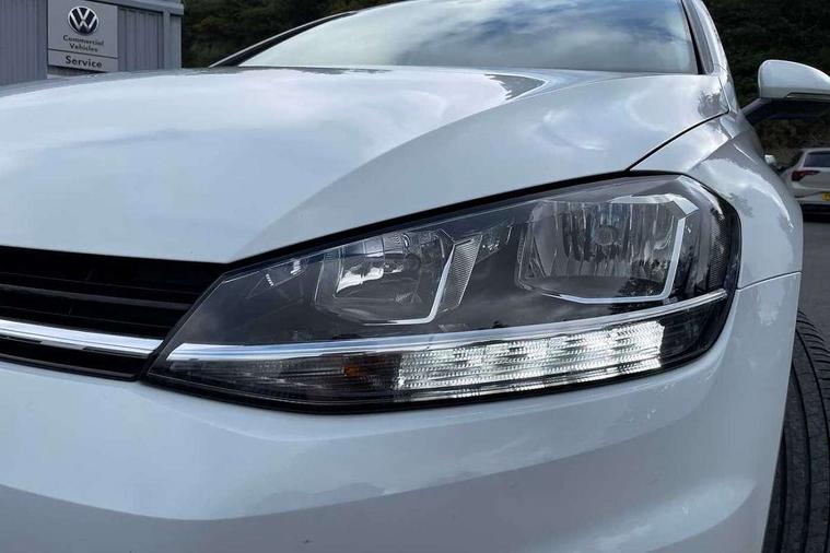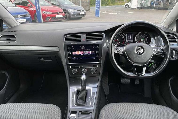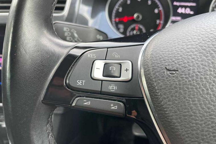'Lights On' Reminder warning buzzer, ACC - Adaptive cruise control with front assist, forward collision warning, distance monitoring, city emergency brake and speed limiter, Bluetooth telephone and audio connection for compatible devices, Brake pad wear indicator warning light, Driver alert system, Driver profile selection, Driving Mode Selection with four preset modes - Eco, normal, sport or individual modes, Instrument cluster in white, Multifunction computer with visual gear change recommendation for fuel consumption, Power assisted speed sensitive electro-mechanical steering, Push tank flap, Speed limit display, Speedo, rev counter, electronic odometer, trip, service interval display, exterior temperature and fuel gauge, Stop/start system, Warning buzzer and light for front seatbelts unfastened, Battery regeneration during braking, XDS electronic differential lock, Composition media system, DAB Digital radio receiver, MP3/WMA compatability, Multi device interface (MDI) with USB connection, Personalisation 1.1 profile for media, Premium USB cable in choice of either Apple or Android smartphone compatibility, SD card slot, SMS Functionality, USB and SD card connectivity, Black front air intake and radiator grille with chrome insert, Black rear diffuser, Body colour bumpers, Body colour door handles, Body colour door mirrors with integrated indicators, Dusk sensor + automatic driving lights, Electric front windows, Electric rear windows, Electrically adjustable and heated door mirrors, Fully galvanised body, Heated rear windscreen, Hidden exhaust pipe, High level 3rd brake light incorporating LED Technology, LED daytime running lights, LED front fog lights with static cornering light function, Rear fog lamp, Rear tinted glass 65% light absorbing from B pillar backwards, Rear window aerial, Rear window wash/wipe with intermittent wipe, Reflectors in all doors, Tailgate with integrated rear roof spoiler, Windscreen wipers/ intermittent wipe + 4 position delay, 12V socket in luggage compartment, 3 rear headrests, 4 load lashing points in luggage compartment, 60/40 split folding rear seat backrest, Auto fold down lever in rear seat backrest, Bag hook in luggage compartment x 2, Cooled glovebox, Cupholder cover, Dust/pollen filter, Front and rear reading lights incorporating LED technology, Front centre armrest with storage compartment and two rear air vents, Front seat back storage pockets, Grab handles front x 2, rear x 2 with integrated coat hooks, Height and reach adjustable steering wheel, Illuminated vanity mirrors, Instrument lighting white adjustable panel illumination, Interior light delay, Isofix preparation for 2 rear child seats, Load through provision with rear centre armrest and cupholders x2, Luggage compartment lighting, Overhead storage box, Passenger underseat drawer, Pearl grey headlining, Storage box in luggage compartment, Storage compartment in roof console with cover, Storage compartments in centre console, Storage compartments in front doors, Storage compartments in rear doors, Stowable luggage compartment cover, Sun visors, Variable boot floor, height adjustable and removable, Convenience Pack - Golf, Light and Sight pack - Golf, Mirror pack - Golf, 3 rear three point seatbelts, Airbags - Driver's and front passenger's, curtain airbag, Driver's knee, front side impact and passenger's airbag deactivation switch, Anti-lock Braking System (ABS) with Hydraulic Brake Assist (HBA), Automatic post collision braking system, Child locks on rear doors, Driver/Passenger optimised head restraints, Electronic parking brake with auto hold, Electronic stability control (ESC) including Electronic differential lock (EDL) and ASR (Traction control) with deactivation via infotainment system, Pre crash preventive occupant protection, Three point height adjustable front seatbelts with tensioners, Tyre pressure loss indicator, Alarm with interior protection and deactivation via infotainment system, Electronic engine immobiliser, Remote central locking with 2 remote folding keys, Brushed dark silver decorative inserts in dash and door panels, Chrome plated air vent surround, Chrome plated electric mirror adjustment light switch surround, Polar night black centre console, Steel space saver spare wheel,