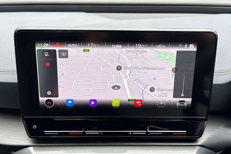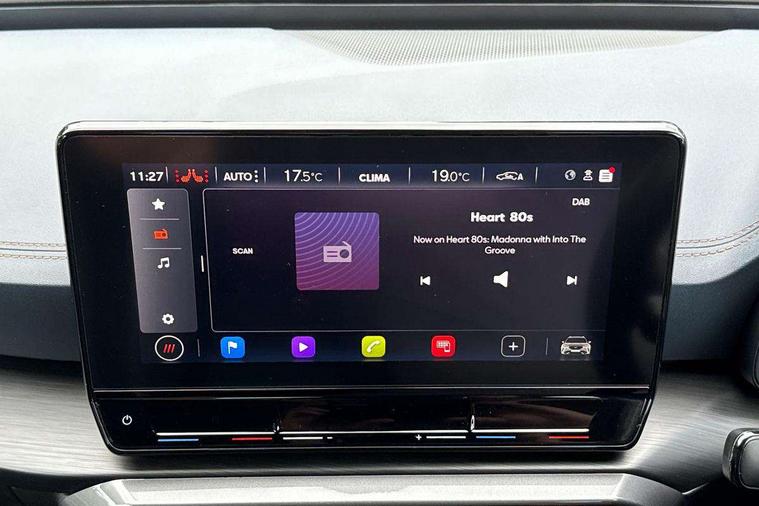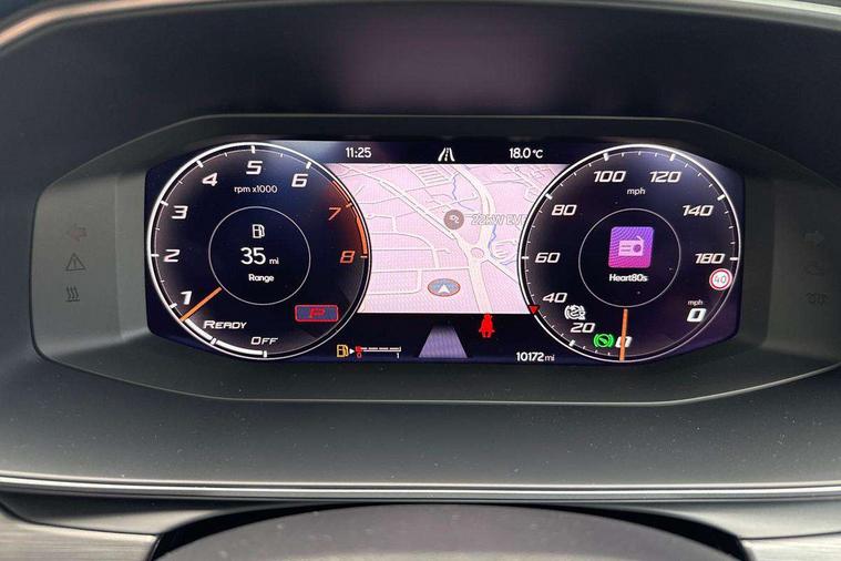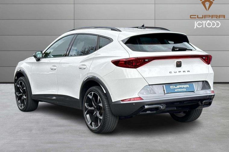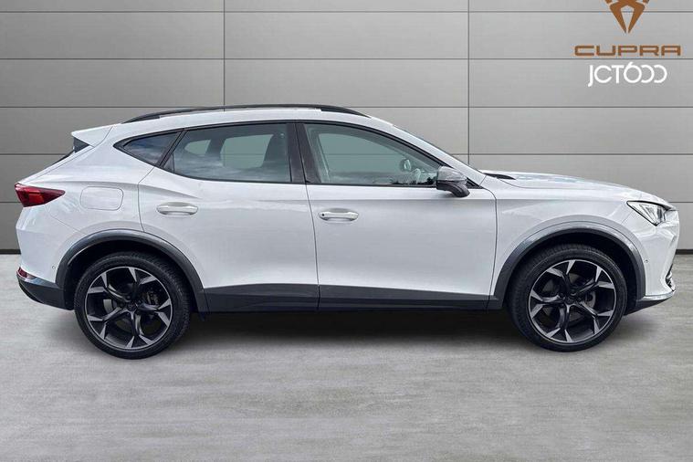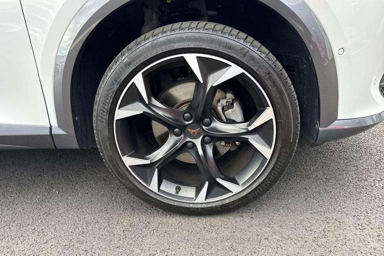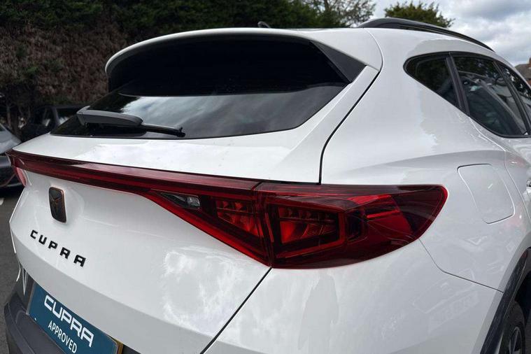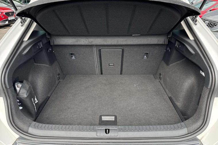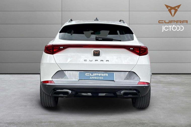 Digital cockpit and configurable dashboard, Driver alert system, Driving profile selection, E-call, Forward collision warning with automatic braking, Lane assist, Navigation system with 12'' Touchscreen Display, Park assist (inc front/rear parking sensors), PAS, Predictive adaptive cruise control with speed limiter, Rear view camera, RPM, trip computer, outside temp gauge, instrument light brightness, low fuel warning light, lights on reminder, gearshift indicator, Service interval indicator, Start/stop system with regenerative braking, Voice control system, Wireless apple carplay, Wireless phone charger, Electronic locking differential and dynamic traction support, Standard suspension, 2 front and 2 rear USB type C sockets, Auxiliary input socket, DAB radio, Auto dimming rear view mirror, Body colour door handles, Body coloured bumpers, Dark grey wing mirror, Daytime running light with automatic headlight control and coming home feature, Dynamic headlight range control, Electric front/rear windows, Electrically adjustable heated and folding door mirrors with memory function, Front fog lamps with cornering function, Gloss black roof rails and window surrounds, LED Headlights, LED Taillights with dynamic indicator, Rain sensing wipers, Rear diffuser with black simulated exhaust pipes, Rear side wing doors, Rear wash/wipe, Third brake light, Tinted rear windows, Welcome lights, 12v power supply in centre console, 12V socket, 12v socket in loadspace, 2 front and 2 rear reading lights, 230V socket, 3 seat bench in 2nd row, 60/40 split rear bench seat with armrest and mechanical seat release, Dust/pollen filter, Front and rear head restraints, Front centre armrest, Height/reach adjust steering wheel, Illuminated interior front door sills, Illuminated sunvisor with mirror, Isofix, Leather multi function heated steering wheel with gear shift paddles, Luggage tie-down hooks, Single front passenger seat, Three zone climate control with control panel in rear, Variable luggage/load compartment floor, Wraparound lighting, Genuine Nappa leather Pack - Cupra, 3 point seatbelts on all rear seats, ABS, Brake control system - ESC and brake booster, Child proof door locks, Driver and front passenger airbags with front passenger airbag de-activation, Electronic parking brake, Front and rear disc brakes, Front side curtain airbags, Hill hold control, Seat belt reminder for front and rear seats, Tyre pressure monitoring system, Anti theft alarm system, Keyless entry and start system (KESSY), Locking wheel bolts, Copper and aluminium interior detailing, 19" 'Exclusive' machined sport matte black and silver alloy wheels,