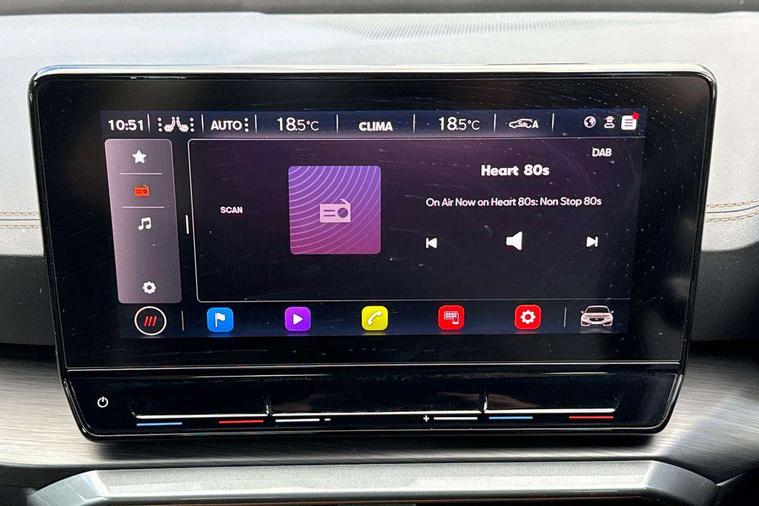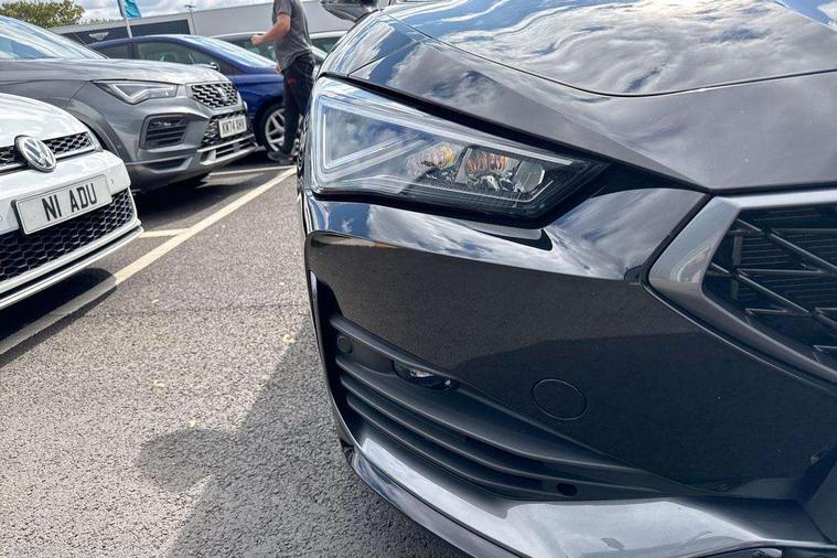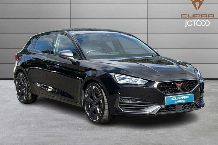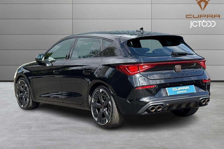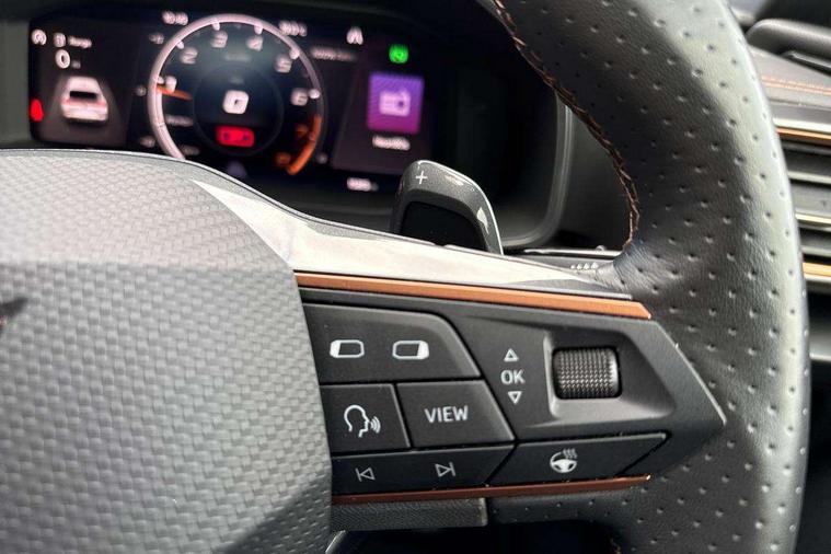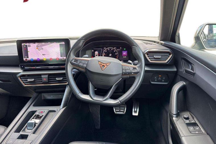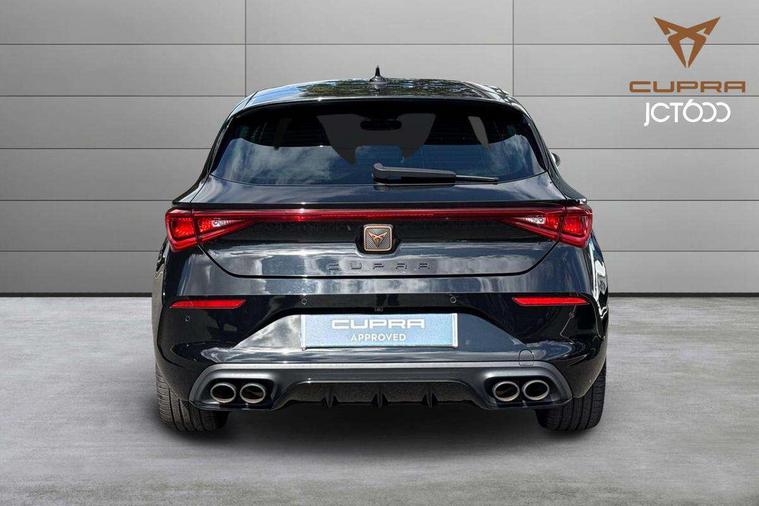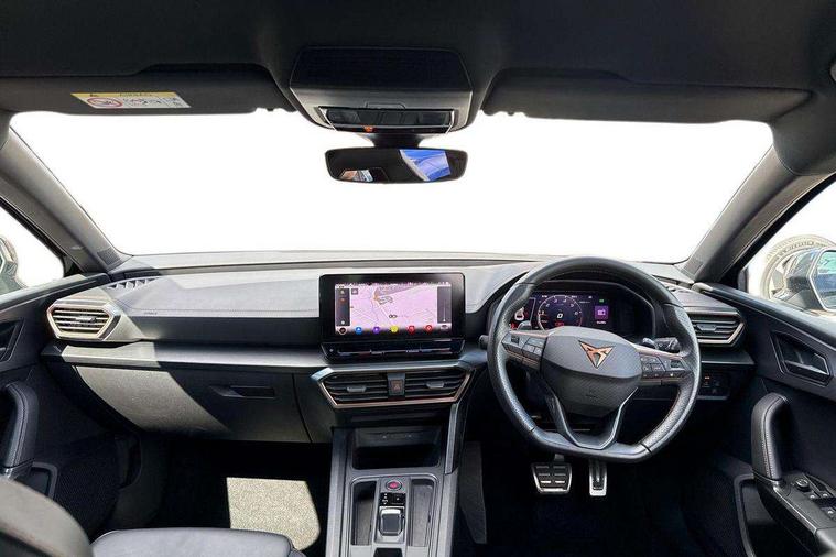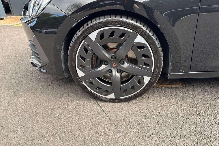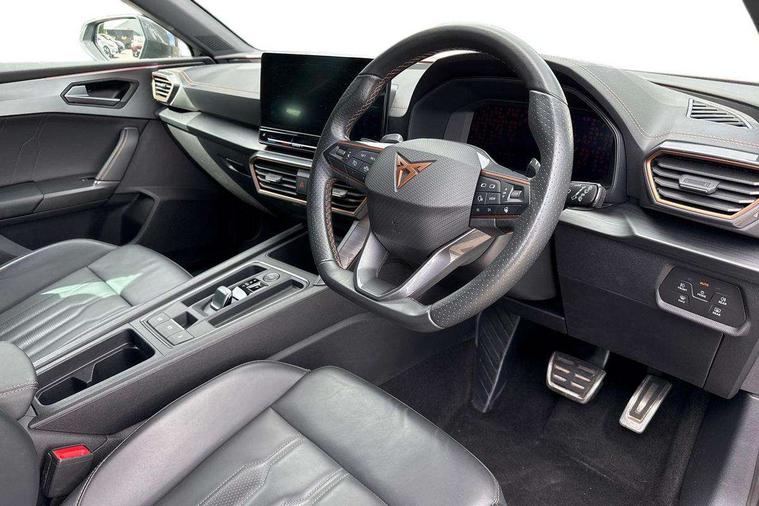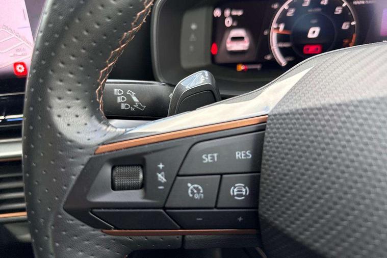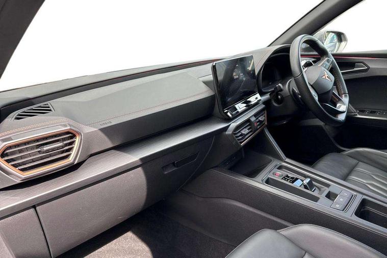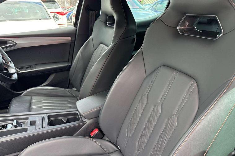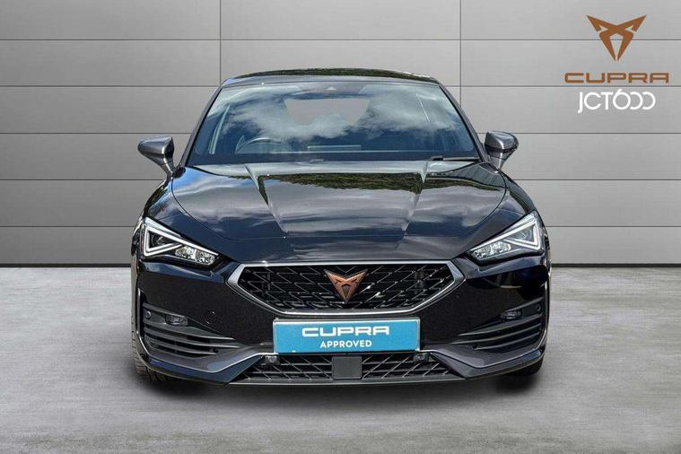 CUPRA drive profile selection with 4 modes (Comfort/Cupra/Sport/Individual), throttle response and gearshift mode, Digital cockpit, E-call, Four x USB Type C ports, Front assist with forward collision warning braking reaction to vehicles, pedestrians and cyclists, Full link smartphone integration with Mirror Link, wireless Apple CarPlay and wired Google Android Auto, Lane assist, Lockable tailgate, Park assist (inc front/rear parking sensors), Rear view camera, RPM, trip computer, outside temp gauge, instrument light brightness, low fuel warning light, lights on reminder, gearshift indicator, Service interval indicator, Start/stop system with regenerative braking, Wireless phone charger, Standard suspension, XDS electronic differential lock and dynamic traction support, 7 speakers, Auxiliary input socket, Auto dimming rear view mirror, Body colour door handles, Body coloured bumpers, Cupra sports bumpers, Dark tinted rear windows, Electric front/rear windows, Electrically adjustable, heated and folding door mirrors, LED front fog lamps with cornering function, LED rear fog lamp, Matrix LED Headlights with variable light distribution, Matrix Beam and Dynamic headlight range control, Rain sensing wipers, Rear coast to coast lighting, Rear diffuser with splitter and oval quad exhaust pipes, Rear side wing doors, Rear wash/wipe, Separate daytime running light with automatic headlight control and coming home feature, Third brake light, 12v power supply in centre console, 3 seat bench in 2nd row, 5 headrests, 60/40 split rear bench seat with armrest, Ambient lighting (glovebox, footwell, ambient lighting multicoloured), Black headlining, Cupra sports pedals, CUPRA Supersports, heated steering wheel with satellite buttons, Dust/pollen filter, Folding boot cover, Front and rear reading lights X 4, Front centre armrest, Heated front seats, Height/reach adjust steering wheel, Illuminated interior front door sills, Interior wraparound lighting, ISOFIX points in outer rear seats with top tether anchorage points, Jack and tool kit, Luggage tie-down hooks, Nappa leather upholstery, Powered driver seat with memory and manual height adjustment for passenger, Powered lumbar adjustment on driver side, manual on passenger side, Single front passenger seat, Sports bucket seats, Storage pockets on rear of front seats, Sunvisors with illuminated mirror, Three zone climate control, Dynamic and comfort pack - Leon Cupra, Media system plus with navigation pack - Leon Cupra, 3 point seatbelts on all rear seats, ABS, Brake control system - ESC and brake booster, Child proof door locks, Cupra black brake calipers, Driver and front passenger airbags with front passenger airbag de-activation, front side and curtain airbags, Electronic parking brake, Extended safety system - seat belt tensioner, window closure and hazard lights, Hill hold control, Rear disc brakes, Seat belt reminder for front and rear seats, Tiredness recognition system, Tyre pressure monitoring system, Anti theft alarm system with interior monitoring in cab, backup horn and towing protection, KESSY Advanced - Keyless start, keyless entry, Locking wheel bolts, Chrome and copper interior detailing, Copper stitching on dashboard trim, 19" Aerodynamic machined sport black and silver alloy wheels with 91Y tyres, Space saver spare wheel,