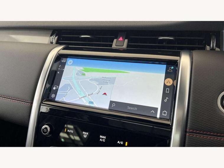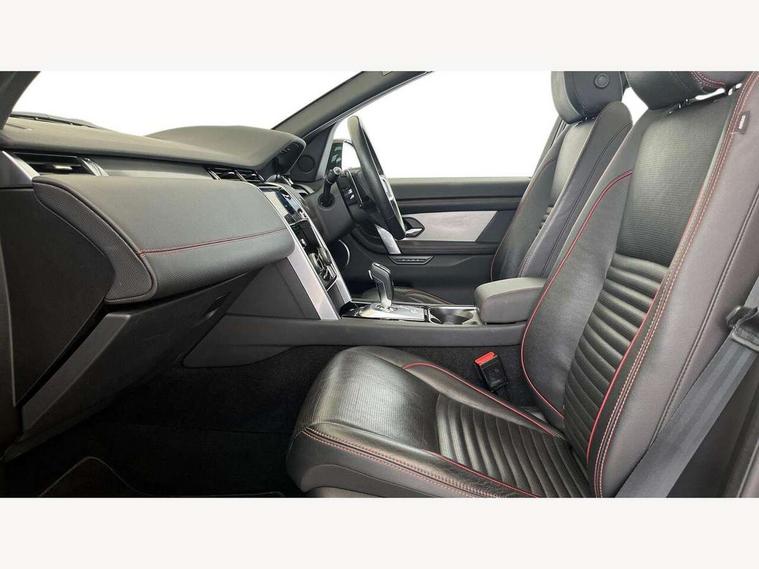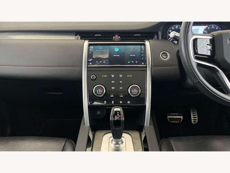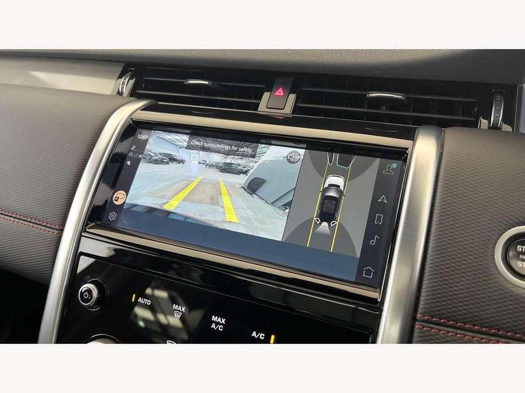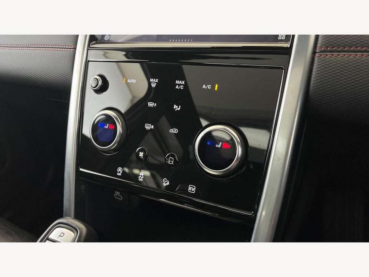 10" touch screen, Adaptive cruise control, Android Auto, Apple CarPlay, Blind spot assist, Clear exit monitor, Driver condition monitor, eCall emergency call system, Front and rear parking aid, InControl remote premium, Lane keep assist, Locking fuel flap, PAS, Pivi Pro connected navigation system with upgraded Infotainment, Powered tailgate/boot lid, Push button start, Rear collision monitor, Rear traffic monitor, Service interval indicator, Traffic sign recognition with adaptive speed limiter, Trip computer, Wade Sensing, 7 kW onboard charger, All terrain progress control, Coil suspension system, Dynamic stability control, Home charging cable, Public charging cable, Terrain Response 2, Bluetooth connectivity including audio streaming, Digital Audio Broadcast radio-DAB, Steering wheel mounted audio controls, 3rd brake light, Automatic headlight levelling, Automatic headlights, Electric front/rear windows, Electric heated/power fold door mirrors with approach lights and auto dimming driver side, Fixed panoramic sunroof with powered sunblind, Front and rear recovery eyes, Heated rear window, Heated windscreen including heated washer jets, Privacy glass, R Dynamic badge, Rain sensing windscreen wipers, Rear fog lights, Rear side wing doors, Rear wing door, Rear wiper, 5 seats, Bright metal pedals, Centre console with armrest, Footwell lights, Front and rear grab handles, Front passenger isofix child seat attachment, Loadspace cover, Loadspace light, Overhead lighting console, Overhead stowage for sunglasses, Rear headrests, Satin chrome gearshift paddles, Sunvisors with illuminated vanity mirrors, Tilt/reach adjustable steering wheel, Black exterior pack - Discovery sport R-Dynamic SE/HSE, Online pack with data plan - Discovery, 3 point seatbelts on all seats, ABS, Brake hold function, Child locks on rear doors, Collision mitigation braking system, Cornering brake control (CBC), Driver/Front Passenger airbags, Drivers knee airbag, Electronic brake force distribution, Electronic parking brake, Emergency brake assist, ESP + traction control, Hill descent control, Hill launch assist, Pedestrian airbag system, Rear seat ISOFIX, Roll stability control, Side and curtain airbags for front and 2nd row seats, Trailer stability control, Tyre pressure monitoring system, Battery Back Up System (BBUS) with tilt sensor, Global lock and unlock switch on driver door, Intrusion sensor, Keyless entry, Locking wheel nuts, Centre stack rails in noble chrome,