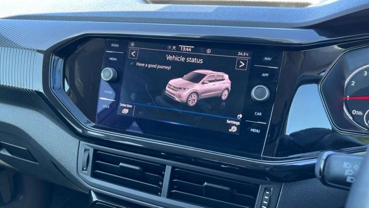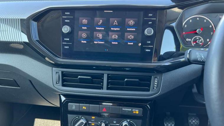 'Lights On' Reminder warning buzzer, Adaptive cruise control including front assist, forward collision warning, autonomous emergency braking, speed limiter, Blind spot monitoring, Bluetooth telephone and audio connection for compatible devices, Car information display, Digital cockpit, Driver alert system, eCall emergency call system, Lane assist, Low washer fluid warning light, Multifunction computer with visual gear change recommendation for fuel consumption, Operating permit alteration, Power assisted speed sensitive steering, Speedo, rev counter, electronic odometer, trip, service interval display, exterior temperature and fuel gauge, Stop/start system, Warning sound and light for doors and tailgate open, Warning sound and light for front seatbelts unfastened, We Connect Go Dongle, Wireless Car net app connect with Apple CarPlay, combined functionality of Apple CarPlay/Android Auto and MirrorLink, Battery regeneration during braking, Misfuel prevention device, 2x USB connection with USB charging sockets and in rear centre console, DAB Digital radio receiver, Diversity antenna for FM reception, Multi device interface (MDI) with USB connection, Music playback - MP3, WMA and AAC files, Premium USB cable for Apple or Android smartphone compatibility, Simultaneous pairing of 2 compatible mobile devices, Title and cover art display, Automatic hazard lights activation under emergency braking, Black door mirrors, Black roof rails, Body colour door handles, Body coloured bumpers, Dusk sensor + automatic driving lights, Electrically foldable, adjustable and heated door mirrors with reverse activated kerb view adjustment on passenger's side, Front and rear electric windows, Front fog lights with static cornering function, Galvanised body, Heated rear window, LED third brake light, Lower door sills and door pillars in black, Radiator grille with high gloss surface and chrome strip, Rear fog light on one side, reversing light on both sides, Rear lights incorporating LED technology, Rear side wing doors, Rear tinted glass 65% approx light absorbing from B pillar backwards, Rear window aerial, Rear windscreen washer and wiper with interval delay, Reflectors in all doors, Tailgate with integrated roof spoiler, Windscreen wipers/ intermittent wipe + 4 position delay, 12V Accessory socket in centre console, 3 rear head restraints and 3 rear three point seat belts with ECE label, 3 seat bench in 2nd row, 60/40 split folding rear seat backrest, Comfort front sport seats, Diag cloth upholstery, Drawer under drivers seat, Driver and front passenger sunvisor with vanity mirror, Driver's sunvisor with ticket holder, Dust and pollen filter, Front + rear carpet mats, Front and rear reading lights X 2, Front centre armrest with storage compartment, Front seat back storage pockets, Front seats with adjustable lumbar support, Glovebox, Heating and fresh air system with 4 stage blower, Height/reach adjust steering wheel, Instrument lighting white adjustable panel illumination, Interior light with delay, Isofix child seat preparation for 2 rear child seats, Luggage compartment cover, Luggage compartment lighting, Manual air conditioning, Moveable and foldable Rear bench seat, Storage compartment in drivers and front passengers door, Three spoke multi-function leather trimmed steering wheel and gearknob, Variable boot floor, Anti-lock Braking System (ABS) with Hydraulic Brake Assist (HBA), Automatic post collision braking system, Driver and front passenger safety-optimised head restraints, Drivers and Front Passengers airbags with front passengers airbag deactivation switch, ESC with EDL, ASR, EDTC and trailer stabilisation function, Front and rear curtain airbags, Front seat side impact airbags, Height-adjustable front three-point seat belts with tensioners, Hill start assist, Pre crash preventive occupant protection, Rear door child safety locks, Rigid safety cell with front and rear crumple zones, Single torn horn, Tyre pressure loss indicator, Volkswagen roadside assistance, Alarm with interior protection and deactivation via infotainment system, Child security locks in rear doors, Electronic engine immobiliser, Remote tailgate unlocking using key fob, Decorative inserts transition high gloss black/platnium grey, 17" Manila black diamond turned surface alloy wheels + anti theft wheel bolts, Breakdown kit,