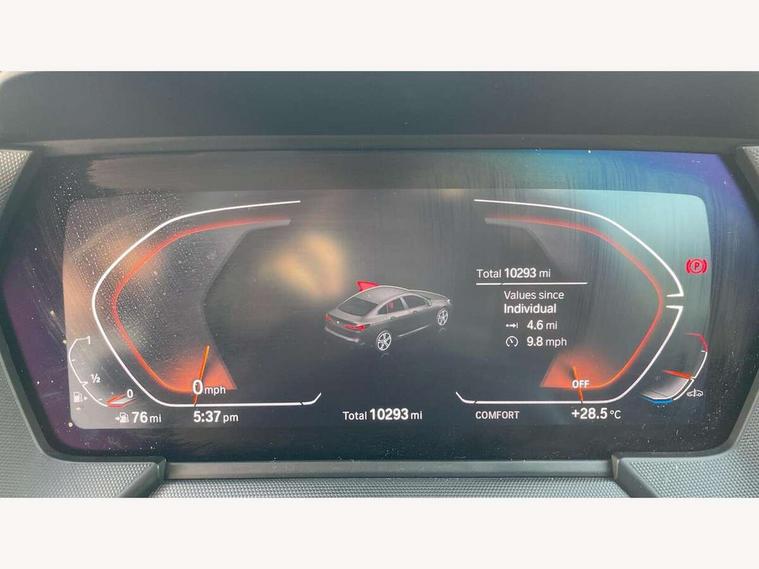 Active guard plus, Attentiveness assist, Auto start-stop, BMW ConnectedDrive online services, BMW Intelligent Personal Assistant, BMW Live Cockpit Professional with 10.25" high resolution instrument and control display, BMW Online services, BMW operating system with 7.0 mid interface, BMW Teleservices, Check Control warning system for monitoring of lights and door/luggage compartment open warning, Cruise control with braking function, iDrive controller with 7 short cut favourite buttons on centre console, Integrated navigation data with map data via USB +features such as 3D landmarks and micro city models, Integrated owners handbook, Intelligent voice assistant, Lane departure warning system, M Sports steering, On board computer - average speed+fuel consumption, service interval, clock/date, odometer/trip meter, outside temperature display and ice warning, Optimum shift indicator, Personal Profile, Pull away assistant, Speed limiting function, Aluminium lightweight construction, Balancer shaft, Double VANOS, Drive performance control with ECO PRO comfort + sport mode, Dual clutch automatic transmission, Electronic differential lock, High precision injection, M Sport suspension with stiffer spring/damper set-up and vehicle lowered by 10mm + twin tube gasfilled shock absorbers and Anti roll bars, Performance Control, Petrol Particulate Filter, VALVETRONIC engine management, 2x USB Type C ports (for charging and data transfer), 4G LTE Connectivity with hard wied 4G network sim card, DAB digital radio, MP3 players and RDS double tuner, Auto wipers, Automatically dimming rear view mirror, Body colour door handles, Body colour mirror caps, Chrome 'M' logo side designation, Chrome exhaust single tailpipe, round, Direction indicator side lights integrated exterior mirrors, Electric windows - front and rear, with open/close fingertip control and trap release, Exterior mirrors - electrically folding with anti-dazzle, Fading support, Follow me home headlights, Front and rear bumper system with replaceable deformation elements, Front door sill finishers in black plastic with M designation in metallic look, Heated, electrically adjustable exterior mirror aspheric on driver side, convex on passenger side, High gloss black B pillar finish, High gloss shadow line exterior trim, High level third brake light, LED daytime running lights, LED front fog lights, Lightweight engineering, Model designation on right side of tailgate, Preparation for high beam assistant, Rain sensor with automatic headlight activation, Rear boot, Rear fog lights, Rear side wing doors, Reversing light in rear light cluster, Welcome lighting, 12V power socket in centre console, 2 cupholders in front centre console, 3 rear seat head restraints, 3 rear seats, 3 spoke M sports design leather steering wheel finished in nappa leather with specific M badge, Anthracite finished floor mats with contrasting surround, Anthracite headlining, Automatic two zone climate control air conditioning, Child seat ISOFIX attachment for two outer rear seats and front passenger seat with anchorage points, Conditioned based service, Driver and front passenger seat heating, Front and rear door pockets including bottle trays, Front and rear side armrests integrated into door trim, Front armrest foldable with integrated storage compartment, Front centre interior light over interior mirror and rear centre automatic interior light when door is opened/ignition switched off or via remote key, Front head restraints, Front passenger seat, Front sports seats with electric side bolster adjustment, Glove compartment, Luggage compartment lighting, Manually adjustment steering wheel column, Multi-function controls for steering wheel, Sun visors with vanity mirrors and insert tab, Through loading system with 40/20/40 split folding rear seat, Two lashing eyes, Additional interior lighting pack - 2 Series Gran Coupe, Connected pack professional - 2 Series Gran Coupe, Extended storage pack - 2 Series Gran Coupe, M Sport exterior styling aerodynamics pack - 2 Series Gran Coupe, 2 tone horn, Airbag - Front driver and passenger, front and rear head, front side, curtain head protection, manual deactivation of front passenger airbag possible, Anti lock braking system (ABS) with cornering brake control, BMW emergency call, Brake drying, Braking readiness, City braking function, Crash sensor activating of airbags, Unlocking doors, hazard warning lights, fuel cut off, interior lighting+activation of safety battery terminal clamp, Dynamic stability control + (DSC+), Dynamic Traction Control - DTC, Electrically operated hand brake, Rear brake discs, Rear child proof door locks, Seat belt security check for driver and front passenger, Seatbelt warning, Side impact protection, Three point seat belts on all seats including front belt stopper, pyrotechnic belt tensioners and belt force limiters, Trailer stability control, Tyre pressure monitoring system, Ventilated front disc brakes, Warning triangle and first aid kit, Central locking switch for all doors, fuel filler cap and luggage compartment, Deadlocking function system to all doors, Drive away locking system on all doors and luggage compartment, Locking wheel bolts, Start/Stop button (illuminated) in centre console with keyless engine start and Auto Start-Stop deactivation button, Thatcham Cat.1 alarm and immobiliser, Two remote control key with integrated key - open/close doors/fuel flap/tailgate +1 button for unlock compartment with M design high gloss black inlay, Contrast stitching on instrument panel, 18" Burnished M double spoke bi-colour alloy wheels finished in orbit grey - style 819M, Reduced rolling resistance tyres,