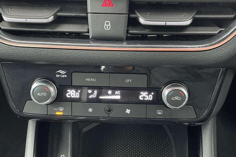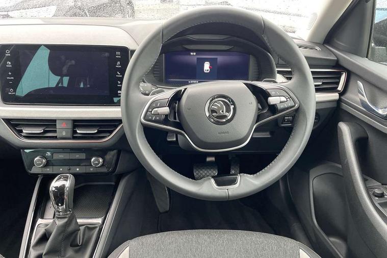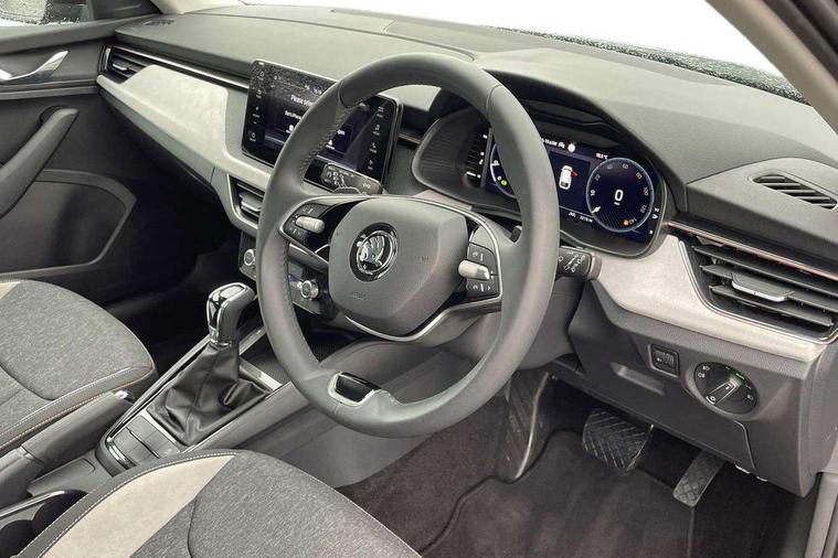 Advanced driver attention and drowsiness monitor, Bluetooth, e-Call (emergency call), Front assist system, PAS, Rear parking sensors, Speed limiter, Tailgate, Traffic sign recognition, Virtual Cockpit - 10.25" digital display, Voice control system, Wireless smartlink, 4 USB C ports, 8 Speakers, 9.2" Skoda navigation display, DAB radio, Auto dimming rear view mirror, Automatic headlamp activation with Coming home and Leaving home feature, Automatic high/low beam, Automatic intermittent wipers, Body colour bumpers, Body colour door mirrors and handles, Chrome moulding around grille, Chrome window frames, Front and rear electric windows, Heated rear window, LED 3rd brake light, LED brake lights, LED daytime running lights, LED front turning lights, LED high beam, LED low beam, Light sensors, Privacy glass, Rear LED fog light, Rear side wing doors, Rear wiper, Tinted windows, 12V socket in luggage compartment, 3 seat bench in 2nd row, Ambient lighting in white/red, Black / Copper armrest stitching, Cargo elements, Chrome inner door handles, Copper hotstamping, Door inserts in accent black, Driver and passenger sun visors with vanity mirror, Dual zone climate control, Front and rear roof lights, Front centre armrest, Front head restraints, Glasses storage in roof liner, Height adjustable driver seat, Height adjustable passenger seat, Ice scraper, Illuminated glove compartment, Inner circulation control with pollen filter, ISOFIX for front passenger seat, Isofix preparation for back seats, Leather gearknob and handbrake lever, Lodge cloth upholstery, Luggage net under rear parcel shelf, Manual lumbar support for front seats, Net package and top tether hooks in boot space, Pearl grey ceiling, Pocket on the back of both front seats, incl. mobile phone pockets, Rear centre armrest, Single front passenger seat, Textile floor mats, Third rear headrest, Ticket holder, Top tether for front passenger seat, Umbrella in driver's door, 3x3 point rear seatbelts, ABS, Child locks, Curtain airbags and front side airbags, Disc brakes, Driver and front passenger airbags, ESP, Hill hold control, Manual leather parking brake, One tone horn, Passenger airbag switch off function, Seatbelt reminder for driver and front passenger, Tyre pressure monitoring system, Anti theft alarm system with interior monitoring, backup horn and towing protection, Anti-theft wheel bolts, Remote central locking with 2 remote folding keys, SAFE function for remote central locking, Decorative inserts,