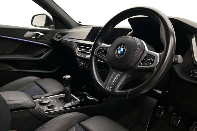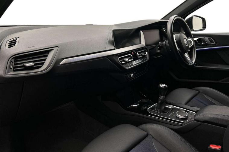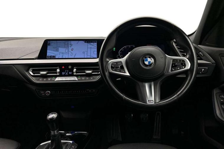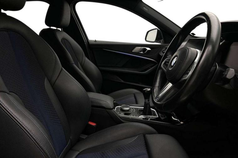 Active guard plus, Attentiveness assist, Bluetooth / WiFi interface for wireless connection of mobile terminal devices and audio streaming, BMW ConnectedDrive online services, BMW Teleservices, Check Control warning system for monitoring of lights and door/luggage compartment open warning, Cruise control with brake assist, Eco pro mode, Front axle single joint with specific axle kinematics to minimise drive influences on steering + provide increased rigidity agile driving behaviour, Integrated owners handbook, Lane departure warning system, Oil sensor for level and grade, On board computer, Optimum shift indicator, Personal Profile, Pull away assistant, Rigidly mounted rear subframe - Multi link construction with separate spring / damper configuration and excellent driving characteristics, Speed limit Info including no-overtaking indicator, Speed limiter, Aluminium lightweight construction, Anti roll bar front and rear, Balancer shaft, Double VANOS twin scroll turbocharging system, Drive Performance Control, Electronic differential lock, High precision injection, M sport suspension, Petrol Particulate Filter, Twin tube gas filled shock absorbers with degressive characteristic curve, VALVETRONIC engine management, DAB Digital radio, Auto dimming rear view mirror, Automatic headlight beam throw control, Automatic windscreen wipers and automatic headlight, Body colour door handles, Body colour mirror caps, Body colour roof trims, Chrome 'M' logo side designation, Chrome exhaust twin tailpipes round 90mm in left, Chrome kidney grille frame with Satin Aluminium struts, Direction indicator side lights in exterior mirrors, Fading support, Folding side mirrors with auto dimming/folding wing mirrors with auto dimming, Follow me home headlights, Front and rear bumper system with replaceable deformation elements, Front and rear electric windows with open and close fingertip control, anti trap facility and comfort closing, Front door sill finishers in black plastic with M designation in metallic look, Green tinted heat protection glazing, Heated, electrically adjustable exterior mirror aspheric on driver side, convex on passenger side, High gloss shadowline window frame, Recess cover mirror frames and B/C pillar embelisher trim, High level third brake light, Integrated front windscreen with washer jets, LED daytime running lights, LED eyebrow turn indicators, LED front fog lights, Lightweight engineering, Matt black air guide grilles, Matt black wheel arch trim, Model designation on electric bootlid, Nearside reverse light in rear light cluster, Preparation for high beam assistant, Rear fog lights, Rear side wing doors, Rear window wiper, Shark fin antenna, Trailer stabilisation logic, Visible VIN plate, Welcome lighting, 12V power socket in front centre console with blanking plug, 3 rear seat head restraints, 3 seat bench in 2nd row, 3 spoke sports leather steering wheel in black leather with black stitching and decorative finisher in pearl chrome, specific M badge + leather knob, Ambient interior lighting, Anthracite headlining, Black boot net with lashing eyes, Cargo function on 2nd seat row, Child seat ISOFIX attachment for two outer rear seats and front passenger seat with anchorage points, Conditioned based service, Driver and front passenger seat heating, Folding rear clothes hook, Four grab handles integrated in roof lining, Front and rear door pockets with bottle holders, Front and rear side armrest integrated into door trim, Front armrest, Front sports seats, Gearshift lever with M designation, Glove compartment, Height adjustable front head restraints, Luggage compartment for bag hooks on left and right, foldable luggage compartment liner and four lashing eyelets, Manual adjust steering wheel, Multi-function controls for steering wheel, Single front passenger seat, Storage compartment in centre console, Sun visors with vanity mirrors and insert tab, Two front centre console cupholders, Two zone automatic air conditioning, Velour floor mats, Additional interior lighting pack - 1 Series, BMW live cockpit professional pack- 1 Series, Connected pack professional - 1 Series, Interior lights pack - 1 Series, M Sport exterior styling aerodynamics pack - 1 Series, 2 tone horn, 3 point seatbelts on all seats, front pyrotechnic belt tensioners, stopper and belt force limiters, rear coded belt buckles, Airbags - Front driver/passenger, front and rear curtain head protection, front side, manual deactivation of front passenger airbag, Anti lock braking system (ABS) with brake assist, BMW emergency call, Brake drying, Braking readiness, Child proof locking system in rear door, City braking function, Comfort modes, Cornering brake control, Crash sensor activating central locking release, hazard warning lights, fuel cut off, interior lighting + activation of safety battery terminal clamp, Driver and front passenger seat belt security check, Dynamic stability control + (DSC+), Dynamic Traction Control - DTC, Electrically operated hand brake, Front and rear disc brakes, Seatbelt warning, Side impact protection, Tyre pressure monitoring system, Warning triangle and first aid kit, Central locking switch for all doors, fuel filler cap and luggage compartment, Deadlocking function system to all doors, Drive away locking system on all doors and luggage compartment with de-activated in iDrive settings, Locking wheel bolts, Remote control with integrated key with High-gloss Black inlay and M designation and 1 button for open/ close lock, window, open luggage compartment, Start/stop button illuminated in centre console with keyless engine start and auto start stop deactivation button, Thatcham Cat.1 alarm and immobiliser, Wheel slip limitation close to the actuator (ARB), Contrast stitching on instrument panel, Electrically powered 12V compressor, Reduced rolling resistance tyres,