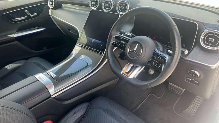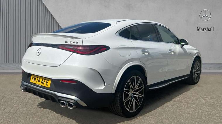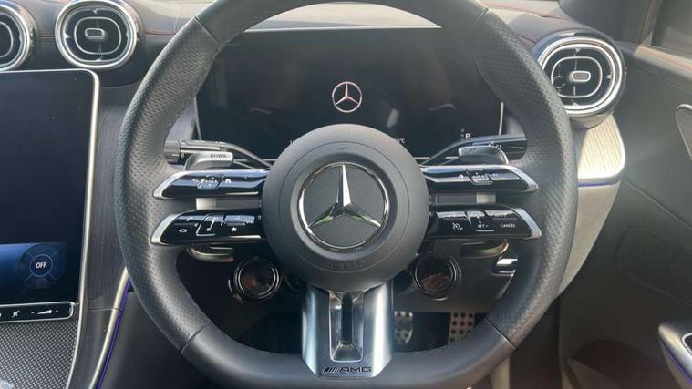 11.9" high resolution multimedia colour display, 12.3" Digital individually configurable instrument display, 360 degree camera, Active brake assist plus, Active parking assist with parktronic system, AMG DYNAMIC SELECT with a choice of driving modes (Slippery, Comfort, Sport, Sport+, Individual), Attention assist, Blind spot assist, Bluetooth interface for hands free telephone, Dashcam - front camera for video recording, Easy pack automatic powered tailgate, eCall emergency call system, MBUX augmented reality for navigation, MBUX navigation premium, MBUX voice control activated by keywords "Hey Mercedes", Mercedes connect me with remote online services, Outside temperature display, Pre-installation for digital key transfer, Rear axle steering, Remote boot release, Service indicator (ASSYST), Smartphone integration, Speed limit assist, Sports direct steer system with speed sensitive steering, Status display for rear seat belts in instrument cluster, Traffic sign assist, Trip computer, Wireless charging surface integrated into quick stowage tray in front of centre console, 4MATIC permanent four wheel drive, 63 litre fuel tank, 9G TRONIC plus automatic transmission, Agility control comfort suspension, Petrol Particulate Filter (PPF), DAB digital radio tuner, MBUX extended functions, Adaptive brake lights, AMG bodystyling front apron, rear apron and side skirts, AMG exhaust system with sporty engine sound, AMG fuel cap, AMG radiator grille with vertical struts in high gloss chrome and AMG logo, AMG spoiler lip, Auto dimming rear view mirror, Auto headlights, Body colour door mirrors, Chrome roof rails, Digital light LED headlights, Electric windows with one touch opening/closing and obstruction sensors, Electrically adjustable and heated door mirrors, Headlight washers, Heat and noise insulating acoustic glass, Heated rear window, High level LED brake light, Illuminated front door sill panels, Integrated LED daytime running lights, LED indicator lights, LED rear fog lights, LED tail lamp, Mercedes AMG exterior, Rain sensor windscreen wipers, Range adjustable headlights, Rear side wing doors, Rear wiper, Tinted glass all round green, Variable front intermittent wipers, Welcome and follow-me home light functionality, 3 seat bench in 2nd row, 3 Spoke multi function AMG steering wheel in black nappa leather, 40:20:40 split folding rear seats, Ambient lighting, AMG sports seats, AMG steering wheel buttons, Artico leather dashboard with contrast stitching, Audio and onboard settings control on multifunction steering wheel, Automatic child seat recognition sensor, Black floor mats with AMG lettering, Double cup holder in centre console, Electrically height/reach adjustable steering column, Front centre armrest with stowage compartment, Front head restraints, Gearshift paddles on steering wheel, Heated front seats, Illuminated door sill panels with AMG lettering and with exchangable cover, Illuminated glove compartment, Load compartment cover, Mercedes AMG interior, Rear head restraints, Rear top tether child seat ISOFIX attachment, Single front passenger seat, Sports pedals with stainless steel surfaces and rubber studs, Sun visors with illuminated vanity mirrors, THERMATIC 2 zone automatic climate control, Interior lighting pack - GLC AMG, Memory pack - GLC, Mirror pack - GLC AMG, Seat comfort package - GLC AMG, Stowage pack - GLC AMG, USB Plus Pack - GLC, 3 rear 3 point seatbelts, Active bonnet, Adaptive brake system with HOLD function and brake drying in the wet, Anti-lock braking system (ABS), Child proof door locks, Dual-stage airbags - driver and front passenger, sidebags in front seats, driver kneebag, pelvis bag and window bags for driver, Electronic key chrome surround, Electronic parking brake, Electronic Stability Programme (ESP), Front and rear seatbelt reminder, Front passenger seat occupancy sensor, Front seatbelt pretensioners, Hill start assist, Silver brake calipers, Tyre pressure monitoring system, Warning triangle and first aid kit, Central locking with interior switch, automatic locking and crash sensor with emergency opening function, Guard 360 degree vehicle protection, Immobiliser, Keyless Go comfort access, Anthracite linestructure lime wood trim, Black open-pore aluminium lines wood trim, Centre console in metal structure finish, 21" AMG Y spoke light alloy wheels painted in tantalum grey with high sheen rim finish, TIREFIT with tyre inflation compressor,