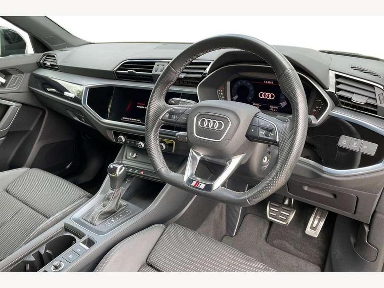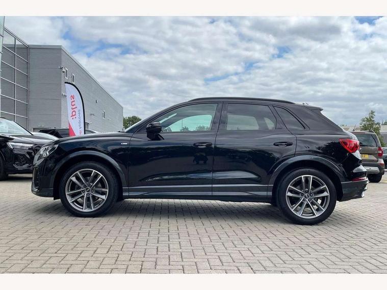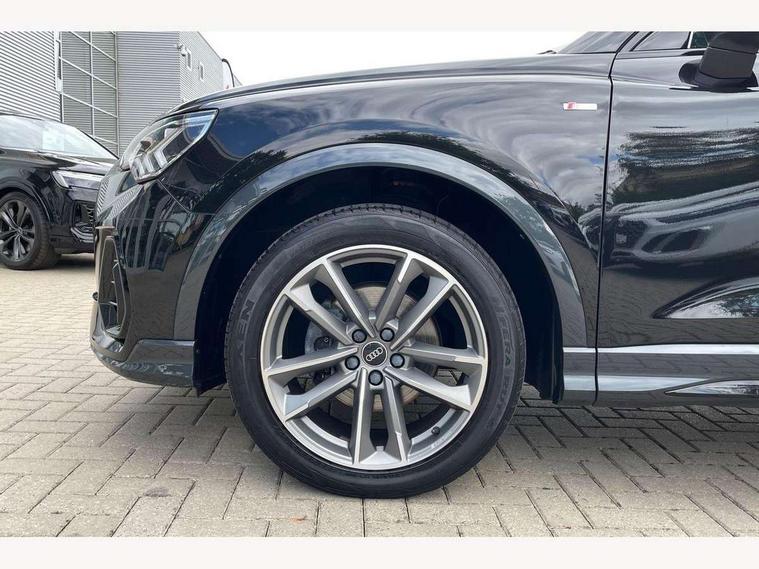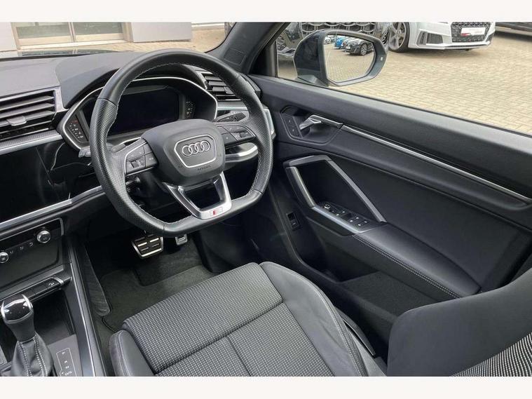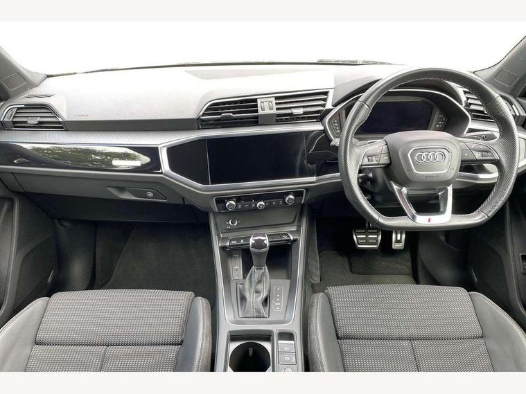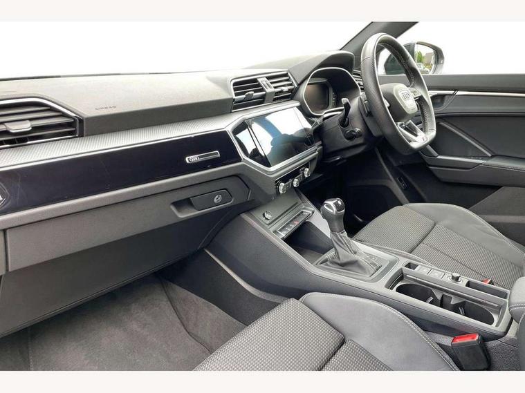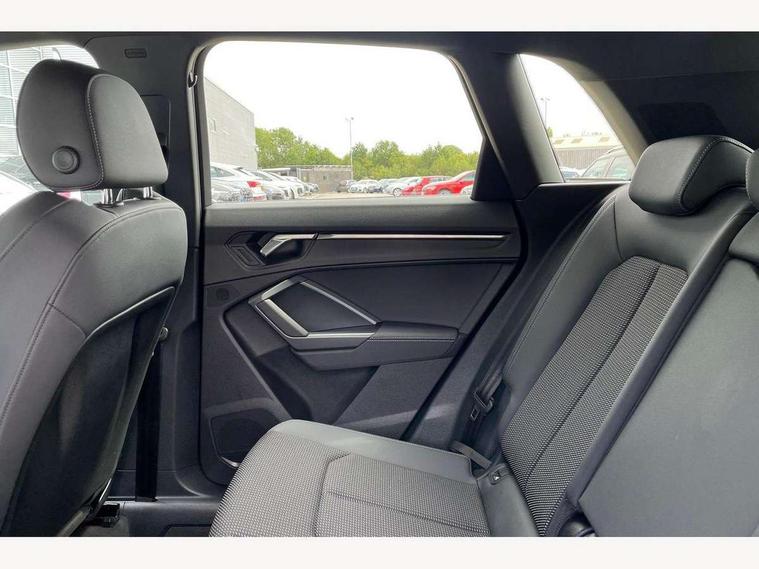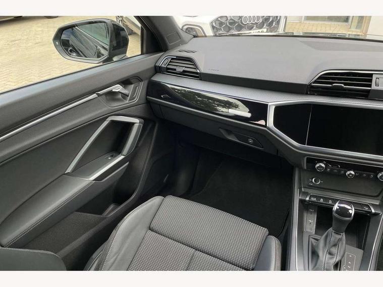 Amazon alexa Integration, Audi connect safety and service (e-call), Audi drive select, Audi lane departure warning, Audi smartphone interface includes wireless Apple carplay/Android Auto, Audi Virtual Cockpit - 10.25" display, Bluetooth interface, Camera based traffic sign recognition, MMI Navigation Plus with high resolution 10.1 inch touchscreen colour display, Power operated tailgate, Progressive steering, Service interval indicator, Start stop system with recuperation, Voice control system with natural language interaction, 48V Mild hybrid technology, Sports suspension, 2 USB-C ports with charge and data functions, 6 passive loudspeakers, DAB digital radio module, Acoustic windscreen, Auto dimming frameless rear view mirror, Black roof rails, Electrically folding, adjustable and heated door mirrors with integrated LED side indicators and kerb view function for passenger side, Front and rear electric windows, Front fog lights, Grille vertical bars in aluminium silver/Matt, High gloss black finish B and C pillars, LED headlights with LED daytime running lights, LED rear lights, LED third brake light, Privacy glass dark tinted rear and rear-side windows (from B-pillar backwards), Rain and light sensors, Rear diffuser strip in matt titanium black, Rear side wing doors, Rear wiper, S line bumpers in contrasting Manhattan grey, Variable front intermittent wipers, 12V socket in rear centre console, 3 seat bench in 2nd row, 40:20:40 folding with manual adjustment for 60:40 forwards/backwards position and backrest angle, Adjustable rear seat bench/backrest with centre armrest and cupholder, Black cloth headlining, Dual zone electronic climate control, Front and rear black floor mats with contrast stitching in rock grey, Front and rear headrests, Front and rear roof module including reading lights, Front centre armrest, Glove compartment lighting, Height and reach adjustable steering wheel, Illuminated door sill trims with S logo, ISOFIX child seat mounting for front passenger with airbag deactivation and outer rear seat including top tether attachment point for outer rear seats, Luggage compartment light, Manual front seats with height adjustment, Perforated leather gearknob, Single front passenger seat, Stainless steel luggage compartment sill finisher, Stainless steel pedals, Black styling pack - Q3, Non smoking pack - Q3, 3x3 point rear seatbelts, 6 airbags - Driver, front passenger, curtain and side windows, Audi pre-sense front with pedestrain and cyclist recognition, Electromechanical parking brake, Electronic stabilisation control including ABS, ASR and EDL, Front seatbelt reminder, Hill descent control, Hill hold assist, Manual child lock in rear doors, Pre sense basic, Seatbelt monitoring, Tyre pressure warning, Warning triangle and first aid kit, Anti theft alarm, Anti theft wheel bolts, Immobiliser, Remote central locking, Detail dashboard around MMI touch colour display in glass look, black with surround in aluminium look, Leatherette door armrest, Piano black inlay, Tool kit, Tyre repair kit,