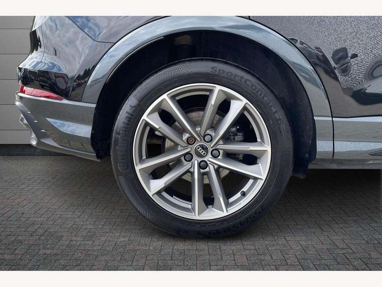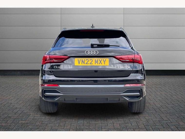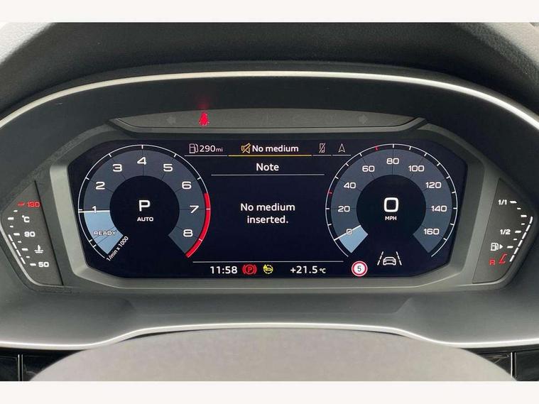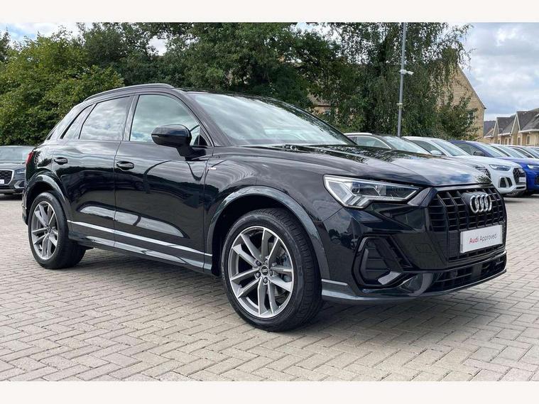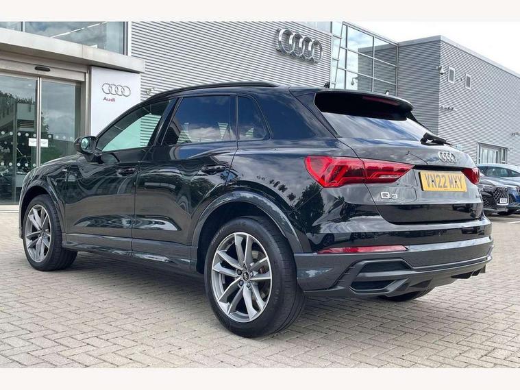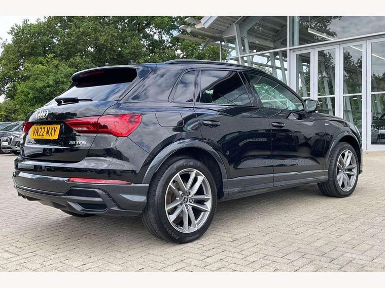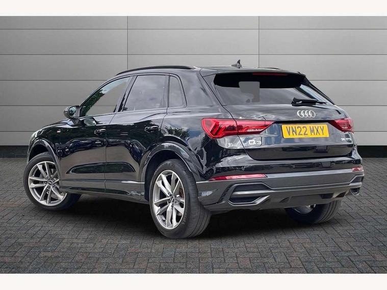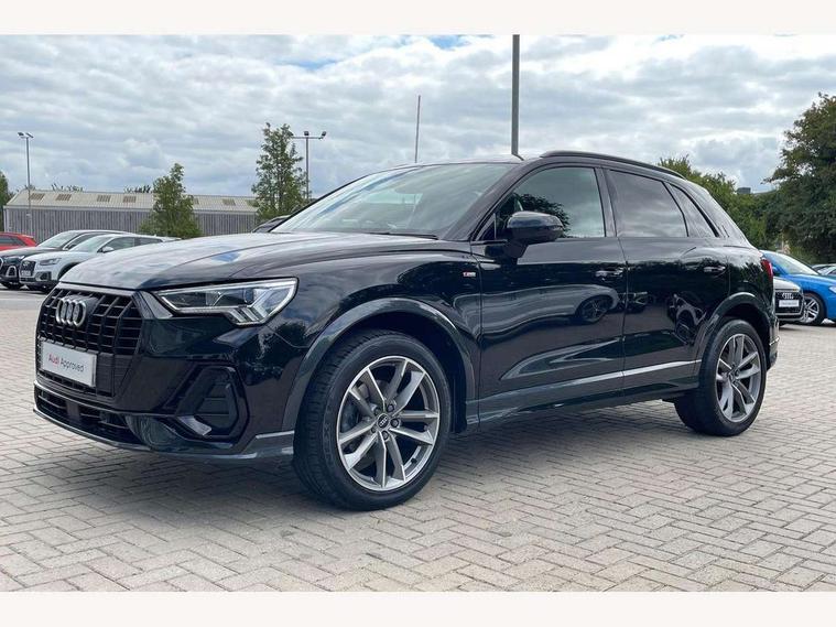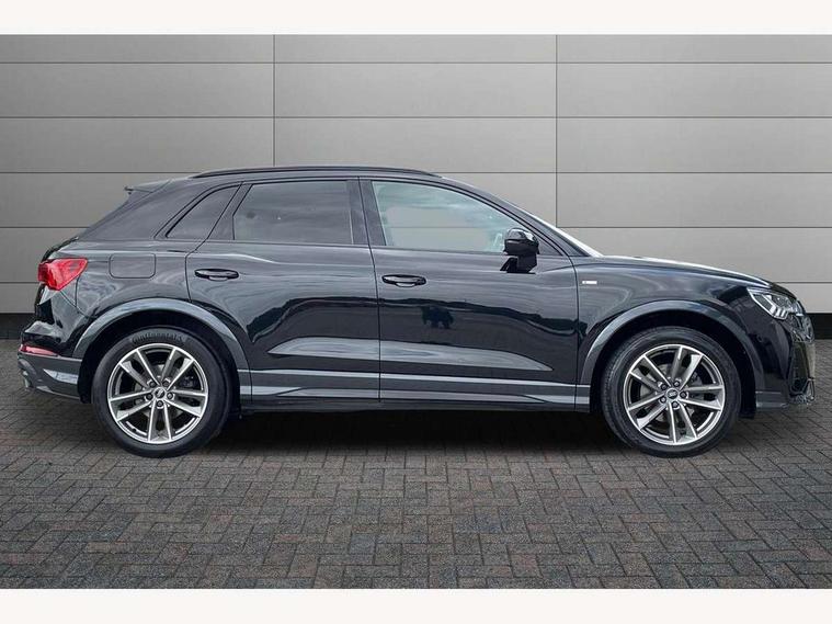 Amazon alexa Integration, Audi connect safety and service (e-call), Audi drive select, Audi lane departure warning, Audi smartphone interface includes wireless Apple carplay/Android Auto, Audi Virtual Cockpit - 10.25" display, Bluetooth interface, Camera based traffic sign recognition, MMI Navigation Plus with high resolution 10.1 inch touchscreen colour display, Power operated tailgate, Progressive steering, Service interval indicator, Start stop system with recuperation, Voice control system with natural language interaction, 48V Mild hybrid technology, Sports suspension, 2 USB-C ports with charge and data functions, 6 passive loudspeakers, DAB digital radio module, Acoustic windscreen, Auto dimming frameless rear view mirror, Black roof rails, Electrically folding, adjustable and heated door mirrors with integrated LED side indicators and kerb view function for passenger side, Front and rear electric windows, Front fog lights, Grille vertical bars in aluminium silver/Matt, High gloss black finish B and C pillars, LED headlights with LED daytime running lights, LED rear lights, LED third brake light, Privacy glass dark tinted rear and rear-side windows (from B-pillar backwards), Rain and light sensors, Rear diffuser strip in matt titanium black, Rear side wing doors, Rear wiper, S line bumpers in contrasting Manhattan grey, Variable front intermittent wipers, 12V socket in rear centre console, 3 seat bench in 2nd row, 40:20:40 folding with manual adjustment for 60:40 forwards/backwards position and backrest angle, Adjustable rear seat bench/backrest with centre armrest and cupholder, Black cloth headlining, Dual zone electronic climate control, Front and rear black floor mats with contrast stitching in rock grey, Front and rear headrests, Front and rear roof module including reading lights, Front centre armrest, Glove compartment lighting, Height and reach adjustable steering wheel, Illuminated door sill trims with S logo, ISOFIX child seat mounting for front passenger with airbag deactivation and outer rear seat including top tether attachment point for outer rear seats, Luggage compartment light, Manual front seats with height adjustment, Perforated leather gearknob, Single front passenger seat, Stainless steel luggage compartment sill finisher, Stainless steel pedals, Black styling pack - Q3, Non smoking pack - Q3, 3x3 point rear seatbelts, 6 airbags - Driver, front passenger, curtain and side windows, Audi pre-sense front with pedestrain and cyclist recognition, Electromechanical parking brake, Electronic stabilisation control including ABS, ASR and EDL, Front seatbelt reminder, Hill descent control, Hill hold assist, Manual child lock in rear doors, Pre sense basic, Seatbelt monitoring, Tyre pressure warning, Warning triangle and first aid kit, Anti theft alarm, Anti theft wheel bolts, Immobiliser, Remote central locking, Detail dashboard around MMI touch colour display in glass look, black with surround in aluminium look, Leatherette door armrest, Piano black inlay, Tool kit, Tyre repair kit,