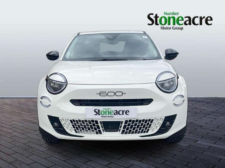 7" TFT digital cluster, Bluetooth connectivity, BSRF connectivity box, Connected services, Cruise control, Driver attention assist, Emergency E-call assist, Intelligent speed assist, Lane keeping assistant (LKA), Odometer, Power assist steering, Rain and dusk sensors, Rear parking sensors, Traffic sign recognition, Wireless apple car play/android Auto, Without drive mode selector, L2-AGM 12V battery, 1st Row USB type-A and USB type-C, 4 speaker audio system, Uconnect infotainment 10.25" touchscreen with DAB, All power windows express Up/Down, Auto dimming frameless rear view mirror, Automatic headlights, Body coloured door handles, Chrome DLO and 600 signature, Electric adjustable door mirrors, Exhaust tip on right side, Exterior chrome accents, Front and rear Chromed 600 logo, Gloss black finish B pillar, Gloss black shark fin antenna, Glossy black door mirrors, Heated windscreen wiper blade area, LED 3rd brake light, LED daytime running lights, LED Fog lamps with cornering function, LED front signature lighting, LED front turn indicators and position lights, LED rear lights, LED rear signature lighting, LED reflector headlamps, Matt black side skirts with 600 chromed logo, Rear bumper embossed 600 logo, Rear roof spoiler, Rear side wing doors, Rear wiper, 2 Spoke synthetic leather steering wheel with audio control, 3 rear headrests, 3 seat bench in 2nd row, 4 way manually adjustable passenger seat, 6 way manually adjustable drivers seat, Auxilliary 12V power socket, Body colour dashboard fascia, Chrome interior door handles, Dark metachrome dashboard ring, English handbook, Front centre armrest, Front headrests, Front passenger grab handle, Front seatback pocket, Heated front seats, ISOFIX attachment on front passenger and rear passenger seats, Manual climate control, Metachrome central compartment bezel, Monogram fabric upholstery, Paddle shifts, Partial body cover for shipment, Predisposal for accessory upgrade to default tunnel pad cover (dedicated prnd bezel), Rear seat 40/60 split, Single front passenger seat, Smart 15L storage central tunnel with tunnel pad cover, Sunvisor label ciao Fiat, Sunvisors with vanity mirrors, 3x3 point rear seatbelts, 6 airbags, ABS, Autonomous Emergency Brake (AEB) & Vulnerable Road User (VRU) Protection, Child locks on rear doors, Electronic parking brake with auto hold, ESC (Electronic Stability Control), Front passenger airbag deactivation, Seatbelt reminder and pretensioners for all seats, Anti-theft volumetric alarm, Anti-theft wheel bolts, Keyless Go, 17" Diamond cut alloy wheels, Fix and go puncture repair kit,