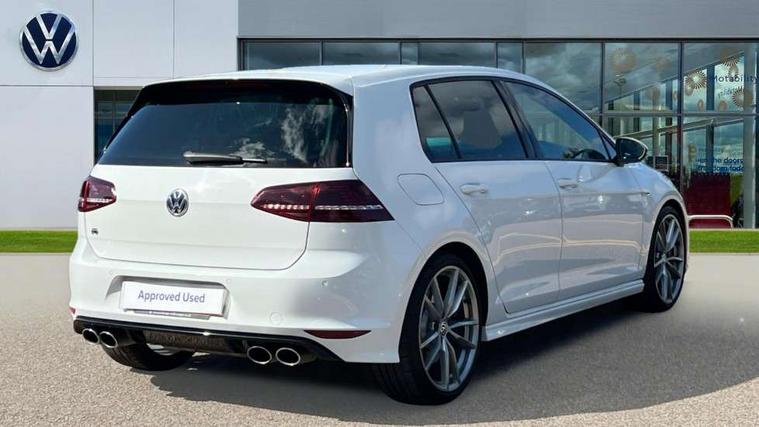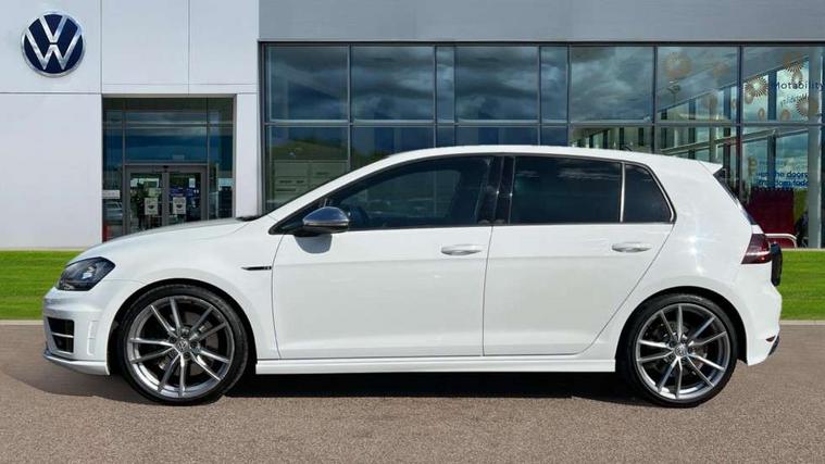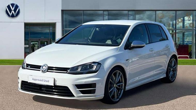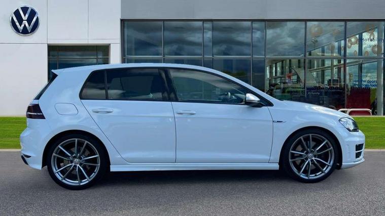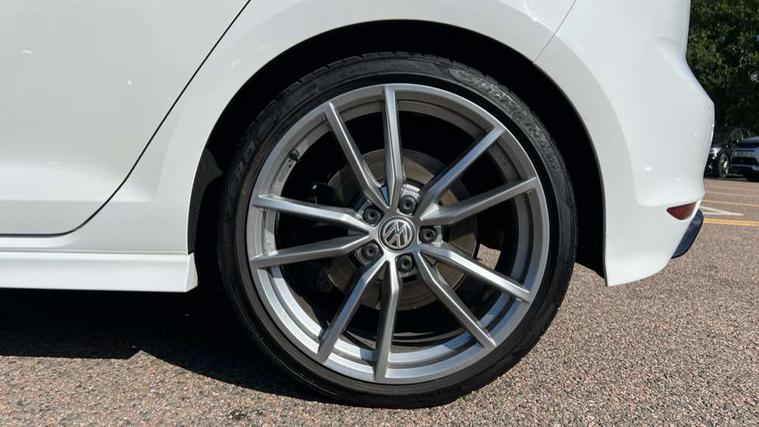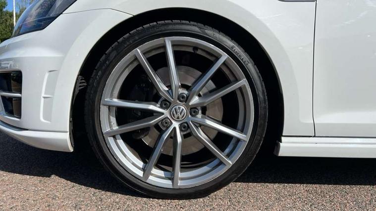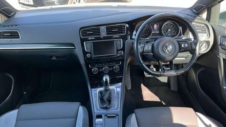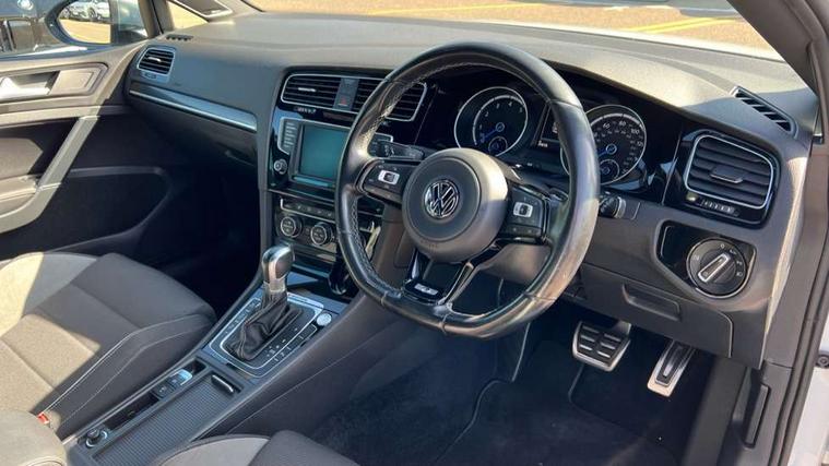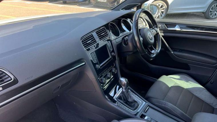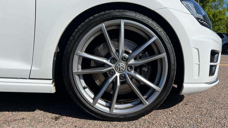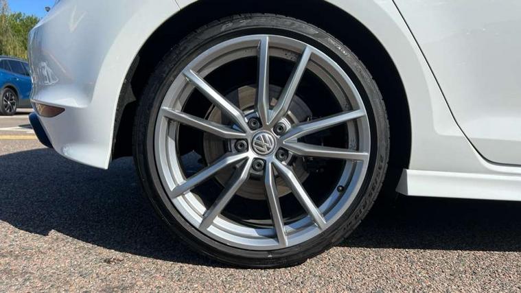 'Lights On' Reminder warning buzzer, ACC - Adaptive cruise control with front assist, forward collision warning, distance monitoring, city emergency brake and speed limiter, Bluetooth Telephone preparation, Brake pad wear indicator warning light, Driver alert system, Driver profile selection, Exterior temperature gauge, Flat tyre indicator, Infotainment system, Instrument cluster in white, Multi function display colour screen, Multifunction computer, Progressive power assisted steering, Rev counter, Trip and service interval display, Ultrasonic front and rear optical and audible parking sensors, Warning buzzer and light for front seatbelts unfastened, Lowered sports suspension, XDS plus electronic differential lock, CD/MP3/WMA, USB and SD card reader, aux-in, Composition media system, DAB Digital radio, MDI with USB/iPod connection cables, Auto dimming rear view mirror, Automatic coming/leaving home lighting function, Automatic headlights, Bi-Xenon headlights and headlight washers with LED daytime running lights, Black rear diffuser, Body colour bumpers, Body colour door handles, Chrome louvres in grille, Dusk sensor + auto driving lights, Electric folding door mirrors with puddle lamps, Electric front windows, Electric rear windows, Electrically adjustable and heated door mirrors, Heated rear windscreen, LED rear lights, Rain sensor, Range adjustable headlights, Rear roof spoiler, Rear windscreen washer and wiper with interval delay, Reverse activated kerb-view adjustment on passenger's door mirror, Twin chrome exhaust tailpipes, Windscreen wipers/ intermittent wipe + 4 position delay, 12V socket in luggage compartment, 3 rear headrests, 3 spoke steering wheel, 60/40 split folding rear seat, Air conditioning - 2 zone electronic climate control, Ambient lighting, Bag hook in luggage compartment, Black headlining, Boot lashing points, Chrome-plated electric mirror adjustment switch surround, Chrome-plated electric window button surround, Courtesy light delay, Cover for storage compartment in centre, Driver/front passenger seat height adjustment, Dust/pollen filter, Foldable front passenger seat backrest, Front + rear carpet mats, Front centre armrest with storage box and rear air vents, Front footwell illumination, Front seat back storage pockets, Gearshift paddles, Grab handles, Height/reach adjust steering wheel, Illuminated door sills, Illuminated vanity mirrors, Isofix preparation for 2 rear child seats, LED reading lights, Load through provision, Lockable, illuminated, cooled glovebox, Luggage compartment cover, Luggage compartment lighting, Multifunction leather steering wheel with leather gear knob/handbrake grip, Passenger underseat drawer, Rear centre armrest with 2 cupholders, Rear cupholder, Stainless steel pedals, Storage box in luggage compartment, Storage compartment in roof console with cover, Storage compartments in doors, Variable boot floor, height adjustable and removable, White adjustable panel illumination, Styling pack - Golf R/R-Line, 3 point height adj front seatbelts + pretensioners, 3 rear 3 point seatbelts, ABS, Automatic post collision braking, Black brake calipers, Child locks on rear doors, Door open warning reflectors, Driver/Front Passenger airbags, Driver/Passenger whiplash optimised head restraints, Drivers knee airbag, Electronic parking brake with auto hold, Electronic tyre pressure monitoring, ESP with EDL + ASR, Front and rear curtain airbags, Front passenger airbag deactivation, Front side airbags, Fuel cut off safety device, Hydraulic Brake Assist (HBA), Pre crash system, Warning triangle and first aid kit holder, Alarm with interior protection, Anti-theft wheel bolts, Electronic engine immobiliser, Remote central locking with 2 remote folding keys, Carbon decorative inserts in dash and door panel, Chrome air vent surrounds, Chrome-plated light switch surround, Gloss black decorative inserts in centre console, Steel space saver spare wheel,