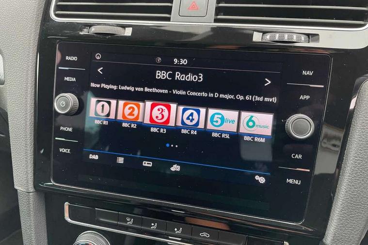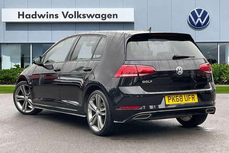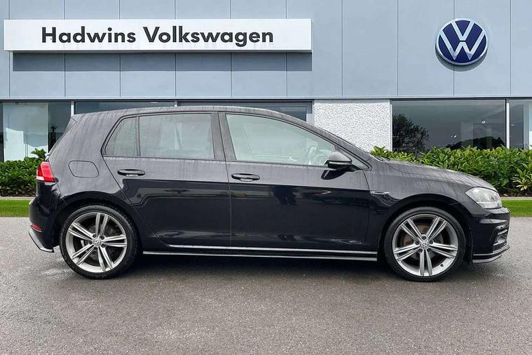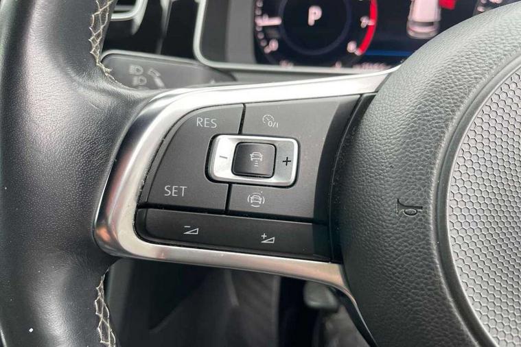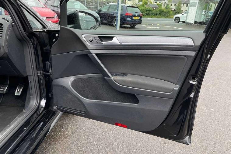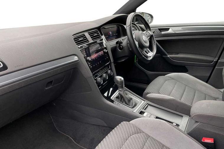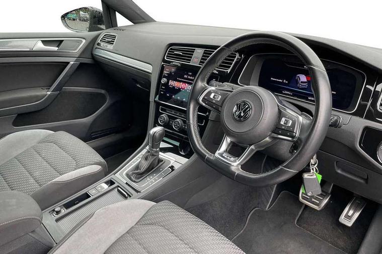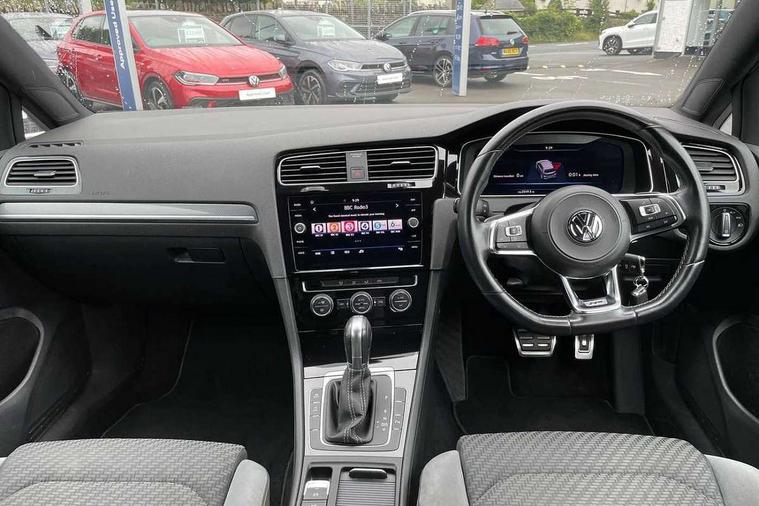 Chrome plated air vent surround, Chrome plated electric mirror adjustment light switch surround, Dark Diamond decorative inserts in dash and door panels, Piano black centre console with aluminium inlay, Ambient lighting pack - Golf, Convenience Pack - Golf, Light and Sight pack - Golf, Mirror pack - Golf, R Line Styling pack - Golf, Steel space saver spare wheel, Alarm with interior protection and deactivation via infotainment system, Electronic engine immobiliser, Remote central locking with 2 remote folding keys, Composition media system, DAB Digital radio receiver, MDI multi device interface, MP3/WMA compatability, Multi device interface (MDI) with USB connection, Premium USB cable in choice of either Apple or Android smartphone compatibility, SD card slot, SMS Functionality, Title and cover art display, 4 X 20W output, USB connection and socket, USB and SD card connectivity, 3 rear three point seatbelts, Airbags - Driver's and front passenger's, curtain airbag, Driver's knee, front side impact and passenger's airbag deactivation switch, Anti-lock Braking System (ABS) with Hydraulic Brake Assist (HBA), Automatic post collision braking system, Child locks on rear doors, Driver/Passenger optimised head restraints, Electronic parking brake with auto hold, Electronic stability control (ESC) including Electronic differential lock (EDL) and ASR (Traction control) with deactivation via infotainment system, Pre crash preventive occupant protection, Three point height adjustable front seatbelts with tensioners, Tyre pressure loss indicator, Automatic dimming rear view mirror/rain sensor, Black front air intake and radiator grille with chrome insert, Black sports rear diffuser, Body colour bumpers, Body colour door handles, Body colour door mirrors with integrated indicators, Chrome grille surround, Chrome trimmed front air intake surrounds, Electric front windows, Electric rear windows, Electrically adjustable and heated door mirrors, Glavanised body, Heat insulated tinted glass 65% light absorbing from B pillar back, Heated rear windscreen, High level 3rd brake light incorporating LED Technology, Left and right chrome effect trapezoid dummy exhaust tailpipe surrounds, Range adjustable headlights via infotainment system with LED daytime running lights, Rear fog lamp, Rear number plate lights incorporating LED technology, Rear window aerial, Rear window wash/wipe with intermittent wipe, Reflectors in all doors, Remote electrically foldable door mirrors, door mirror puddle lights and reverse activated kerb-view adjustment on passengers door mirror, Stainless steel door sill protection, Windscreen wipers/ intermittent wipe + 4 position delay, 12V socket in luggage compartment, 3 rear headrests, 4 load lashing points in luggage compartment, 60/40 split folding rear seat backrest, Bag hook in luggage compartment x 2, Black roof lining, Cooled glovebox, Dust/pollen filter, Front + rear carpet mats, Front centre armrest with storage compartment and two rear air vents, Front reading lights, Front seat back storage pockets, Grab handles front x 2, rear x 2 with integrated coat hooks, Height and reach adjustable steering wheel, Illuminated vanity mirrors, Instrument lighting white adjustable panel illumination, Interior light delay, Isofix preparation for 2 rear child seats, LED front and rear reading lights, Load through provision with rear centre armrest and cupholders x2, Luggage compartment light, Multifunction leather steering wheel with leather trimmed gear knob including paddle shift, Overhead storage box, R Line badge, Stainless steel pedals, Storage box in luggage compartment, Storage compartment in roof console with cover, Storage compartments in front doors, Storage compartments in rear doors, Stowable luggage compartment cover, Sun visors, Three spoke multi-function leather trimmed steering wheel and gearknob, Variable boot floor, height adjustable and removable, 'Lights On' Reminder warning buzzer, 8" colour touch screen, ACC - Adaptive cruise control with front assist, forward collision warning, distance monitoring, city emergency brake and speed limiter, Bluetooth telephone and audio connection for compatible devices, Brake pad wear indicator warning light, Driver alert system, Driver profile selection, Driving Mode Selection with four preset modes - Eco, normal, sport or individual modes, Front assist, radar sensor controlled distance monitor, city emergency braking + predictive pedestrian protection, Front assistant collision mitigation, Instrument cluster in white, Multifunction computer with visual gear change recommendation for fuel consumption, Power assisted speed sensitive electro-mechanical steering, Speedo, rev counter, electronic odometer, trip, service interval display, exterior temperature and fuel gauge, Stop/start system, Ultrasonic front and rear optical and audible parking sensors, Warning buzzer and light for front seatbelts unfastened, Battery regeneration during braking, Lowered sports suspension, XDS electronic differential lock,