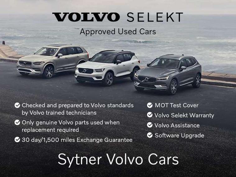 12.3" Progressive Driver Display, 360 degree surround view parking camera with side proximity sensors, 9" centre console touch screen, Adjustable steering wheel force, Apple CarPlay and Android Auto, Bluetooth handsfree system, Drive mode settings, Driver alert control with lane keeping aid, Driver assistance (pilot assist and adaptive cruise control), Driver awareness - Blind spot system + steer assist, cross traffic alert with autobrake, rear collision warning and mitigation, E-call, Emergency assist, Front and rear park assist, Google automotive services - Enabled entertainment apps, navigation with google maps, voice recognition with google assistant, Handsfree bootlid opening/closing, Intelligent speed assistance, Oncoming Lane Mitigation, Power operated tailgate/boot lid, Speed sensitive steering, Volvo on call app, 6m 3 phase 16amp Type 2 / mode 3 charge cable, 8 speed automatic transmission with start/stop + manual change functions, Dynamic chassis, Electric rear axle drive, Lithium-Ion Battery 18.8kWh, On board charger - 6.4 kW 2 phase/3.7kW single phase, Recharging port located in nearside front wing, DAB Radio (Digital Audio Broadcasting), Low speed exterior sound speaker, Premium Sound by Harman Kardon, dirac unison, dolby pro logic II surround sound, 13 speakers/600W output and fresh air subwoofer, Steering wheel remote infotainment controls, Adaptive brake lights with high level LED brake lights, Auto dimming interior + exterior mirrors, Automatic headlight levelling system, Automatic LED Headlights + Active high beam incorporating daytime running lights, Front and rear power windows, Heated windscreen, High gloss black door mirrors and window surround, High gloss black front and rear bumper decoratives, High gloss black mesh front grille and surround, Home safe and approach lighting, Integrated roof rails in high gloss black, Power heated autofolding door mirrors, Puddle lights, Rain sensor with automatic windscreen wiper activation, Rear LED lights with sequential indicators, Rear side wing doors, Rear wiper, Roof antenna, Roof spoiler, Variable front intermittent wipers, Visible VIN plate, 2 zone electronic climate control with Clean zone air quality system + pollen filter, 3 seat bench in 2nd row, 3 Spoke tailored steering wheel with chrome trim, Air purifier particulate matter (PM) 2.5 filter, Ambient door and instrument panel lighting, B Pillar ventilation, Boot lid/tailgate illumination, Bright metal luggage scuff plate, Cargo divider with grocery bag holder, Centre console cupholder and storage, Charcoal carpets and floor mats, Driver and front passenger seat power height adjustment, Extended front seat cushions, Front 12V socket tunnel console and cargo area, Front and rear cabin courtesy light, Front and rear door pocket lights, Front and rear footwell and side step illumination, Front and rear reading lights and centre armrest Storage Illumination, Front headrests, Glovebox compartment with illumination, Heated front seats, Heated rear seats outer positions, Heated steering wheel, Height/reach adjustable steering column, Illuminated luggage compartment, Illuminated recharge aluminium tread plates, Illuminated vanity mirrors + ticket holder, Illumination front tunnel storage, Inner door release handle illumination, Integrated sun curtains in rear doors, ISOFIX attachment on outer rear seats, Leather upholstery, Load cover, Load protection net, Luggage compartment load hooks, Memory function for drivers seat and exterior mirrors, Multi directional lumbar support, Power folding rear headrests, Rear armrest with cupholder, Single front passenger seat, Underfloor cargo storage, Versatile split folding rear seat - 60/40, 3x3 point rear seatbelts, Active bonnet, City safety with steering support with Pedestrian + cyclist + front collision warning with full auto brake and rear auto brake, Driver and front passenger airbags, Drivers knee airbag, Front seats SIPS airbags, Hill start assist, IC (Inflatable Curtains) - Full Length, Passenger airbag cut-off switch, Power child locks on rear doors, Power parking brake with auto hold function, Road sign information display, Run off Road Mitigation, Run off Road Protection, Seatbelt reminder and pretensioners for all seats, SIPS (Side Impact Protection System), Slippery road and hazard light alert, Stability and Traction Control with Spin control, Engine Drag Control and Corner Traction Control, Tyre pressure monitoring system, Vehicle deceleration control with Anti-lock Brake System, Electronic Brake Distribution and Emergency Brake Assist, Warning triangle and first aid kit, WHIPS whiplash protection system - front, 2x Key integrated remote control central locking + fuel flap with deadlocking system and auto open/close power windows, Anti-theft alarm including immobiliser/volume sensor + level sensor, Care key with user defined top speed, Keyless drive includes keyless entry and keyless start, Locking wheel nuts, Private locking for tailgate, Tailored Instrument Panel and Door Tops with Contrast Stitching, 19'' 8 spoke diamond cut black alloy wheels, Tyre sealant kit and compressor,