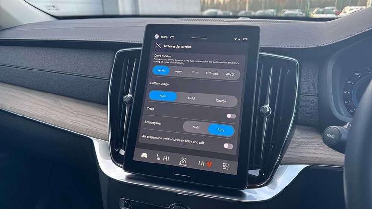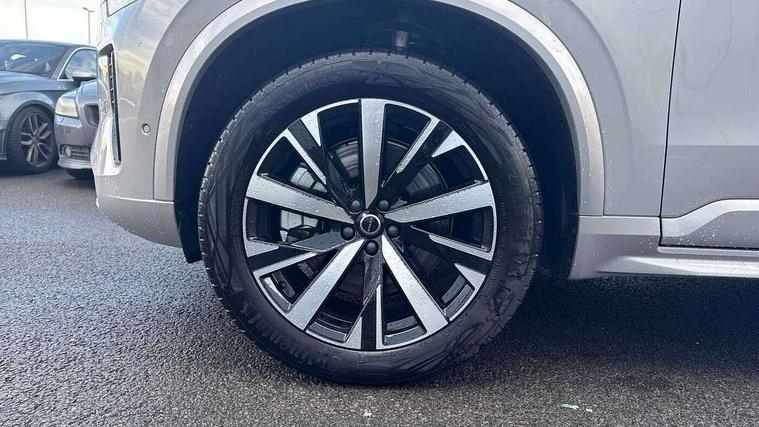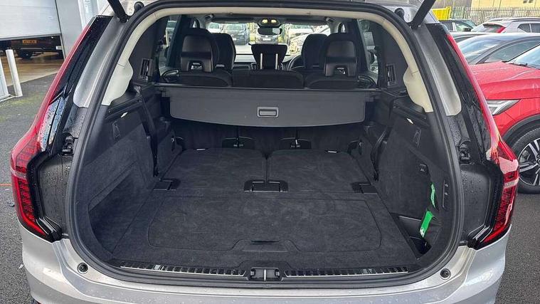 11.2" centre console touch screen, 12.3" Progressive Driver Display, 360 degree surround view parking camera with side proximity sensors, Adjustable steering wheel force, Apple carplay (wired), Bluetooth handsfree system, Drive mode settings, Driver alert control with lane keeping aid, Driver assistance (pilot assist and adaptive cruise control), Driver awareness - Blind spot information system with steer assist, cross traffic alert with autobrake and rear collision warning and mitigation, Driver monitoring system, Emergency call service, Front and rear park assist, Google Automotive Services - Navigation with Voice recoginition and google assistant, Handsfree power tailgate opening and closing, Intelligent speed assistance, Oncoming Lane Mitigation, PAS, Power operated tailgate, Service interval indicator, Speed sensitive steering, Trip computer, Volvo on call, Wireless/Inductive Mobile Phone Charging, 6m 3 phase 16amp Type 2 / mode 3 charge cable, 8 speed automatic transmission with start/stop + manual change functions, Active four C chassis - four corner adaptive dampers with electronic air suspension, Electric rear axle drive, Lithium-ion battery, On board charger - 6.4 kW 2 phase/3.7kW single phase, Recharging port located in nearside front wing, DAB Radio (Digital Audio Broadcasting), Low speed exterior sound speaker, Premium Sound by Harman Kardon, dirac unison, dolby pro logic II surround sound, 13 speakers/600W output and fresh air subwoofer, Steering wheel remote infotainment controls, Adaptive brake lights with high level LED brake lights, Auto dimming interior + exterior mirrors, Auto folding and heated power door mirrors, Automatic headlight levelling system, Automatic matrix LED headlights with Adaptive shadow technology and Active high beam, incorporating Day running lights, Body colour bumpers, Front and rear power windows, Headlight cleaning system, Heated front windscreen, High gloss black door mirrors and window surround, High gloss black front and rear bumper deco, High gloss black front grille and deco, Home safe and approach lighting, Integrated roof rails in high gloss black, Power glass tilt and slide panoramic sunroof with sun curtain, Puddle lights, Rain sensor with automatic windscreen wiper activation, Rear side wing doors, Rear wash/wipe with intermittent wipe setting, Roof antenna, Roof spoiler, Visible VIN plate, 12V socket in luggage compartment, 2nd Row centre armrest with and cupholders, 3 Spoke tailored sport steering wheel with chrome trim, 4 zone electronic climate control with Clean zone air quality system + pollen filter, A-pillar parking ticket holder, Air conditioning for 3rd row of seats, Air purifier PM2.5, Ambient door and instrument panel lighting, B Pillar ventilation, Bright metal luggage scuff plate, Centre console cupholders and storage, Floor mats, Front and rear courtesy lights, Front and rear door pocket illumination, Front footwell and side step illumination, Front headrests, Front reading lights, Front seat cushion extensions, Front tunnel storage illumination, Glovebox compartment light, Heated front seats, Heated rear seats, Heated steering wheel, Height/reach adjustable steering column, Illuminated front and rear aluminium tread plates, Illuminated luggage compartment, Illuminated tailgate, Illuminated vanity mirrors + ticket holder, Inner door release handle illumination, Isofix outer rear child seat preparation in 2nd row, Load cover, Load protection net, Lockable glovebox compartment, Luggage compartment divider with grocery bag holder, Nordico quilted upholstery, Outboard armrest with cupholder and storage for third row passengers, Power driver seat with multi directional lumbar support and memory for seat and exterior mirrors, Power folding 2nd row headrests, Power passenger seat with multi directional lumbar support and memory, Rear footwell and side step illumination, Rear headrests, Rear reading lights, Second row integrated child seat for centre seat, Single front passenger seat, Textile headlining, Three 2nd row individual folding passenger seats with fore/aft adjustment, Two 3rd row individual folding passenger seats, Underfloor luggage compartment storage, 7 three point seatbelts, City safety with steering support includes pedestrian, cyclist detection, front collision warning with full auto brake and rear auto brake, Driver and passenger airbags, Drivers knee airbag, First aid kit, Front seats SIPS airbags, Hill descent control - off drive mode, Hill start assist, IC (Inflatable Curtains) - Full Length, Passenger airbag cut-off switch, Power child locks on rear doors, Power parking brake with auto hold function, Road sign information display, Run off Road Protection, Seatbelt reminder and pretensioners for all seats, SIPS (Side Impact Protection System), Slippery road and hazard light alert, Stability and Traction Control with Spin control, Engine Drag Control and Corner Traction Control, Tyre pressure monitoring system, Vehicle deceleration control with Anti-lock Brake System, Electronic Brake Distribution and Emergency Brake Assist, Warning triangle, WHIPS whiplash protection system - front, 2x Key integrated remote control central locking + deadlocking system and auto open/close windows, Anti-theft alarm including immobiliser/volume sensor + level sensor, Keyless drive includes keyless entry and keyless start, Locking wheel nuts, Tailored instrument panel and door tops, Tyre sealant kit and compressor,