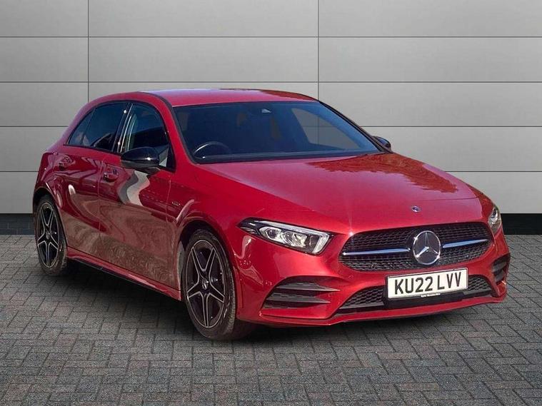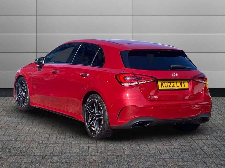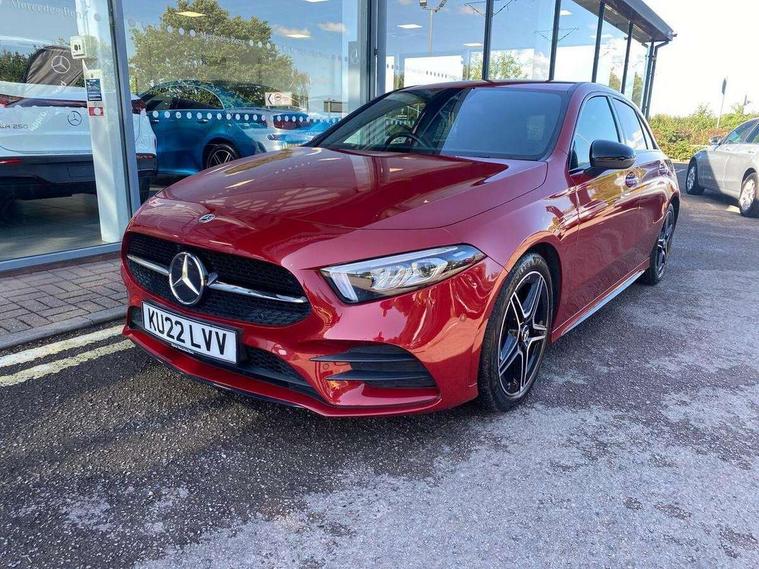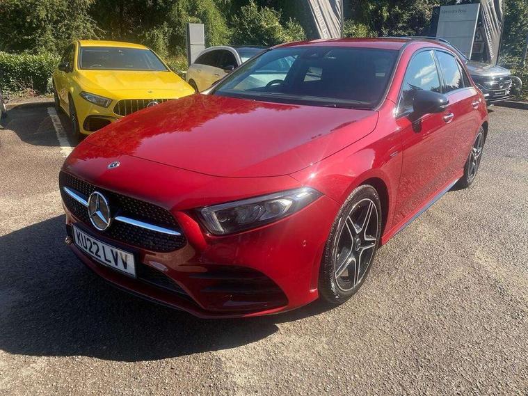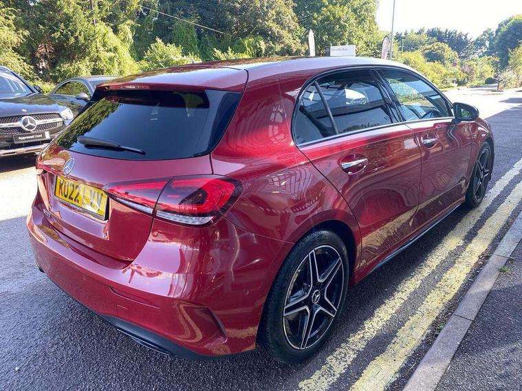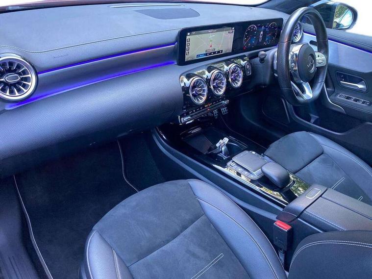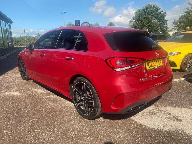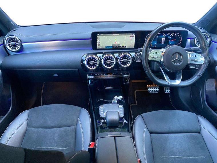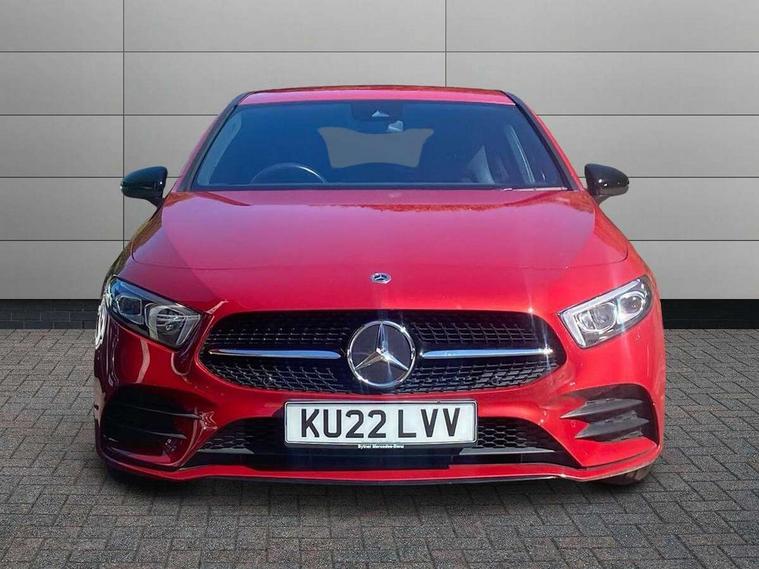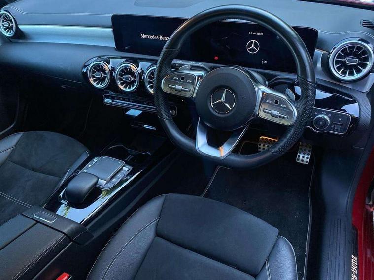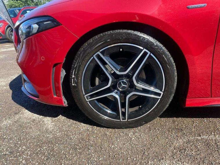 10.25" Digital instrument cluster display screen, 10.25" media display, 180 degree rear view camera with parking guidelines, Active parking assist with visual and audible warning of detected obstacles, Attention assist, Brake pad wear indicator warning light, Car wash mode, Cruise control + speed limiter, Direct steering, Dual bluetooth interfaces, DYNAMIC SELECT with a choice of driving modes (ECO, Comfort, Sport and Individual), ECO start/stop function, Fluid level warning indicator for fuel, oil, coolant and washer fluid, Hard-disk navigation, Hey Mercedes Voice activation, Lamp failure indicator, Lane keeping system, Mercedes me connect including emergency call system, accident recovery, breakdown and maintenance management, Mercedes me remote services, Outside temperature gauge, Owners manual in English, Pre-installation for private car sharing, Preinstallation for Mercedes Benz link, Service indicator (ASSYST), Smartphone integration with Apple CarPlay and Android auto, Speed sensitive power steering, Trip computer, Ultrasonic sensors positioned in the front and rear bumpers, Lowered comfort suspension, Rear axle torsion beam, 10 speakers, 2 USB ports (type C) in rear stowage compartment and one in front of center console, DAB Digital radio, MBUX multimedia system with DAB digital radio and touchpad including satellite navigation, Mercedes-Benz sound system - 100W, 4 Electric Front and Rear windows, Adaptive brake lights, AMG bodystyling - Front apron with splitter in chrome, rear apron with chrome trim and chrome visible trim elements in tailpipe, Automatic headlights, Black weather strip, Body colour bumpers, Body colour door handles, Body colour side skirt, Body coloured door mirrors, Electric adjustable and heated door mirrors with integrated LED side indicators, Exclusive diamond radiator grille, Exhaust system - Twin visible tailpipes in polished stainless steel, Headlamp assist automatic headlamp activation, Heated glass rear windscreen + timer control, High gloss black beltline, LED High level third brake light, LED high performance headlamps with integrated LED daytime running lights, LED tail lamp, Privacy glass, Radio aerial, Rain sensing windscreen wipers with two sensitivity settings, Rear fog lights, Rear side wing doors, Rear wiper, Window line trim strip in high gloss black, 3 seat bench in 2nd row, 3 Spoke flat bottom leather multi function steering wheel with perforated leather in grip area, 40:20:40 split folding rear seats, Artico man-made leather/Microfibre Dinamica upholstery with contrast stitching in light grey, Auto Mercedes-Benz child seat recognition sensor, Black air vents with surround in silver chrome, Black roof lining, Brushed stainless steel sports pedals with rubber studs, Controller on centre console with chrome surround, Floor mats with black top stitching and embroidered edition logo and piping in light grey, Front centre armrest with storage compartment, Front seat backs luggage nets, Front seat cushion length adjustment, Galvanished gear shift paddles on steering wheel, Heated front seats, Height/reach adjustable steering column, Illuminated front door sills with changeable cover, Interior lighting - 64 colour Ambient lighting, Interior mirror with reading lamps in black and frameless, Manual height adjustable front seats, Rear armrest with 2 cupholders, Rear head restraints, Seat occupancy sensor for front passenger seat, Single front passenger seat, Sports seats with integrated headrests, Stowage compartment in centre console with retractable cover, Sunvisors with illuminated vanity mirrors, Touchpad on center console, Twin front cupholders, Two zone thermotronic luxury automatic climate control, Light and sight pack - A Class, Mirror package - A Class, Night pack - A Class Saloon/Hatchback, Seat comfort pack - A Class, 3 rear 3 point seatbelts, ABS with Brake Assist, Active bonnet, Active brake assist includes forward collision warning system with autonomous braking, Adaptive brake assist with hold function and hill start assist, Black seatbelts, Childproof locks manually operated for rear doors and electrically operated for rear power windows, Crash responsive emergency lighting, Driver and passenger head and side airbags, Drivers knee airbag, Dual stage driver/passenger airbags, Electronic parking brake, ESP curve dynamic assist, ESP with ASR, Front and rear seatbelt reminder, Front brake callipers with Mercedes Benz lettering, ISOFIX and top tether child seat fixing points in two outer rear seats, Tyre pressure monitoring system, Warning triangle and first aid kit, Window airbags, Alarm system/interior protection/immobiliser, Keyless entry lock/unlock, Keyless Go, Remote central locking and crash sensor with emergency opening function, Urban guard vehicle protection system with immobiliser and interior protection, Matrix look light longitudinal grain aluminium trim element, 18" AMG 5 twin spoke light alloy wheels aerodynamically optimised painted in black with highsheen finish, Summer tyres, Tirefit sealant kit,