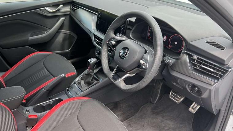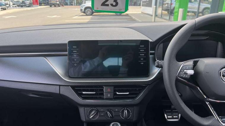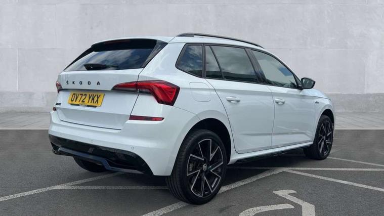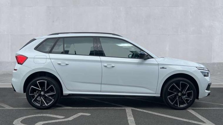 Amundsen satellite navigation with 9.2" glass colour touchscreen display, voice control, virtual cockpit, web radio and traffic sign recognition, Bluetooth system, E-call, Front assist system, Gesture control, PAS, Service indicator, Speed limiter, Virtual cockpit with 10.25"display, Wireless SmartLink for apple car play, android auto and mirrorlink, 8 speakers, Auxiliary input socket, DAB Digital radio, Black door mirrors, Black radiator grille, Black rear diffuser, Body colour bumpers, Body colour door handles, Body colour roof spoiler, Boot lettering in black, Chrome grille surround, Dimming rear view mirror with black surround, Electrically adjustable and heated door mirrors, Front and rear electric windows, Front sport bumper, Full LED headlights with adaptive front light system and front cornering fog lights, Headlight range control, Heated rear window, High functionality rear led lights with dynamic indicators, KAMIQ Door sills, LED daytime running lights, LED third brake light, Light sensors, Monte carlo plaque, Panoramic sunroof with black roof rails, Privacy glass, Rear fog lights, Rear side wing doors, Rear wiper, 12V Accessory socket in centre console, 3 seat bench in 2nd row, Aluminium pedals, Black ceiling for black/beige interior, Black roof lining, Chrome inner door handles, Cloth upholstery, Front head restraints, Glove compartment with illumination, Ice scraper, Isofix child seat fittings on outer rear seats, ISOFIX on front passenger seat, Leather gear lever, Manual lumbar support for front seats, Rake/reach adjustable steering wheel, Reading lights, Single front passenger seat, Sports seats, Sun visors with illumination on front passenger, Textile floor mats, Third rear headrest, Top tether for front passenger seat, Umbrella in driver's door, 3x3 point rear seatbelts, Airbags - driver and front passenger, ESP, Front passenger airbag deactivation switch, Front side airbags with curtain airbags, Hill hold control, Manual parking brake, Manual rear child locks, One tone horn, Rear disc brakes, Seatbelt reminder for driver an co-driver, Traction control, Tyre pressure monitor, Anti-theft alarm system with interior monitoring, backup horn, towing protection and remote central locking with SAFE system, Anti-theft wheel bolts, Electronic engine immobilizer, Chrome air vent surrounds, 18" Vega alloy wheels in black,