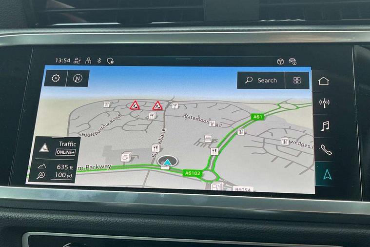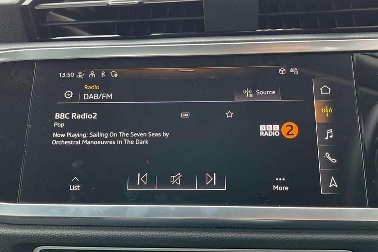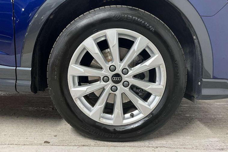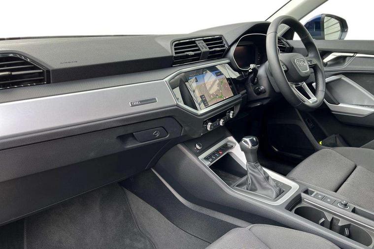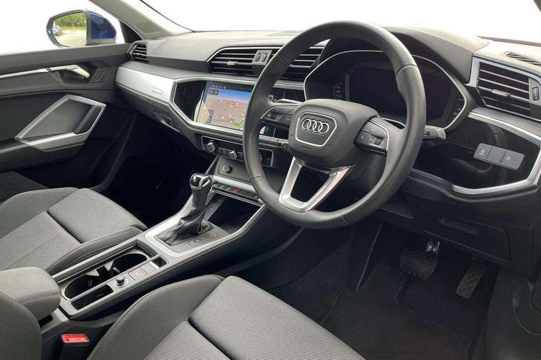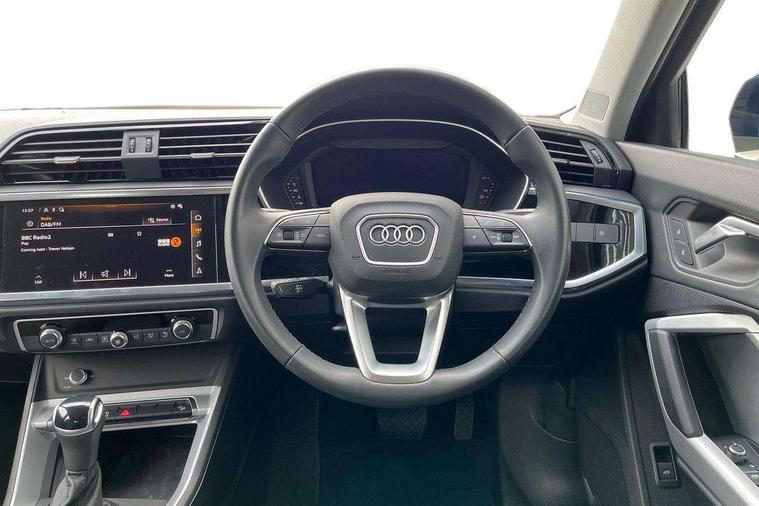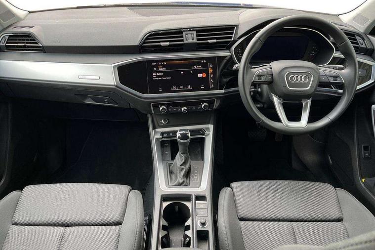 Audi connect safety and service, Audi drive select, Audi lane departure warning, Audi smartphone interface includes wireless Apple carplay/Android Auto, Audi Virtual Cockpit - 10.25" display, Bluetooth interface, Camera based traffic sign recognition, Distraction and Fatigue warning, Legal emergency call, MMI Navigation Plus with high resolution 10.1 inch touchscreen colour display, Power operated tailgate, Progressive steering, Service interval indicator, Start stop system with recuperation, Voice control system with natural language interaction, Sports suspension, 2 USB-C ports with charge and data functions, 6 passive loudspeakers, DAB digital radio module, Acoustic windscreen, Aluminium window trim, Auto dimming door mirrors, Auto dimming frameless rear view mirror, Bumpers and underbody protection in contrasting manhattan grey paint finish, Diffuser grille in grained matt black, Diffuser trim in manhattan grey metallic, Door sill trims with illuminated aluminium inlay, Electrically folding, adjustable and heated door mirrors with integrated LED side indicators and kerb view function for passenger side, Front and rear electric windows, Front fog lights, Front side air inlets in Manhattan grey metallic, Grille surround in aluminium silver matt, High gloss black finish B and C pillars, Honeycomb design radiator grille in matt anthracite black, LED headlights with LED daytime running lights, LED third brake light, Rain and light sensors, Rear side wing doors, Rear wiper, Variable front intermittent wipers, 12V socket in rear centre console, 3 seat bench in 2nd row, 3 spoke multi-function leather steering wheel, 40:20:40 folding with manual adjustment for 60:40 forwards/backwards position and backrest angle, Dual zone electronic climate control, Electric lumbar support, Front and rear floor mats, Front and rear headrests, Front centre armrest, Height and reach adjustable steering wheel, ISOFIX child seat mounting for front passenger with airbag deactivation and outer rear seat including top tether attachment point for outer rear seats, Luggage compartment sill protection in stainless steel, Lunar silver cloth headlining, Manual front seats with height adjustment, Single front passenger seat, Non smoking pack - Q3, 3x3 point rear seatbelts, 6 airbags - Driver, front passenger, curtain and side windows, Audi pre-sense front with pedestrain and cyclist recognition, Electrically operated child locks on rear doors, Electromechanical parking brake, Electronic stabilisation control including ABS, ASR and EDL, Front seatbelt reminder, Hill descent control, Hill hold assist, Pre sense basic, Seatbelt monitoring, Tyre pressure warning, Warning triangle and first aid kit, Anti theft alarm, Anti theft wheel bolts, Immobiliser, Remote central locking, Aluminium look interior elements, Detail dashboard around MMI touch colour display in glass look, black with surround in aluminium look, Micrometallic silver inlay,
