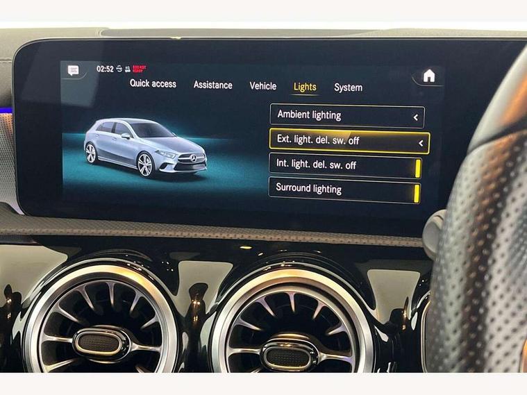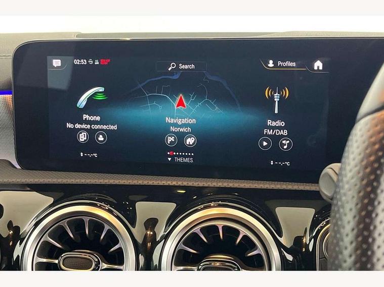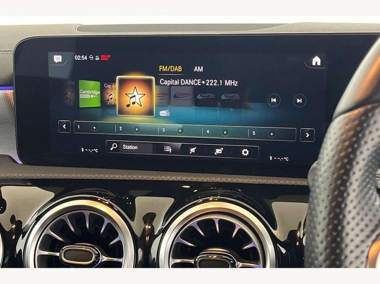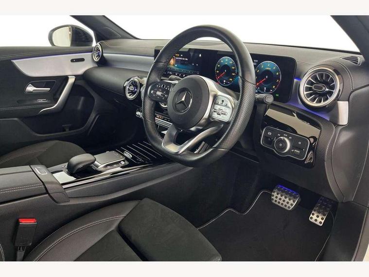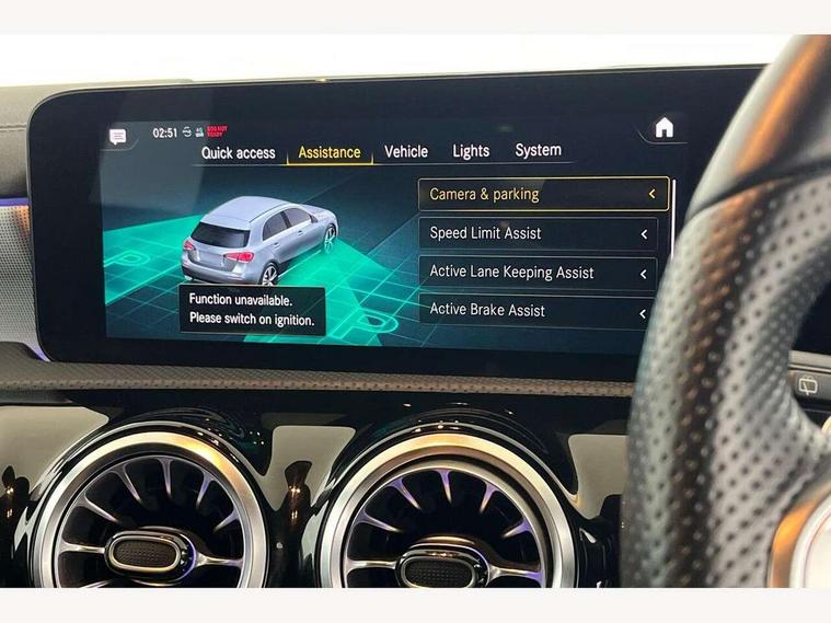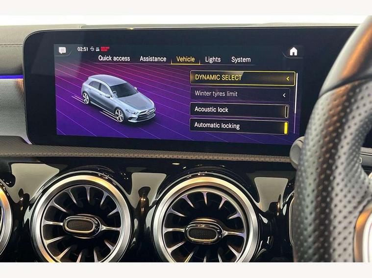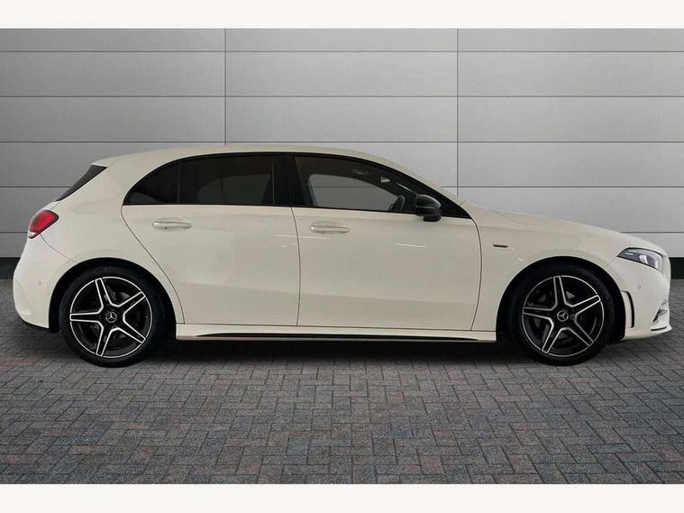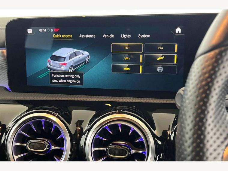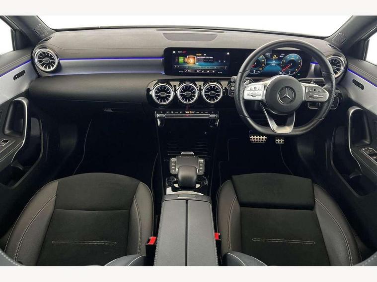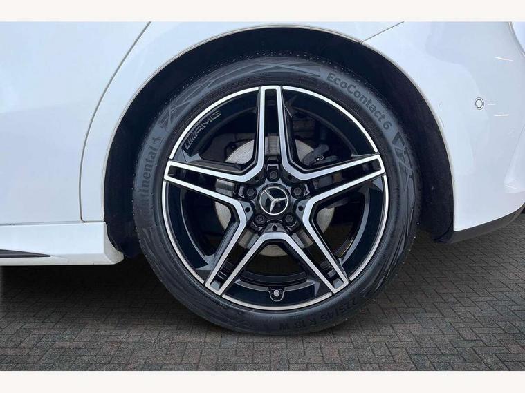 10.25" Digital instrument cluster display screen, 10.25" media display, 180 degree rear view camera with parking guidelines, Active parking assist with visual and audible warning of detected obstacles, Attention assist, Brake pad wear indicator warning light, Car wash mode, Cruise control + speed limiter, Direct steering, Dual bluetooth interfaces, DYNAMIC SELECT with a choice of driving modes (ECO, Comfort, Sport and Individual), ECO start/stop function, Fluid level warning indicator for fuel, oil, coolant and washer fluid, Hard-disk navigation, Hey Mercedes Voice activation, Lamp failure indicator, Lane keeping system, Mercedes me connect including emergency call system, accident recovery, breakdown and maintenance management, Mercedes me remote services, Outside temperature gauge, Owners manual in English, Pre-installation for private car sharing, Preinstallation for Mercedes Benz link, Service indicator (ASSYST), Smartphone integration with Apple CarPlay and Android auto, Speed sensitive power steering, Trip computer, Ultrasonic sensors positioned in the front and rear bumpers, Lowered comfort suspension, Rear axle torsion beam, 10 speakers, 2 USB ports (type C) in rear stowage compartment and one in front of center console, DAB Digital radio, MBUX multimedia system with DAB digital radio and touchpad including satellite navigation, Mercedes-Benz sound system - 100W, 4 Electric Front and Rear windows, Adaptive brake lights, AMG bodystyling - Front apron with splitter in chrome, rear apron with chrome trim and chrome visible trim elements in tailpipe, Automatic headlights, Black weather strip, Body colour bumpers, Body colour door handles, Body colour side skirt, Body coloured door mirrors, Electric adjustable and heated door mirrors with integrated LED side indicators, Exclusive diamond radiator grille, Exhaust system - Twin visible tailpipes in polished stainless steel, Headlamp assist automatic headlamp activation, Heated glass rear windscreen + timer control, High gloss black beltline, LED High level third brake light, LED high performance headlamps with integrated LED daytime running lights, LED tail lamp, Privacy glass, Radio aerial, Rain sensing windscreen wipers with two sensitivity settings, Rear fog lights, Rear side wing doors, Rear wiper, Window line trim strip in high gloss black, 3 seat bench in 2nd row, 3 Spoke flat bottom leather multi function steering wheel with perforated leather in grip area, 40:20:40 split folding rear seats, Artico man-made leather/Microfibre Dinamica upholstery with contrast stitching in light grey, Auto Mercedes-Benz child seat recognition sensor, Black air vents with surround in silver chrome, Black roof lining, Brushed stainless steel sports pedals with rubber studs, Controller on centre console with chrome surround, Floor mats with black top stitching and embroidered edition logo and piping in light grey, Front centre armrest with storage compartment, Front seat backs luggage nets, Front seat cushion length adjustment, Galvanished gear shift paddles on steering wheel, Heated front seats, Height/reach adjustable steering column, Illuminated front door sills with changeable cover, Interior lighting - 64 colour Ambient lighting, Interior mirror with reading lamps in black and frameless, Manual height adjustable front seats, Rear armrest with 2 cupholders, Rear head restraints, Seat occupancy sensor for front passenger seat, Single front passenger seat, Sports seats with integrated headrests, Stowage compartment in centre console with retractable cover, Sunvisors with illuminated vanity mirrors, Touchpad on center console, Twin front cupholders, Two zone thermotronic luxury automatic climate control, Light and sight pack - A Class, Mirror package - A Class, Night pack - A Class Saloon/Hatchback, Seat comfort pack - A Class, 3 rear 3 point seatbelts, ABS with Brake Assist, Active bonnet, Active brake assist includes forward collision warning system with autonomous braking, Adaptive brake assist with hold function and hill start assist, Black seatbelts, Childproof locks manually operated for rear doors and electrically operated for rear power windows, Crash responsive emergency lighting, Driver and passenger head and side airbags, Drivers knee airbag, Dual stage driver/passenger airbags, Electronic parking brake, ESP curve dynamic assist, ESP with ASR, Front and rear seatbelt reminder, Front brake callipers with Mercedes Benz lettering, ISOFIX and top tether child seat fixing points in two outer rear seats, Tyre pressure monitoring system, Warning triangle and first aid kit, Window airbags, Alarm system/interior protection/immobiliser, Keyless entry lock/unlock, Keyless Go, Remote central locking and crash sensor with emergency opening function, Urban guard vehicle protection system with immobiliser and interior protection, Matrix look light longitudinal grain aluminium trim element, 18" AMG 5 twin spoke light alloy wheels aerodynamically optimised painted in black with highsheen finish, Summer tyres, Tirefit sealant kit,
