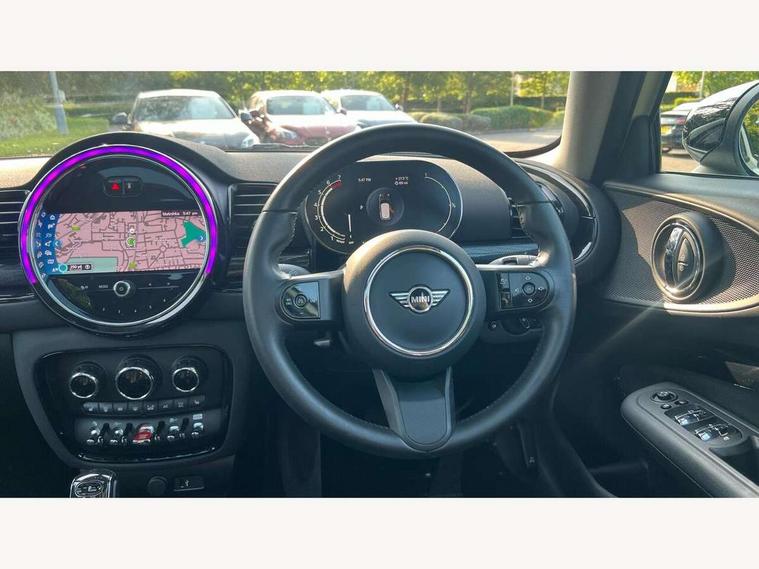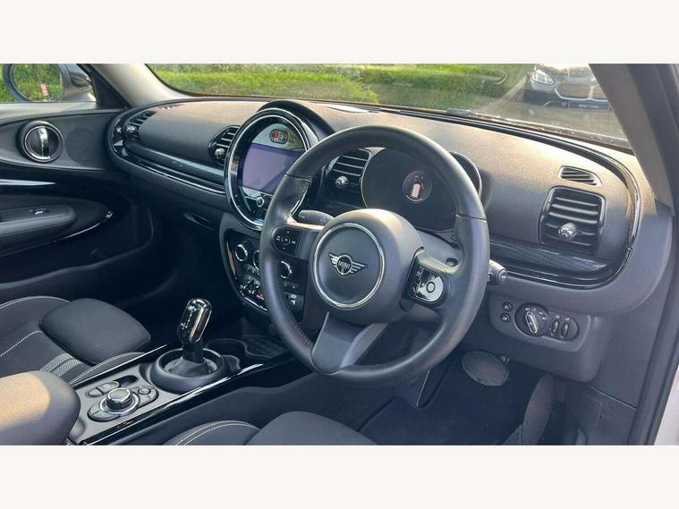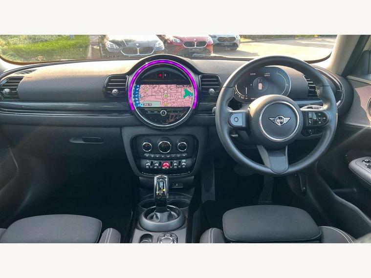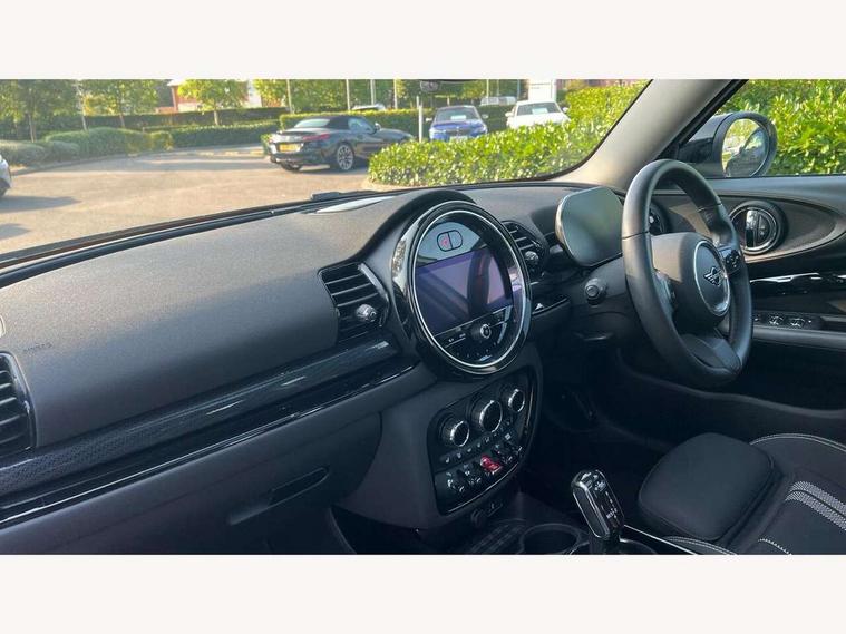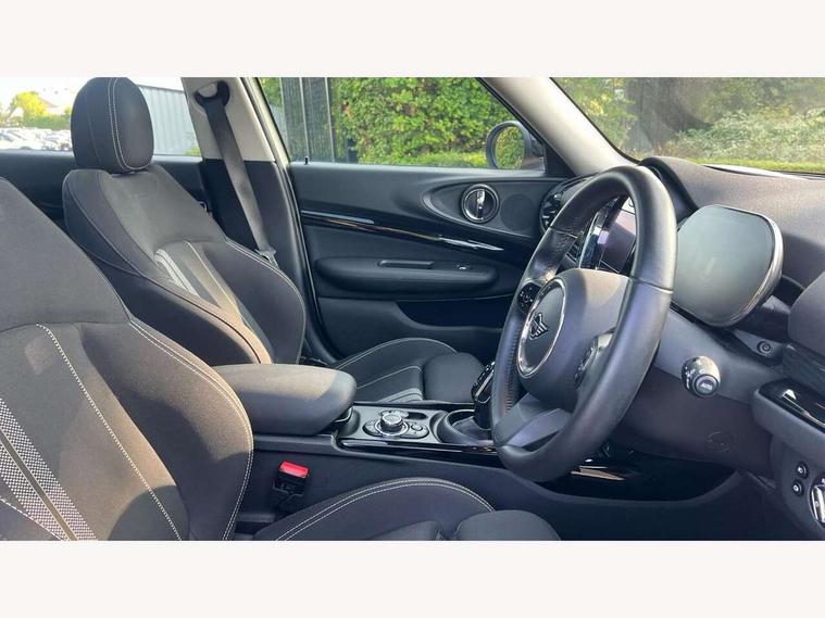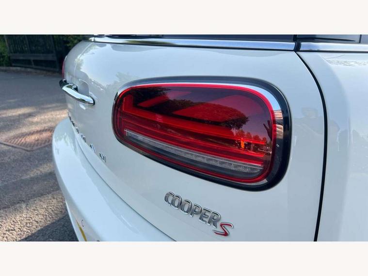 Active Guard incl speed limiting and lane departure functions with auto steering, and front collision warning with brake intervention, Automatic start/stop function with brake energy recuperation, Compatible mobile phone bluetooth with audio streaming, Digital cockpit, Electro-mechanical speed dependant steering assistance, Instrument cluster, Mini E-call, MINI TeleServices, On board computer, Double Vanos system, Fully variable valve control, High precision injection, Performance Control, Steptronic transmission with double clutch, FM tuner and DAB digital radio, Bonnet scoop, Chrome border honeycomb structure radiator grille with S badge, Chrome fuel filler cap, Dynamic brake lights, Electric windows, Heated rear window, Heated windscreen washer jets, LED headlights with closed ring as daytime driving lights, LED rear light with union jack design, Metal door sill strips with Cooper S imprint, Model logo, Model logo on rear doors, Rain sensor with auto headlights, Rear fog lights, Rear window wiper, Side scuttle panel with integrated indicator, Split rear doors, Sun/heat protection glass, Twin exhaust tailpipe, White indicator lenses, 12V Accessory socket in centre console, 3 spoke sport leather steering wheel + limiter function and audio controls, 360L luggage compartment capacity, 4 lashing eyes in luggage compartment, 60/40 split folding rear seat, Chrome interior highlights, Cupholders, English handbook, Front and rear head restraints, Glove compartment, Headliner with grab handles and clothes hooks, Height and length steering column adjustment, Interior lighting with 12 basic colours selectable via toggle switch in roof, Isofix rear child seat preparation, Leather gearshift lever and handbrake gaiters, LED reading lights, vanity mirror lights, front foot well light and spotlight on front seats, Manual air conditioning, Mechanical seat adjustment, driver seat height adjust, forward/back and front seats backrest, Multifunction steering wheel, Storage compartments in doors, Sunvisors with vanity mirrors, Toolkit, Excitement pack - Clubman, Navigation pack - Clubman, 2 tone horn, 3 point seatbelts on all seats, 6 Airbags - front, side, head and seat belt tensioners, Anti-lock braking system (ABS), DSC - Dynamic Stability Control, Electronic handbrake, Front and rear disc brakes, Tyre pressure monitoring system, Alarm system with tilt sensor, monitoring doors, bonnet interior and tailgate, Auto drive away locking, Deadlocking function, Electronic vehicle immobiliser, Locking wheel bolts, Start/stop toggle with keyless go, Tyre repair kit,