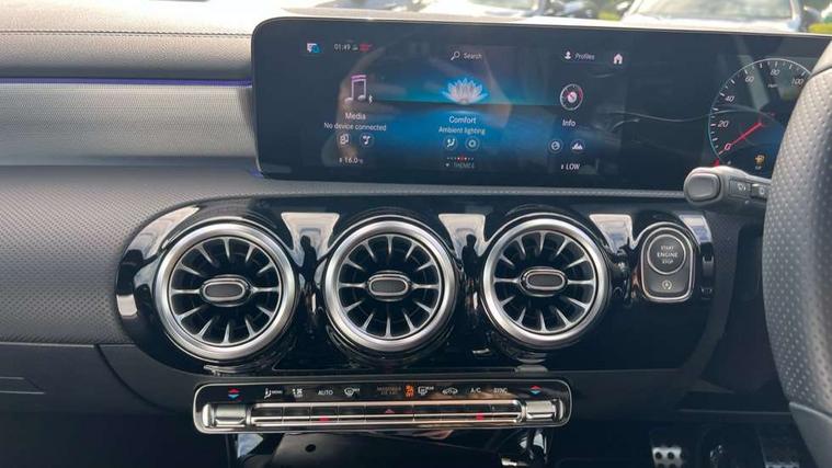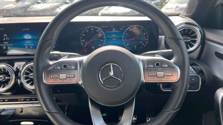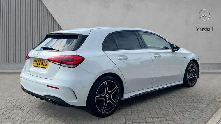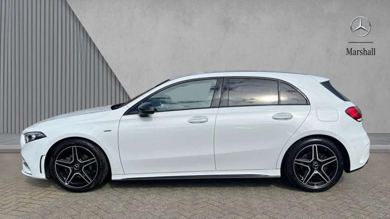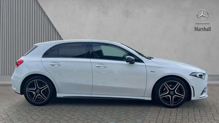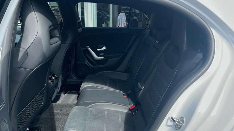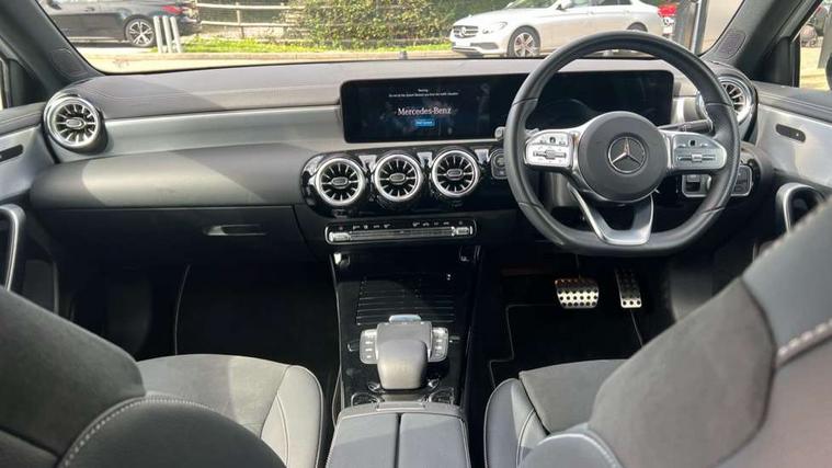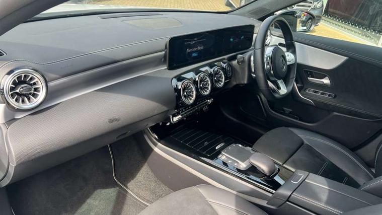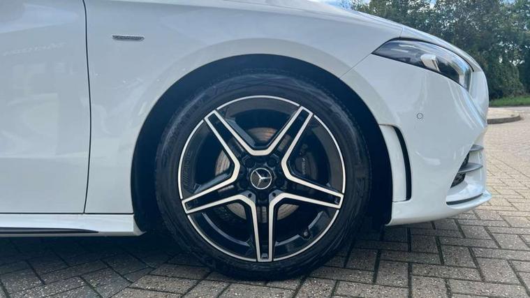 10.25" Digital instrument cluster display screen, 10.25" media display, 180 degree rear view camera with parking guidelines, Active parking assist with visual and audible warning of detected obstacles, Attention assist, Brake pad wear indicator warning light, Car wash mode, Cruise control + speed limiter, Direct steering, Dual bluetooth interfaces, DYNAMIC SELECT with a choice of driving modes (ECO, Comfort, Sport and Individual), ECO start/stop function, Fluid level warning indicator for fuel, oil, coolant and washer fluid, Hard-disk navigation, Hey Mercedes Voice activation, Lamp failure indicator, Lane keeping system, Mercedes me connect including emergency call system, accident recovery, breakdown and maintenance management, Mercedes me remote services, Outside temperature gauge, Owners manual in English, Pre-installation for private car sharing, Preinstallation for Mercedes Benz link, Service indicator (ASSYST), Smartphone integration with Apple CarPlay and Android auto, Speed sensitive power steering, Trip computer, Ultrasonic sensors positioned in the front and rear bumpers, Lowered comfort suspension, Rear axle torsion beam, 10 speakers, 2 USB ports (type C) in rear stowage compartment and one in front of center console, DAB Digital radio, MBUX multimedia system with DAB digital radio and touchpad including satellite navigation, Mercedes-Benz sound system - 100W, 4 Electric Front and Rear windows, Adaptive brake lights, AMG bodystyling - Front apron with splitter in chrome, rear apron with chrome trim and chrome visible trim elements in tailpipe, Automatic headlights, Black weather strip, Body colour bumpers, Body colour door handles, Body colour side skirt, Body coloured door mirrors, Electric adjustable and heated door mirrors with integrated LED side indicators, Exclusive diamond radiator grille, Exhaust system - Twin visible tailpipes in polished stainless steel, Headlamp assist automatic headlamp activation, Heated glass rear windscreen + timer control, High gloss black beltline, LED High level third brake light, LED high performance headlamps with integrated LED daytime running lights, LED tail lamp, Privacy glass, Radio aerial, Rain sensing windscreen wipers with two sensitivity settings, Rear fog lights, Rear side wing doors, Rear wiper, Window line trim strip in high gloss black, 3 seat bench in 2nd row, 3 Spoke flat bottom leather multi function steering wheel with perforated leather in grip area, 40:20:40 split folding rear seats, Artico man-made leather/Microfibre Dinamica upholstery with contrast stitching in light grey, Auto Mercedes-Benz child seat recognition sensor, Black air vents with surround in silver chrome, Black roof lining, Brushed stainless steel sports pedals with rubber studs, Controller on centre console with chrome surround, Floor mats with black top stitching and embroidered edition logo and piping in light grey, Front centre armrest with storage compartment, Front seat backs luggage nets, Front seat cushion length adjustment, Galvanished gear shift paddles on steering wheel, Heated front seats, Height/reach adjustable steering column, Illuminated front door sills with changeable cover, Interior lighting - 64 colour Ambient lighting, Interior mirror with reading lamps in black and frameless, Manual height adjustable front seats, Rear armrest with 2 cupholders, Rear head restraints, Seat occupancy sensor for front passenger seat, Single front passenger seat, Sports seats with integrated headrests, Stowage compartment in centre console with retractable cover, Sunvisors with illuminated vanity mirrors, Touchpad on center console, Twin front cupholders, Two zone thermotronic luxury automatic climate control, Light and sight pack - A Class, Mirror package - A Class, Night pack - A Class Saloon/Hatchback, Seat comfort pack - A Class, 3 rear 3 point seatbelts, ABS with Brake Assist, Active bonnet, Active brake assist includes forward collision warning system with autonomous braking, Adaptive brake assist with hold function and hill start assist, Black seatbelts, Childproof locks manually operated for rear doors and electrically operated for rear power windows, Crash responsive emergency lighting, Driver and passenger head and side airbags, Drivers knee airbag, Dual stage driver/passenger airbags, Electronic parking brake, ESP curve dynamic assist, ESP with ASR, Front and rear seatbelt reminder, Front brake callipers with Mercedes Benz lettering, ISOFIX and top tether child seat fixing points in two outer rear seats, Tyre pressure monitoring system, Warning triangle and first aid kit, Window airbags, Alarm system/interior protection/immobiliser, Keyless entry lock/unlock, Keyless Go, Remote central locking and crash sensor with emergency opening function, Urban guard vehicle protection system with immobiliser and interior protection, Matrix look light longitudinal grain aluminium trim element, 18" AMG 5 twin spoke light alloy wheels aerodynamically optimised painted in black with highsheen finish, Summer tyres, Tirefit sealant kit,