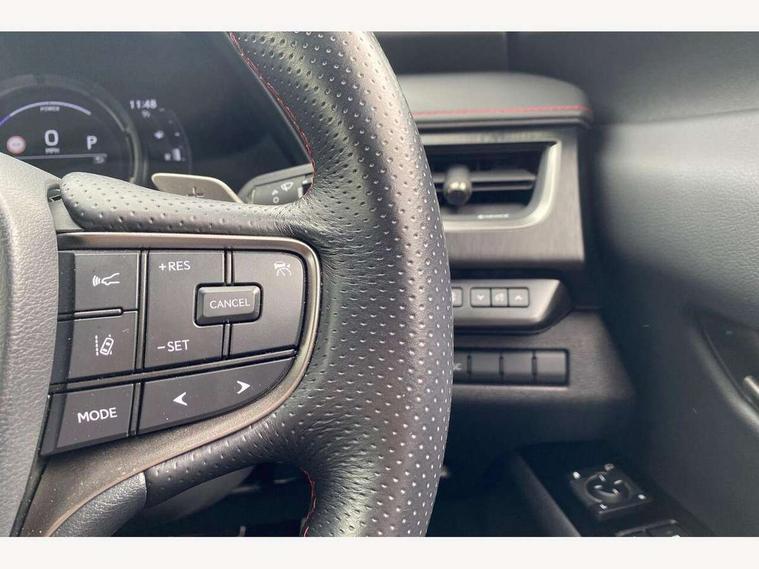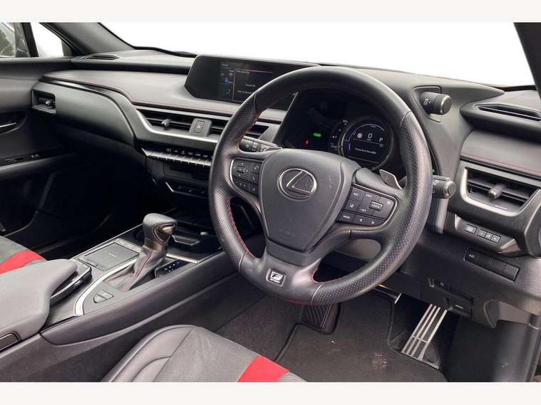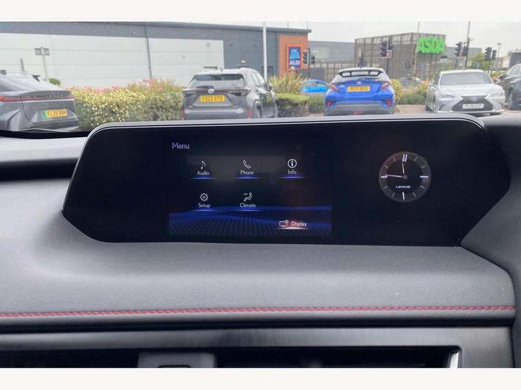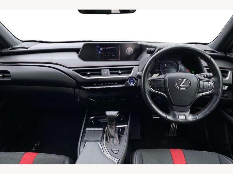 4 driving modes EV/Eco/Normal/Sport, 7" Lexus media display, 8" LFA inspired TFT meters with movable meter ring, Analogue clock with GPS function, Apple car play/Android Auto, Compatible mobile phone bluetooth with audio streaming, E-call, Electric power steering (EPS) with speed sensitive features, Front and rear parking sensor with intelligent clearance sonar, Lane change flasher function, Lexus link connected services, Lexus navigation system, Lexus safety systems + includes dynamic radar cruise control, pre collision system day and night, lane tracing assist, road sign assist, Push button start, Remote touch interface, Reversing camera with back guide lines, Trip computer, F Sport suspension tuning and rear performance dampers, Vehicle Dynamics Integrated Management (VDIM), Vehicle Stability Control (VSC), 2 front USB and 2 rear USB charging points, 6 speakers, AM/FM and DAB radio, AUX socket with VTR compatibility, CD player, Acoustic windscreen, Aero stabilising arch mouldings, Aero stabilising rear lights, Aero ventilated wheels, Aluminium roof rails, Auto dimming interior rear view mirror, Bi-LED (low and high beam) headlights with Auto High Beam (AHB), Black roof drip mouldings, Body adhesive, laser screw welding and laser brazed roof structure, Body coloured bumpers, Colour coded wheel arches, Electric adjustable/heated door mirrors, F SPORT exterior styling consists of black Mesh front grille, enhanced side rockers, metallic coated front bumper and F SPORT badging, Front and rear one touch power windows, with anti-jam protection, Headlight cleaners, LED cornering headlights, LED daytime running lights, LED front and rear fog lights, LED tail lights, LED third brake light, Privacy glass, rear doors and tailgate, Rain sensor windscreen wipers, Rear side wing doors, Rear wiper, Shark fin roof aerial, Single hidden exhaust pipe, Towing preparation, Variable front intermittent wipers, 12V accessory port centre console and luggage compartment, 2 cup holders in the front and rear centre console, 2 way electrical lumbar adjustment for driver, 2 x folding shopping bag hooks in boot, 2 x sun visors with vanity mirror and lamp, 3 seat bench in 2nd row, 4 x tie down hooks in the boot, 5 headrests, 60/40 split folding rear seat, 8 way driver/passenger electrically adjustable front seats, Active sound control, Card holder installed in driver and passengers sun visors, Centre armrest with storage, Driver and passenger door pocket, Dual zone electronic climate control + Nano-E humidity sensor, F Sport aluminium sports pedals, F SPORT dimpled leather gear lever, F SPORT front seat headrest adjustable forwards and backwards, F Sport interior styling, F Sport leather steering wheel with paddle shifts, Fabric/Tahara leather upholstery, Glovebox, Heated steering wheel, Illuminated entry system, LED interior illumination, Map pockets in the rear of passenger's front seat, Rear air vents with 2 USB chargers, Rear armrest with 2 cupholders, Single front passenger seat, Storage tray under audio panel, Textile carpet mats, Tilt/reach adjustable steering column, Under deck storage, Under desk side storage, 2 x Isofix child rear seat restraints, 3x3 point rear seatbelts, Anti-lock braking system (ABS), BAS (Brake Assist System), Driver and front passenger 2 stage airbag, Driver and front passenger knee airbag, Driver/front passenger side airbags, EBD - Electronic brakeforce distribution, ECB (Electronically Controlled Brake System), Electric child locks, Electric parking brake, Front adjustable seatbelt anchor points, Front and rear curtain shield airbags, Front outer seatbelt+pre-tensioners, force limiter+tension reduction: 3-point with active safety link to PCS, Hill start assist control (HAC), Passenger airbag cut-off device, Rear outer seatbelt+pre-tensioners, force limiter+tension reduction: 3-point with active safety link to PCS, Centre belt w/o pre tensioner+force limiter, Secondary Collision Brake (SCB), TRC (Traction Control), Tyre pressure warning, 2 x remote key fobs, Anti theft system : Alarm instruction sensor, glass breakage sensor and engine immobiliser, Locking wheel nuts, Remote central door locking, Speed sensitive auto door locking, Two motion door lock with double lock, VIN Window etching, 18" F Sport alloy wheels with run flat tyres,