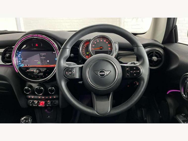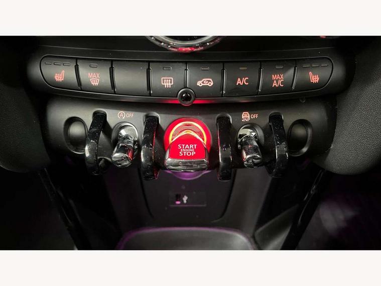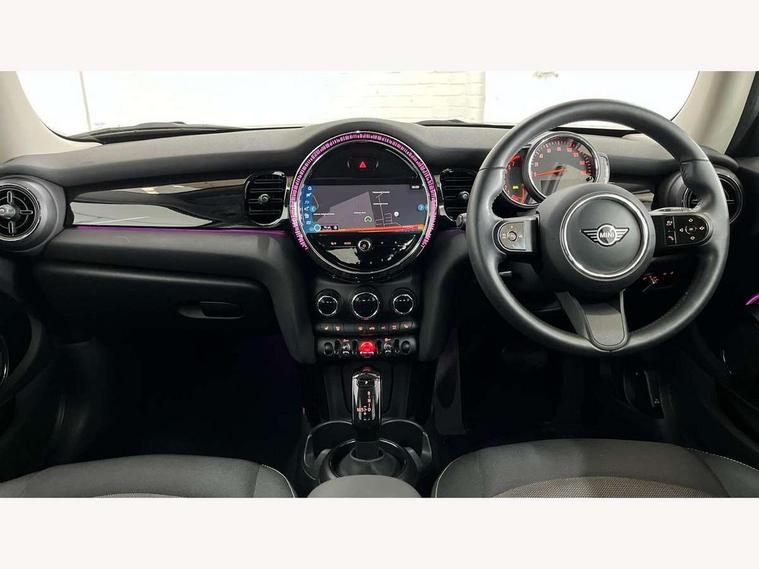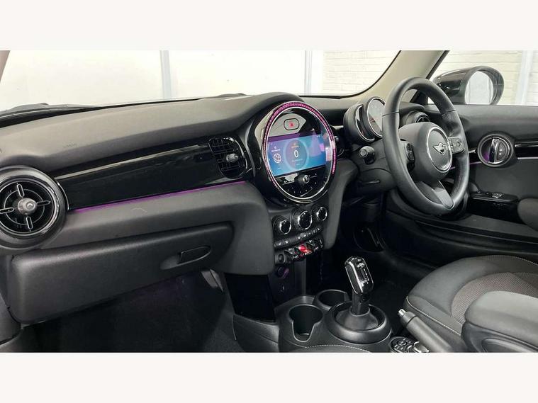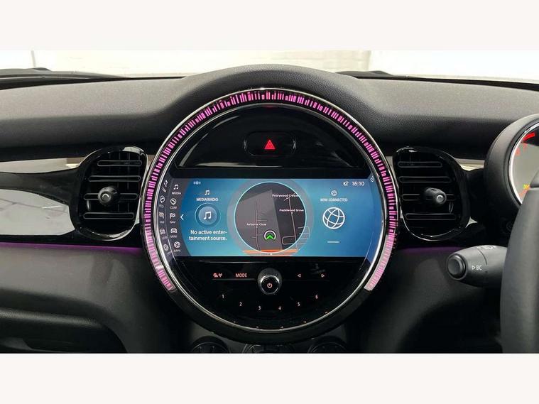 Apple CarPlay, Automatic start/stop function with brake energy recuperation, Compatible mobile phone bluetooth with audio streaming, Cruise control with brake assist, Electro-mechanical speed dependant steering assistance, Flexible car sharing preparation, Instrument cluster, Mini E-call, MINI TeleServices, On board computer, Service interval indicator, Double Vanos system, Fully variable valve control, High precision injection, Performance Control, Steptronic transmission with double clutch, 8.8" touchscreen with LED ring, FM tuner and DAB digital radio, 3rd brake light, Automatic headlight activation switch, Body colour fuel filler cap, Chrome border high gloss black slats radiator grille, Dynamic brake lights, Electric front windows, Exhaust tailpipe on left with chrome finisher, Heated rear window, Heated windscreen washer jets, LED headlight with closed ring and daytime driving lights, Metal door sill strips with MINI imprint, Model logo Cooper on right of tailgate, Rain sensor window wipers, Rear fog lights, Rear LED lights with union jack design, Rear window wiper, Side scuttle panel with integrated indicator, Sun/heat protection glass, White indicator lenses, 12V Accessory socket in centre console, 2 seat bench in 2nd row, 4 lashing eyes in luggage compartment, 60/40 split folding rear seat, Ambient lighting, Carbon black colour line - Knee roll and door armrest, Chrome interior highlights, Cupholders, Front and rear head restraints, Front and rear isofix with front passenger airbag deactivation, Front floor mats in velour, Glove compartment, Height and length steering column adjustment, Interior lighting with 12 different colours across the dashboard, underneath door bezel with illuminated laser-engraved design on central display, Leatherette gearshift lever and handbrake gaiters, LED reading lights, vanity mirror lights, front foot well light and spotlight on front seats, Manual air conditioning, Mechanical seat adjustment - forward/back & backrest for front seats and driver seat height adjust, Multifunction steering wheel, Passenger seat height adjuster, Satellite grey headlining including grab handles and clothes hooks, Single front passenger seat, Sport leather steering wheel with speed limiter and audio/communication controls, Storage compartments in doors, Sunvisors with vanity mirrors, 3 point seatbelts on all four seats, 6 Airbags - front, side, head and seat belt tensioners, Anti-lock braking system (ABS), DSC - Dynamic Stability Control, Front and rear disc brakes, Single tone fanfare horn, Tyre pressure monitoring system, Alarm system with tilt sensor, monitoring doors, bonnet interior and tailgate, Electronic vehicle immobiliser, Start/stop toggle with keyless go, Piano black interior trim, Tool kit, Tyre repair kit,
