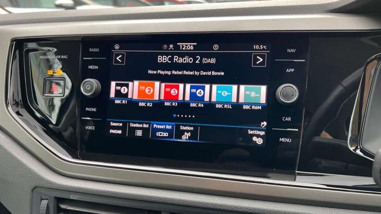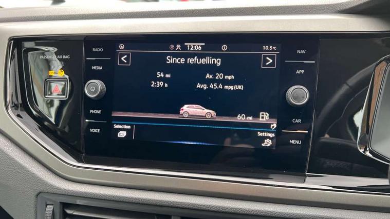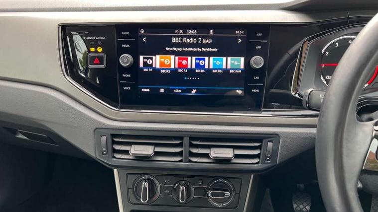 Digital clock, Driver alert system, Emergency call service, Multifunction computer plus, Power assisted speed sensitive steering, Speedo and rev counter, electronic odometer, trip, service interval display and fuel gauge, Start/stop system, Volkswagen connect, Warning buzzer and light for front seatbelts unfastened, Wireless app connect, Battery regeneration during braking, Galvanished body, Diversity antenna for FM reception, Front and rear 6 speakers, Black grille with chrome surround, Black radiator grille with chrome louvres, Body colour bumpers, Body colour door handles, Body colour rear spoiler, Body coloured side sills, Electric front windows, Electrically adjustable and heated door mirrors with reverse activated kerb view adjustment on passenger's side, Front windscreen washers and wipers with 4 speed intermittent delay, Heated rear window with auto timer, High level 3rd brake light, LED daytime running lights, LED rear number plate lights, Rear electric windows, Rear windscreen washer and wiper with interval delay, reverse activated, 2 bag hooks in luggage compartment, 2 front and 2 rear reading lights, 2 front cupholders and 12 V socket with cover, 3 rear head restraints, 4 grab handles, 60/40 split folding rear seat, Centre console storage with open storage compartment, Chrome interior door handles, Driver and front passenger seat height adjustment, Driver and front passenger sunvisors with illuminated vanity mirrors, Dust/pollen filter, Folding rear seat backrest, Front head restraints, Front seat backrest storage pockets, Gear lever gaiter in black trim surround, Glovebox, Handbrake grip button in chrome effect, Height/reach adjustable steering column, Instrument lighting, adjustable panel illumination, Interior light with delay, Isofix Preparation 2 Rear child seats, Leather gear knob and handbrake grip, Leather multifunction steering wheel, Luggage compartment cover, removable, Luggage compartment lighting, Luggage compartment with variable load floor, Storage compartment in front doors, Storage compartment in rear doors, Storage compartment under front seats, Sunglasses holder, 3 point height adj front seatbelts + pretensioners, 3x3 point rear seatbelts, ABS, Automatic post collision braking, Driver/front passenger airbag, Drivers and front passengers safety optimised head restraints, ESP with EDL + ASR, Front and rear passenger curtain airbags, Front disc brakes and rear drum brakes, Front passenger airbag deactivation, Front seat side impact airbags, HBA (Hydraulic Brake Assist), Hill hold control, Single tone horn, Tyre pressure monitoring system, Alarm with interior protection and deactivation via infotainment system, Electronic engine immobiliser, Remote central locking with 2 remote folding keys, Air vents in High gloss black, Limestone grey decorative inserts,