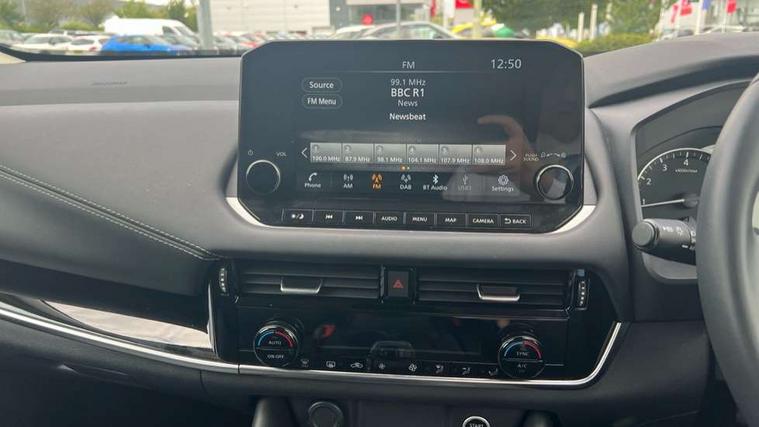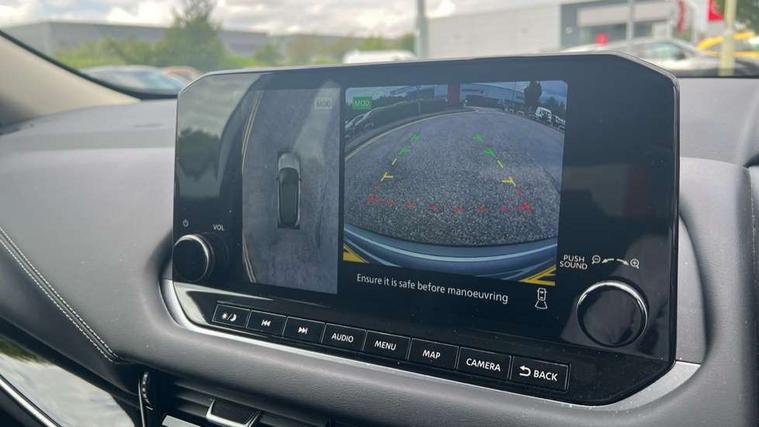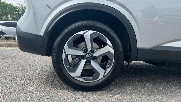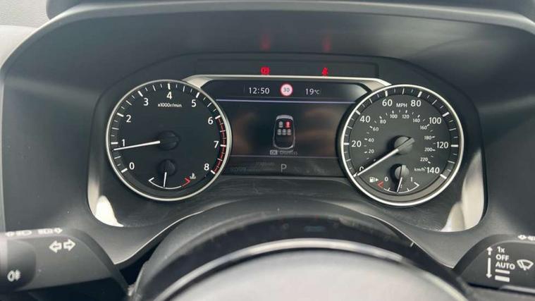 Android auto/Apple CarPlay (Wired), Blind spot warning, Drive modes (sport, normal, eco), Electric speed sensitive power steering, Emergency and breakdown call, Full Digital 12.3" TFT Digital Combimeter, Google maps services - search, weather, 3D maps and Google street view, Idle stop/start system, Intelligent around view monitor, Intelligent Cruise control (ICC), Intelligent driver alert system, Intelligent forward collision warning, Intelligent lane intervention, Lane departure prevention, Lane departure warning system, Maximum speed limiter, Moving object detection, Nissan connect 12.3 inch touchscreen infotainment system, Nissan connect navigation, Push button starter, Rear cross traffic alert, Rear parking sensors, Rear view camera, Remote control services - door locks, lights, horn and car locator, Telematics - notifications and connectivity services, TomTom live traffic services, Traffic sign recognition with legal speed adjustment, Trip computer, Virtual personal assistant and firmware over the air capability, Wireless apple carplay, 6 speakers, AM/FM audio system with DAB, Bluetooth audio streaming, Front USB connections (Type-A and Type-C), Rear USB charging only ports (Type-A and Type-C), Auto dimming rear view mirror, Auto rear wiper when reversing, Automatic hazard signal with emergency stop signal, Body colour mirror caps, Body coloured door handles, Bodyside mouldings, Chrome side window finisher, Door handle with button, Dusk sensor, Electric auto folding door mirrors, Electrically adjustable and heated door mirrors with LED turn indicator, Follow me home headlights, High beam assist, Intelligent auto headlights, LED daytime running lights, LED Headlights, LED rear lights, One touch front and rear electric windows with remote opening and closing, Partially body coloured bumpers, Privacy glass, Rear bumper with graphite insert, Rear reversing light (bulb lighting), Rear roof spoiler, Rear side wing doors, Rear styling plate, Shark fin antenna, Splash free rain sensing wipers, Super UV and infrared cut glass, Three blink turn signal, 12v power socket in dashboard and luggage, 2 way electrical driver lumbar adjustment, 2x Rear coat hooks, 3 bench rear seats in 2nd row, 3 rear headrests, 4 folding assist grip, 6 Luggage hooks - 4 on floor, 2 on side, 6-way manually adjustable driver's seat, 60/40 split folding rear seat bench, Ambient lighting around centre console, Centre console storage tray, Chrome interior door handles, Cloth monoform upholstery, Driver and front passenger sunvisors with illuminated vanity mirrors, Driver seat back pocket, Dual zone automatic climate control with pollen filter, Front and rear door storage, Front centre console and armrest, Front cupholders x 2, Front door with bottle holders, Glovebox with light, Hard trunk cover, Height adjustable front headrests, Height adjustable passenger seat, Leather steering wheel, Luggage board system, Luggage space lighting, Manually adjustable passenger (slide recline + lifter), Multifunction steering wheel, Passenger seat back pocket, Rear armrest with 2 cupholders, Rear door bottle holders, Single front passenger seat, Soft PVC kneepad, Steering wheel gearshift paddles, Steering wheel switches, Sunglasses holder, Tilt/telescopic adjustable steering wheel, Two rear isofix child seat anchorage points with top tether, Welcome light and console tray ambient lighting, 3x3 point rear seatbelt pretensioners + load limiters, ABS with EBD and brake assist, Active brake limited slip, Auto hold function, Child locks on rear doors, Curtain and front side, far side airbags, Driver and passenger airbags, Driver, passenger and 2nd row rear seat belt reminder, Electronic parking brake, Front seatbelt pretensioners + load limiters, Height adjustable front seatbelts, Hill start assist, Intelligent blind spot intervention, Intelligent front emergency braking with pedestrian, cyclist recognition and junction assist, Intelligent rear automatic braking, Tyre pressure monitoring system, Vehicle dynamic control, Capless fuel filler, Engine immobiliser, Nissan i-key, Remote central door locking with deadlocking, Thatcham Cat.1 alarm, Interior instrumental panel B finisher, 18" Diamond cut alloy wheels, Tyre puncture repair kit,