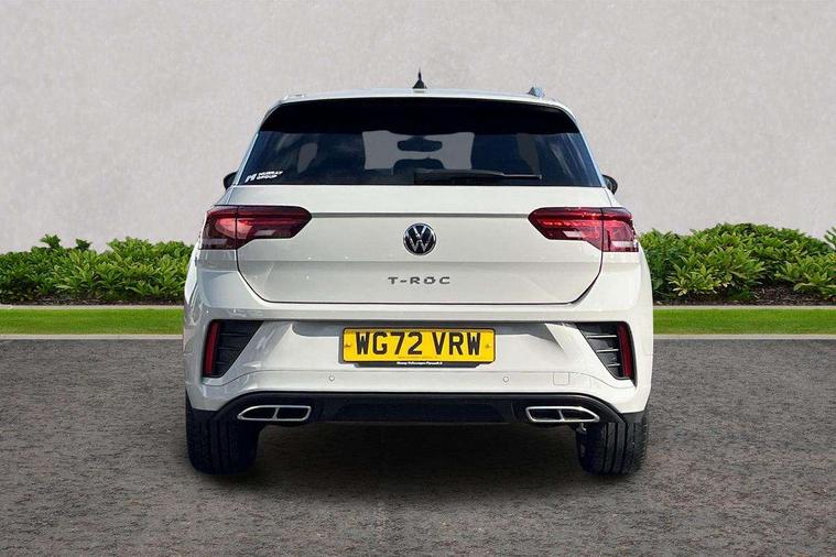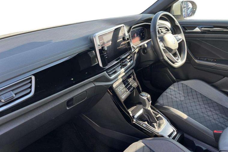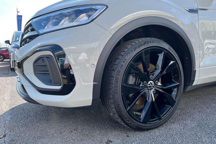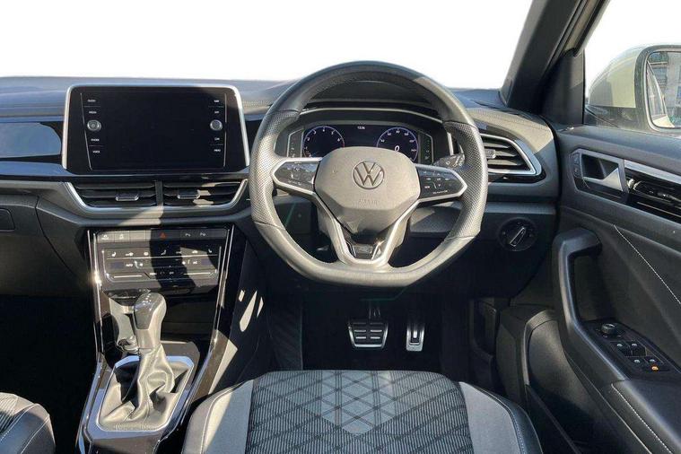 10.25" Digital cockpit pro, Bluetooth mobile phone interface, Driver alert system with fatigue detection, Driver tips and journey analysis, Emergency call service, Lane keeping system Lane Assist, Modified key software - reduce switch off time for key status change to Long no motion, Online services, Park assist including front and rear parking sensors, Service interval indicator, Tailgate/trunk lid release from outside, Think blue trainer driver tips and journey analysis, Warning sound and light for front seatbelts unfastened, Wireless app connect, Battery regeneration during braking, Start/stop function with battery regeneration, Diversity antenna for FM reception, Front and rear 6 speakers, Music playback - MP3, WMA and AAC files, Premium USB cable in choice of either Apple or Android smartphone compatibility, SD card slot, Simultaneous pairing of 2 compatible mobile devices, Title and cover art display, We Connect and We Connect Plus functionality, 3rd brake light, Auto dimming interior rear view mirror, Automatic hazard lights activation under emergency braking, Automatic headlight control with LED separate daytime running lights with coming/leaving home function, Extended roof spoiler, Exterior mirrors aspherical on driver side, convex on front passenger side, External USB type C socket and charging sockets, Front windscreen wiper with intermittent wipe and 4 position delay, Heated rear window, LED Plus headlamps, LED rear combination lamps, LED rear number plate lights, LED tail lamp rear comination lamps, Power windows with comfort operation and circuit breaker, R-Line design body coloured bumpers, Rain sensor, Rear exhaust tailpipe, Rear fog light on one side and reversing lights on both sides, Rear side wing doors, Rear wash/wipe with intermittent wipe setting, Remote electrically foldable door mirrors, puddle lights and reverse activated passenger's door mirror, 12V power socket in centre console, 3 rear head restraints, 3 seat bench in 2nd row, 4 load lashing points in luggage compartment, Air care climatronic air conditoning system with active combination filter and 2-zone temperature control, Black roof lining, Chrome plated radiator grille inserts, air vent surrounds and light switch surrounds, Door and side trim panel with leatherette insert, Drawer under drivers seat, Front + rear carpet mats, Front centre armrest, Front cupholders x 2, Front footwell illumination, Front reading light, Front scuff plates with R logo, Instrument lighting, white adjustable panel illumination, Interior ambient lighting and surround lighting, Interior light delay, Isofix child seat preparation, Leather gearshift handle, Load-through provision with cup holder when folded down ('Unsplit rear seat bench, split folding backrest, with centre armrest), Luggage compartment lighting, Single front passenger seat, Stainless steel pedals, Storage compartment in left and right luggage area, Storage compartment in rear doors, Storage compartments in driver and front passenger doors, Sunvisors with illuminated vanity mirrors, Variable boot floor, height adjustable and removable, Driver assistance pack without proactive passenger protection - T-Roc, 3 point height adj front seatbelts + pretensioners, 3 point seatbelts in outer rear with ECE label, ABS, Child locks on rear doors, Driver and front passenger airbag with front passenger airbag deactivation, Driver and front passenger safety-optimised head restraints, Drivers seatbelt reminder, Electronic parking brake, Electronic Stability Control (ESC) inc EDL (Electronic Differential Lock) and ASR (Traction Control), Front and rear passengers curtain airbag system including front side airbags, Front assist with city emergency braking and pedestrian monitoring, Front seat side impact airbags, Hill start assist, Predictive pedestrian protection, Rear disc brakes, Single tone horn, Tyre pressure loss indicator, Volkswagen roadside assistance, Alarm with interior protection, Anti-theft alarm system with interior monitoring, backup horn, and towing protection, Remote central locking with SAFELOCK, radio remote control with 2 remote control folding keys, Trims for alloy wheels,