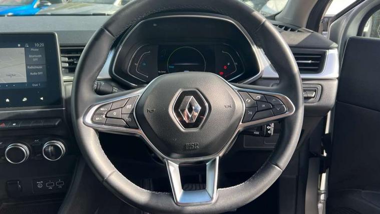 7" TFT Driver information display, Cruise control + speed limiter, eCall emergency call system, Eco mode, EV button to activate pure mode, Front and rear parking sensors with rear view camera, Gear change indicator, Lane departure warning system, Lane keep assist, Multisense with 3 driving modes + 8 ambient lighting colours, Renault automatic emergency assist, Traffic sign recognition with over speed prevention, Trip computer, Variable assistance power steering, EasyLink 7" touchscreen with navigation, bluetooth, DAB radio, USB ports, compatible with Apple carplay/Android auto, EasyLink multimedia system, scheduled charging, heating and air conditioning, Auto dimming rear view mirror, Automatic front wipers with rain sensors, Automatic headlights, Automatic high/low beam, Black side door protection with chrome effect, Body colour door handles, Body coloured bumpers, Body coloured door mirrors, C Shaped LED front and rear lighting signatures with 3D effect on the rear lights, Chrome around front air deflectors, on front wing deco element and window lining, Drivers one touch window with anti-pinch feature, Electric rear windows, Extra tinted glass in rear windows and tailgate, Front grille with chrome upper trim, Full LED headlights, Gloss black side door protection with chrome effect, Grey front and rear skid plate, LED daytime running lights, LED front fog lights, LED high level brake lights, LED rear fog light, Longitudinal roof bars, Rear side wing doors, Rear wing door, Rear wiper, Variable speed on front windscreen wipers, 12V Accessory socket, 3 rear headrests, 60/40 split and fixed base rear seat bench, Automatic climate control with one touch demist function, Centre console storage tray, Front head restraints, Glovebox, Heating system with pollen filter, Height adjustable driver's seat, Height adjustable passenger seat, Height/reach adjust steering wheel, ISOFIX child seat fixing points on rear outermost seats, LED front roof lights, Middle console with armrest and storage, Modular boot floor, Rear air vents, Single front passenger seat, Sliding rear bench, Synthetic leather steering wheel, Synthetic leather/cloth upholstery, 3 rear seatbelts, ABS+EBA, AEBS, B Brake Mode - One pedal driving with increased regenerative braking, Distance warning alert, Driver and front passenger, side, head and curtain airbags, Driver height adjustable seat belt, Electric parking brake with auto hold function, Electronic stability control, Front and rear no seatbelt warning sound, Front dash warning indicator in case of heavy braking, Front driver and passenger side airbag deactivation, Hill start assist, Rear door and window child locking function for rear door, Tyre pressure warning light, Anti drill door locks and locking fuel cap, Central door locking, Deadlocking system, Hands free keycard with push button and start/stop function, RAID (Renault Anti-Intruder Device) automatic door locking, Black soft touch dashboard, 18" Pasadena diamond cut alloy wheels with grey inserts,