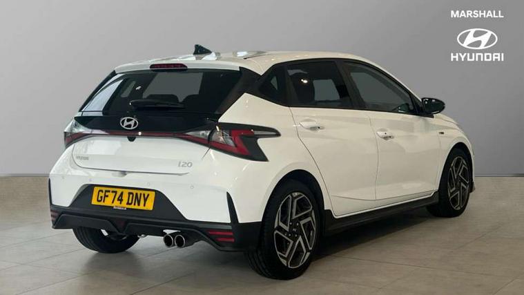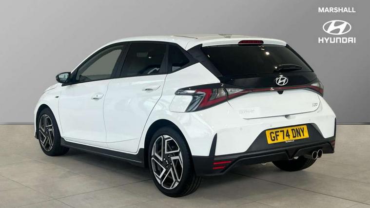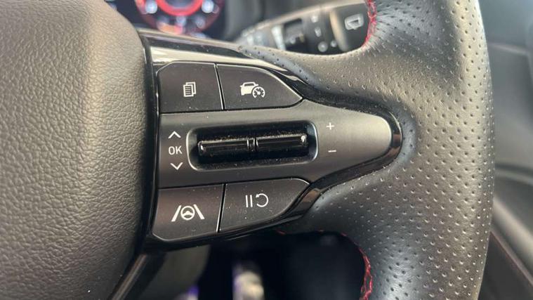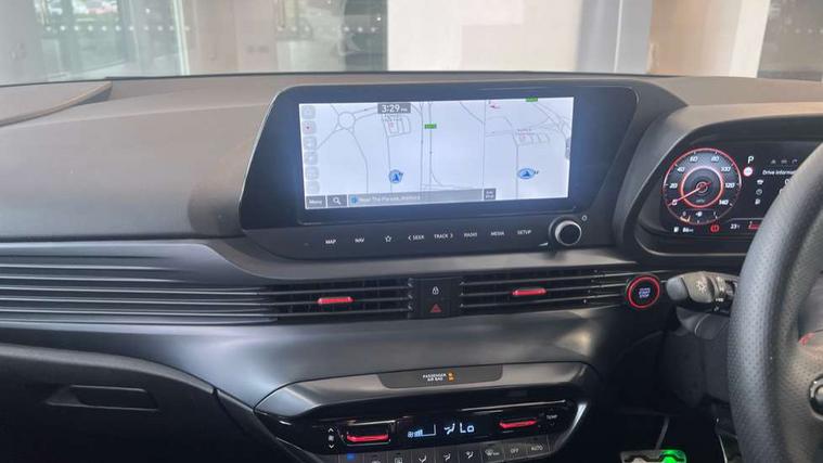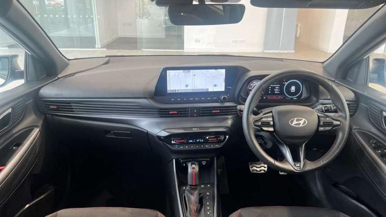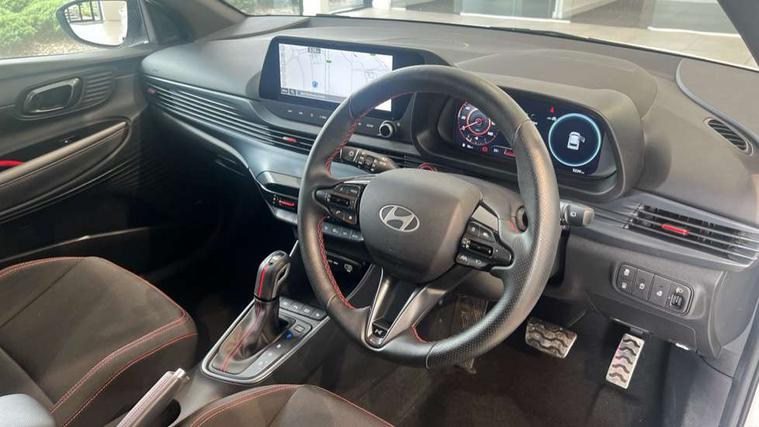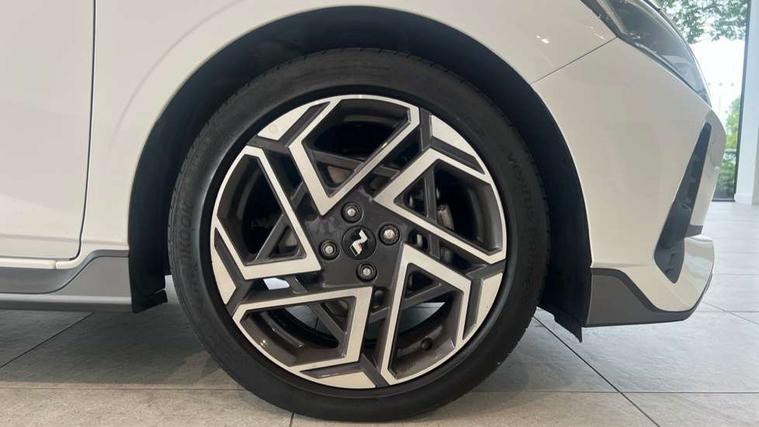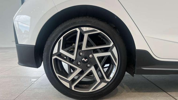 10.25" Touchscreen satellite navigation including mapcare and live services, 2nd Gen eCall, 8" Touchscreen DAB Radio with android auto and apple carplay, Apple car play/Android Auto, Driver's supervision instrument cluster with 10.25" LCD display, E-call, Forward collision assist with car, pedestrian and cycle detection, Front parking sensor, Intelligent speed assist, Lane follow assist, Lane keep assist, MAP OTA updates, PAS, Rear parking sensor, Rear view camera with dynamic guidelines, Wireless charging pad, Bose premium sound system, USB C and USB A ports in front, USB C Port in rear, Automatic defog system for front windscreen, Automatic dimming rear view mirror, Automatic headlights with dusk sensor, Automatic windscreen wipers, Body colour door handles, Electric front and rear windows, Front fog lights, Heated door mirrors with electric adjustment and power folding function, High beam assist, LED daytime running lights, LED Headlights, LED positioning lights, LED taillights, Privacy glass - Rear windows and tailgate, Rain sensor, Rear roof spoiler with integrated LED brake light, Rear side wing doors, Rear wiper, Repositioned flat metal hyundai emblem, Shark fin antenna, Windscreen with acoustic film, 3 seat bench in 2nd row, Adjustable head restraints, Air conditioning climate control, Automatic de-fog system for front windscreen, Cloth upholstery, Driver and passenger illuminated vanity mirrors with driver ticket holder, Floor mats, Front cup holder, Heated front seats, Heated steering wheel, Height adjustable driver's seat, Isofix, Leather wrapped steering wheel and gear knob, Luggage hooks, Multi colour ambient lighting, Rear Seats - Split Folding (60/40), Single front passenger seat, Sport metal pedals, Steering wheel remote controls, Tilt and telescopic steering wheel adjustment, 3x3 point rear seatbelts, Anti-lock brake system (ABS), Autonomous emergency braking, Child locks on rear doors, Driver and front passenger airbags, Rear seat alert, Side and Curtain airbags, Tyre pressure monitoring system, Immobiliser, Smart key with keyless entry and engine start/stop button, 17" N Line black alloy wheels, Tyre repair kit,