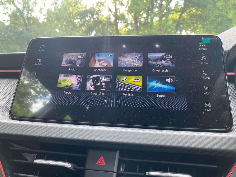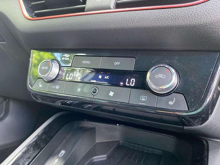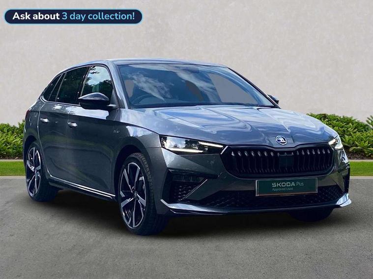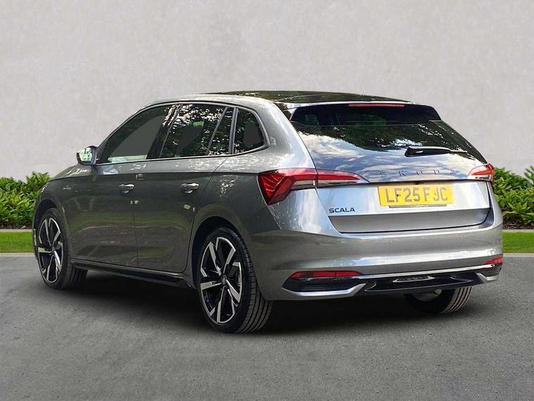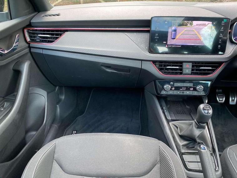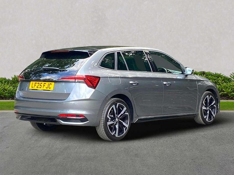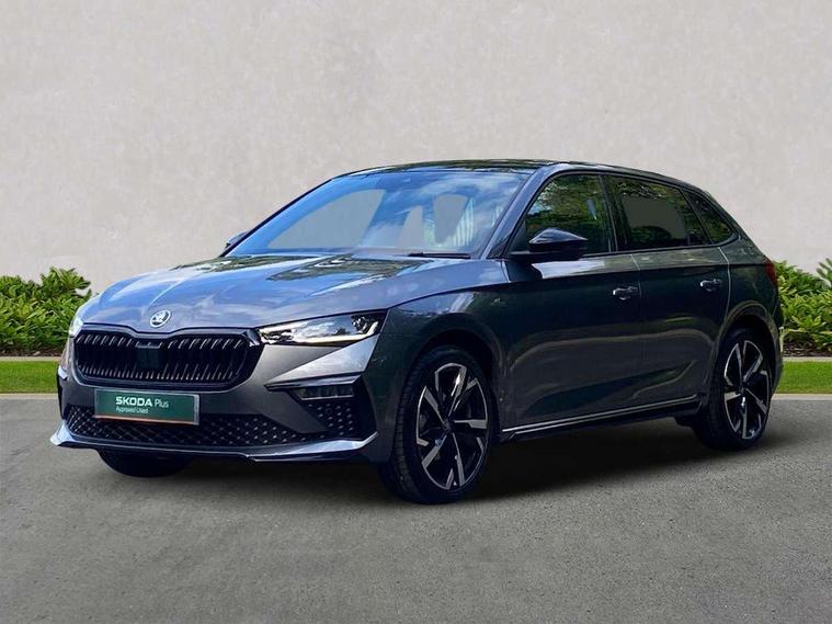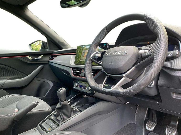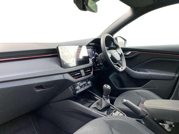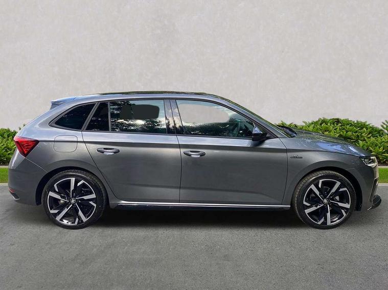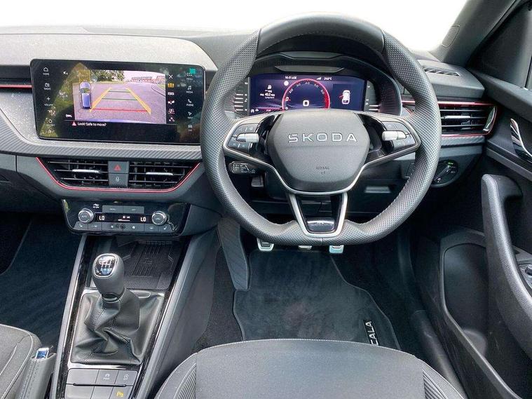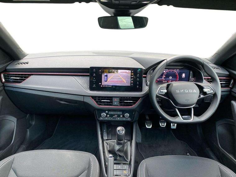 Advanced driver attention and drowsiness monitor, Bluetooth, e-Call (emergency call), Front assist system, PAS, Rear parking sensors, Rear view camera, Speed limiter, Tailgate, Traffic sign recognition, Virtual Cockpit - 10.25" digital display, Voice control system, Wireless smartlink, 4 USB C ports, 8 Speakers, 9.2" Skoda navigation display, DAB radio, Auto dimming rear view mirror, Automatic headlamp activation with Coming home and Leaving home feature, Automatic high/low beam, Automatic intermittent wipers, Black door mirrors, Black lettering on boot lid, Black radiator grille, Black rear diffuser, Black roof spoiler, Body colour bumpers, Body colour door handles, Chrome moulding around grille, Extended tailgate glass, Front and rear electric windows, Heated rear window, LED 3rd brake light, LED brake lights, LED daytime running lights, LED high beam, LED low beam, Light sensors, Monte carlo plaque, Panoramic glass roof, Privacy glass, Rear LED fog light, Rear side wing doors, Rear wiper, Tinted windows, Unique dark chrome design logo on alloy wheels, 12V socket in luggage compartment, 3 seat bench in 2nd row, Aluminium pedals, Ambient lighting in white/red, Black / White armrest stitching, Black ceiling, Black roof headlining, Cargo elements, Chrome inner door handles, Door inserts in art.leather carbon, Driver and passenger sun visors with vanity mirror, Dual zone climate control, Front and rear roof lights, Front centre armrest, Front head restraints, Height adjustable driver seat, Height adjustable passenger seat, Ice scraper, Illuminated glove compartment, Inner circulation control with pollen filter, ISOFIX for front passenger seat, Isofix preparation for back seats, Leather gearknob and handbrake lever, Luggage net under rear parcel shelf, Manual lumbar support for front seats, Monte Carlo cloth upholstery, Net package and top tether hooks in boot space, Pocket on the back of both front seats, incl. mobile phone pockets, Rear centre armrest, Red hotstamping, Single front passenger seat, Skoda lettering on steering wheel, Sport seats, Textile floor mats, Third rear headrest, Ticket holder, Top tether for front passenger seat, Umbrella in driver's door, Light and view plus pack - Scala, 3x3 point rear seatbelts, ABS, Child locks, Curtain airbags and front side airbags, Disc brakes, Driver and front passenger airbags, ESP, Hill hold control, Manual leather parking brake, One tone horn, Passenger airbag switch off function, Seatbelt reminder for driver and front passenger, Tyre pressure monitoring system, Anti theft alarm system with interior monitoring, backup horn and towing protection, Anti-theft wheel bolts, Remote central locking with 2 remote folding keys, SAFE function for remote central locking, Carbon effect decorative inserts, 18" Ursa black diamond cut alloy wheels,