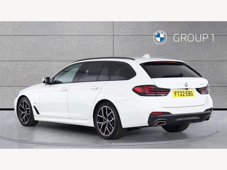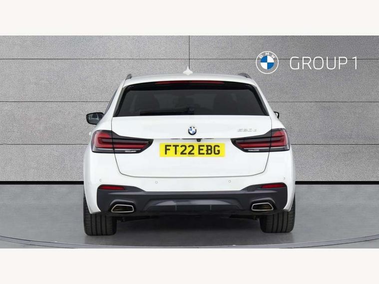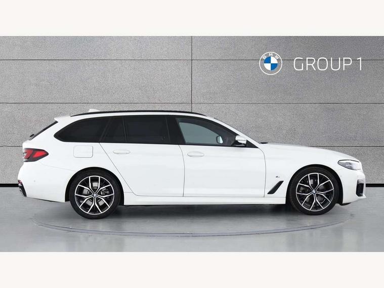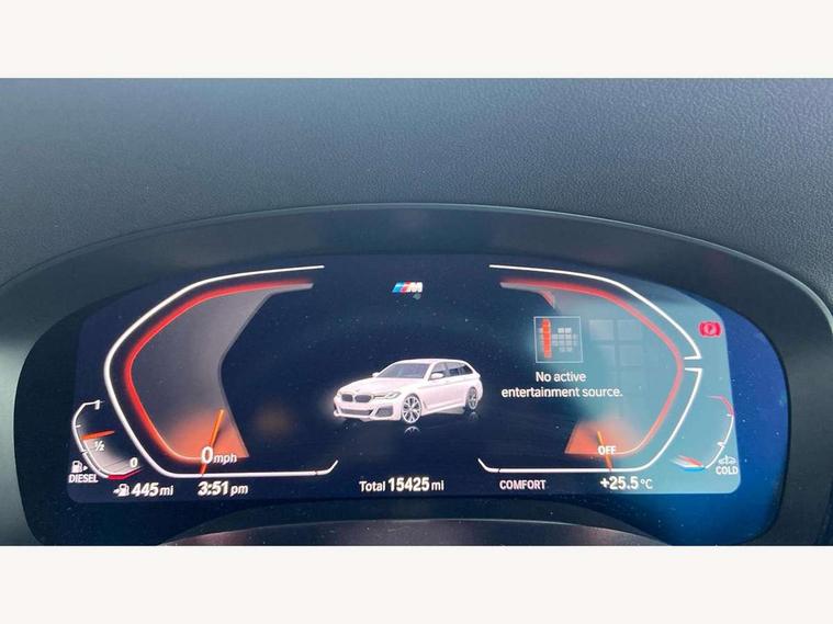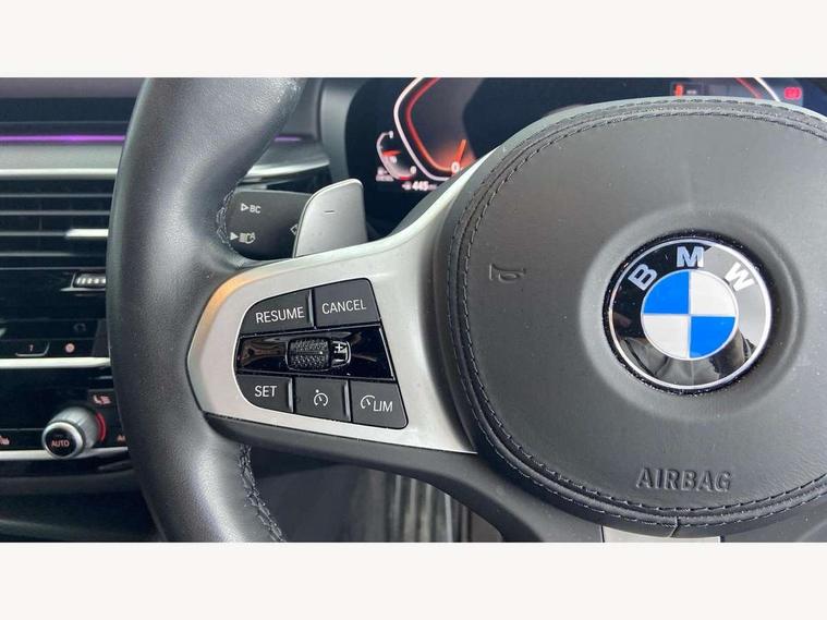 32GB hard disc drive (HDD) memory, Active Guard, Bluetooth connection, BMW ConnectedDrive online services, BMW Live Cockpit Professional sat nav system with 12.3" instrument display and high resolution control display, BMW Teleservices, Brake pad wear indicator, Cruise control with brake assist, Driving experience switch, eCall emergency call system, Electric boot lid - electrically opening/closing rear tailgate, Electric Power Steering (EPS) with Servotronic, iDrive controller with shortcut buttons, Intelligent emergency call, Multifunctional instrument panel, Oil sensor for level and grade, On board computer inc. average speed, fuel consumption, liquid crystal Info display, journey computer, outside temperature display, personal profile, On-board diagnosis - OBD, Powered by Operating System 7.0, Service interval indicator, Speed limiting function, Stop/start button, 48V Mild hybrid technology, Diesel particulate filter, Drive performance control with ECO PRO comfort + sport mode, Engine cover with twin turbo designation, M sport suspension, Steptronic sport transmission with gearshift paddle switches on steering wheel, DAB Digital radio, Favourite buttons, Acoustic glazing, All round anti-corrosion system, Automatic windscreen wipers and automatic headlight, Automatically dimming rear view mirror, BMW Individual high gloss shadow line includes exterior mirror frame, window frame surround, B pillar finish, air breather in high gloss black, Body colour door handles, Body coloured bumpers, Door handle illumination, Dynamic brake lights with LED technology, Electric front and rear windows with fingertip open/close + anti-trap facility and comfort closing function, Electrically adjustable and heated exterior mirrors includes integrated direction indicators and automatic parking function, Folding exterior side mirror with auto- dimming, Follow me home headlight function, Heated windscreen washer jets, High gloss black active air stream kidney grille, High gloss shadow line roof rails, Independent opening for tailgate window, LED daytime running lights, LED Headlights, LED third brake light, M designation on front side panels, left and right in chrome, M Sport exterior styling, Preparation for high beam assistant, Rear side wing doors, Rear wiper, Trapezoidal visible exhaust tailpipes, 12V power socket in front and rear, 3 seat bench in 2nd row, 40/20/40 split folding rear seats with additional mechanism in luggage compartment, Anthracite headlining, Armrest - front and rear integrated door trim, centre console includes storage compartment, rear centre includes 2 cupholders, Child seat ISOFIX attachment with rear outer seats includes top tether, Cup holders (2 front and 2 rear), Front and rear footwell lights, Front reading lights, Height and length adjustable steering column and activation via lateral lever on the steering column, Lockable glove compartment with light, M door sill finishers, M specific pedals, M specific velour floor mats, Multifunction controls for leather steering wheel, Rear headrests, Retractable luggage compartment dividing net, Single front passenger seat, Three spoke sport M leather steering wheel, Ambient lighting pack - 5 Series, Connected package professional - 5 Series, M Aerodynamic pack - 5 Series, Parking assistant pack - 5 Series, Airbags - driver/front passenger, rear and side, first and second row seats head airbags, front passenger seat airbag deactivation, Anti-lock braking system (ABS), Automatic Stability Control (ASC), Brake assist function, Brake energy regeneration, Cornering brake control (CBC), Crash sensor activating central locking release, hazard warning lights, fuel cut off and interior lighting, Deformation zones - front and rear with door reinforcements and bumpers up to 2.5 mph, DSC - Dynamic Stability Control, Dynamic brake control, Dynamic Traction Control - DTC, Electromechanical parking brake with automatic drive away release and auto hold function, Electronic brake force distribution, Engine drag torque control, Front and rear brake discs with interior ventilation, Front head restraints with anti-whiplash, Hill start assist, Mechanical child proof lock on rear doors, Passive protection for pedestrians, Rear door child safety locks, Side impact protection, Three point seat belts for all four seats, Two tone horn, Tyre pressure indicator, Warning triangle and first aid kit, Alarm system (Thatcham 1) with remote control and electronic engine immobiliser, Locking wheel bolts,