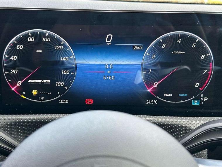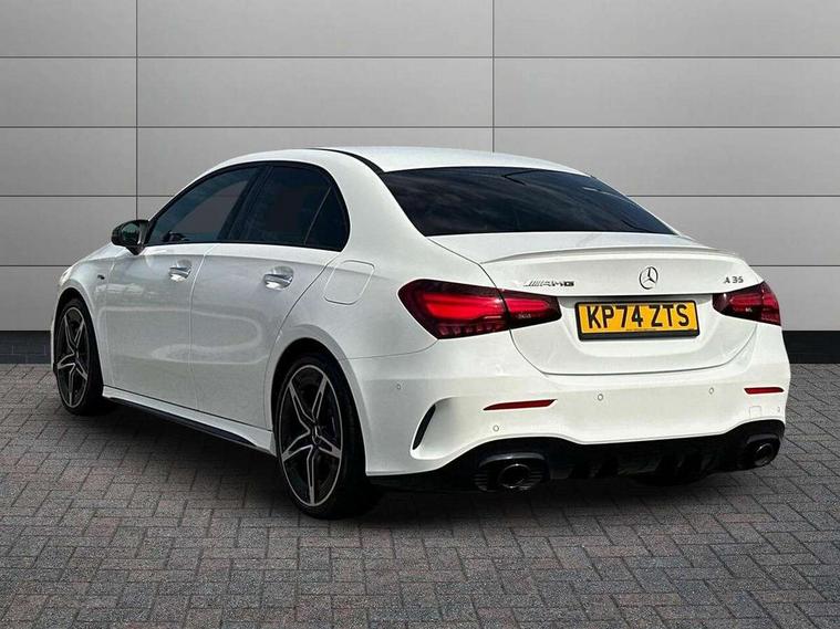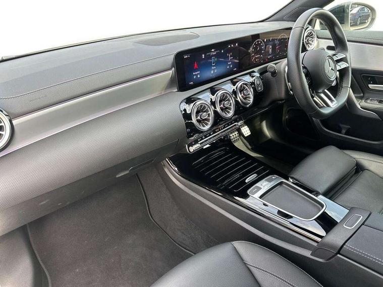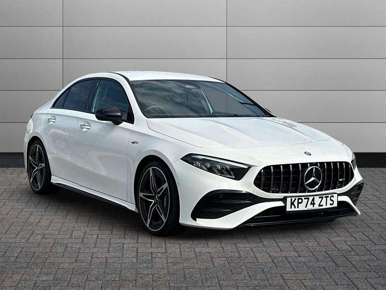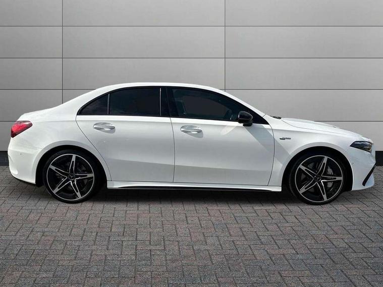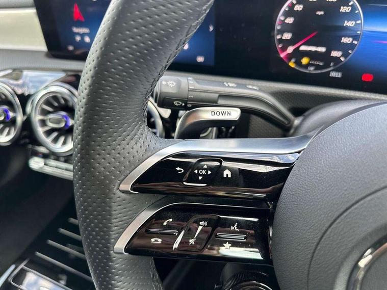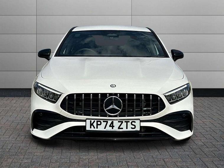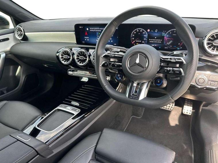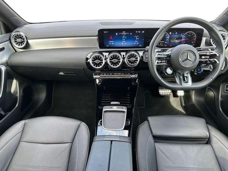 10.25 inch touchscreen central media display, 10.25" Digital instrument cluster display screen, Attention assist, Blind spot assist, Brake pad wear indicator warning light, Car wash mode, Cruise control + speed limiter, Direct steering, Direction indicators with lane change function, Dual bluetooth interfaces, DYNAMIC SELECT with driving programs (Slippery, Comfort, Sport, Sport+ and Individual), ECO start/stop function, Engine start/stop button, Fingerprint scanner, Fluid level warning indicator for fuel, oil, coolant and washer fluid, Fluorescent jacket for driver, Hard-disk navigation, Hey Mercedes Voice activation, Lamp failure indicator, Lane keeping system, MBUX augmented reality for navigation, Mercedes me connect including emergency call system, accident recovery, breakdown and maintenance management, Mercedes me remote services, Outside temperature gauge, Owners manual in English, Pre-installation of private car share, Preinstallation for Mercedes Benz link, Remote boot closing, Service indicator (ASSYST), Smartphone integration with Apple CarPlay and Android auto, Speed limit assist, Speed sensitive power steering, Trip computer in multifunction display with current consumption indicator, Wireless charging, AMG suspension, DAB Digital radio, MBUX multimedia system, Mercedes Benz advanced sound system (225 W) with 10 speakers, 1 central speaker, speakers on doors, a tweeter on door, one sub woofer + boost amplifier, 4 Electric Front and Rear windows, Adaptive brake lights, AMG body styling - AMG front apron with front splitter and AMG rear apron and visible exhaust tailpipe trim elements, AMG Front apron with flics as air deflector elements on the outer air intakes, AMG radiator grille with twin blade lamella and AMG Lettering, AMG Rear apron with specific diffuser look with four vertical fins and two round chrome plated tailpipe trim elements with a diameter of 90 mm, AMG spoiler lip on roof, Beltline strips in High gloss Black, Body colour bumpers, Body colour door handles with chrome inserts, Body colour side skirt, Electric adjustable and heated door mirrors with integrated LED side indicators, Front splitter and trim elements on the louvres in the outer air inlets, Front wings wheel arches with TURBO 4MATIC lettering, Headlamp assist automatic headlamp activation, Heat insulating dark tinted rear and rear side windows, Heated glass rear windscreen + timer control, LED High Performance headlamps including integral LED daytime running lamps and adaptive highbeam assist, LED tail lamp, Privacy glass, Radio aerial, Rain sensing windscreen wipers with two sensitivity settings, Rear boot, Rear fog lights, Rear side wing doors, Third brake light featuring LED technology, Wider wheel arches for AMG wheels, Window line trim strip in black, 3 seat bench in 2nd row, 40:20:40 split folding rear seats, Air conditioning - Two zone thermotronic luxury automatic climate control with display, AMG floor mats, AMG Performance steering wheel in nappa leather, Automatic child seat recognition sensor, Black air vents with surround in silver chrome, Black roof lining, Brushed stainless steel sports pedals with rubber studs, Electrically adjustable front memory seats including lumbar support and backrest inclination, Front centre armrest with stowage, Front seat backs luggage nets, Heated front seats, Height/reach adjustable steering column, Illuminated AMG front door sills with changeable cover, Interior lighting - 64 colour Ambient lighting, Interior mirror with reading lamps in black and frameless, Rear armrest with 2 cupholders, Seat occupancy sensor for front passenger seat, Silver coloured aluminium gear shift paddles on steering wheel, Single front passenger seat, Sports seats with adjustable head restraints, Stowage compartment in centre console with retractable cover, Sunvisors with illuminated vanity mirrors, Twin front cupholders, AMG night pack - A Class, Keyless go comfort pack - A Class, Light and sight package - A Class, Mirror package - A Class, Parking pack with 180 degree view - A Class, Seat comfort pack - A Class, USB pack plus - A Class, 3 rear 3 point seatbelts, ABS with Brake Assist, Active bonnet, Active brake assist includes forward collision warning system with autonomous braking, Adaptive brake assist with hold function and hill start assist, Black seatbelts, Bonnet with power domes, Childproof locks manually operated for rear doors and electrically operated for rear power windows, Crash responsive emergency lighting, Driver and passenger head and side airbags, Drivers knee airbag, Dual stage driver/passenger airbags, Electronic parking brake, ESP curve dynamic assist, ESP with ASR, Exit warning, Front and rear seatbelt reminder, Front brake calipers with AMG lettering, ISOFIX and top tether child seat fixing points in two outer rear seats, Tyre pressure monitoring system, Warning triangle and first aid kit, Window airbags, Alarm system/interior protection/immobiliser, Guard 360 degree vehicle protection, Remote central locking and crash sensor with emergency opening function, Light longitudinal grain aluminium trim, 19" AMG 5 twin spoke light alloy wheels aerodynamically optimised painted in matt black with high sheen finish, Summer tyres, Tirefit sealant kit,