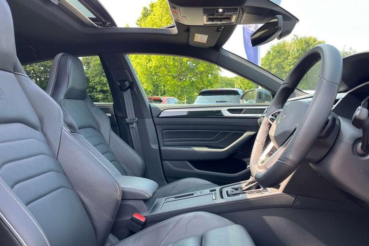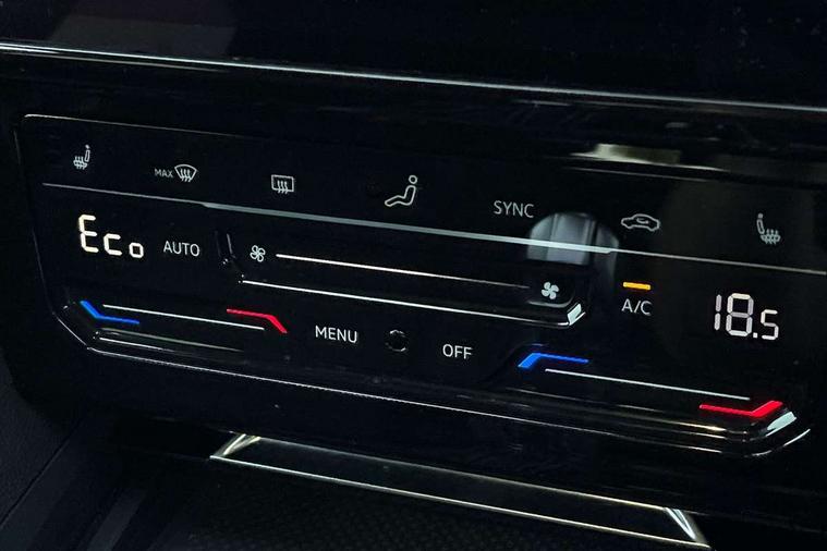 Adaptive cruise control (ACC) with speed limiter, front assist (reacting vehicles pedestrian and cyclists) and follow to stop, App connect including wireless Apple CarPlay, Camera for warning system, Digital cockpit with 10.25" high resolution TFT display screen with customisable menus and information, Driver alert system with fatigue detection, Driver profile selection including ECO function, Dynamic road sign display, eCall - Emergency call service for SOS calls to emergency response, Emergency assist, Hands free boot opening, Press and drive key, Progressive steering, Speedo and rev counter, electronic odometer, trip, service interval display and exterior temperature gauge, Tailgate, Travel assist - Lane keeping assist and traffic jam assist, Voice activation for telephone and navigation, 10 amp mode 2 charging cable, 16 amp mode 3 charging cable, Dynamic Chassis Control (DCC) - Adjustable dampers lowered by 15mm, Start/stop function with battery regeneration, 8 Speakers, Premium USB cable in choice of either Apple or Android smartphone compatibility, Auto dimming interior rear view mirror, Automatic headlights, Body colour door handles, Body colour side skirt, Body coloured top and matt black lower door mirrors with integrated indicators, Chrome plated radiator grille inserts and light switch surrounds, Chrome side window surrounds, Dynamic headlight range control, Electric folding door mirror, adjustable, heated with front passenger exterior mirror lowering function, External USB-C data socket with increased charging performance in front, Front and rear electric windows, Front and rear stainless steel door sill protection, Front windscreen washers and wipers with 4x interval delay, Heat insulating glass windscreen, Heat insulating side and rear windows, Heated rear windscreen, Heated windscreen washer jets, LED 3rd brake light, LED rear combination lamp with dynamic indicators, LED rear number plate lights, Panoramic sunroof with tilting and sliding including integrated roller blind, R Line design body coloured bumpers, Rain sensor, Rear boot spoiler, Rear fog lamp on one side and reversing lamp on both sides, Rear side wing doors, Rear tinted glass from B pillar backwards, approx 65% tinted, Rear wash/wipe, Tailpipes behind rear bumper, 12V socket in front centre console, 12V socket on rear of front centre armrest, 3 rear head restraints, 3 seat bench in 2nd row, 30 colours options interior ambient lighting, 60:40 split folding rear seat backrests with centre armrest, Air care climatronic 3 Zone electronic air conditioning with automatic air recirculation, Black roof lining, Chrome trim on upper and lower air vents extending across cockpit, Driver and front passenger sunvisor with vanity mirror, Front + rear carpet mats, Front cupholders x 2, Front footwell illumination, Front sports comfort seats, Glovebox, Heated front seats, Height/reach adjust steering wheel, Isofix child seat preparation easy fit for two outer rear seats, Luggage compartment lighting, Removable luggage compartment cover, Single front passenger seat, Split folding front seat backrest with front centre armrest, Stainless steel pedals, Two LED front reading light, 3 rear three point seatbelts, ABS+EBD+Brake assist, Child locks on rear doors, Driver airbag and front passenger airbags with deactivation switch including driver knee airbags, Electronic parking brake, Electronic stability control (ESC) and Electromechanical brake booster, Front disc brakes, Front side airbags with curtain airbags, Hill start assist, Pro active occupant protection to detect critical situations with elevated accident potential from the front, Rear disc brakes, Three point height adjust front seatbelts + pretensioners, Two tone horn, Tyre pressure loss indicator, Warning buzzer for seatbelts if unfastened, Warning triangle, Alarm with interior protection with deactivation via infotainment system, Electronic engine immobiliser, Keyless entry system including start/stop button on centre console, Remote central locking, Aluminium decorative inserts, Chrome trim on lower doors in front and rear, Leatherette insert on door and side trim panel in foam film, Piano black decorative inserts in centre console, 19" Montevideo alloy wheels with Airstop tyres + anti-theft wheel bolts, Tyre mobility kit,