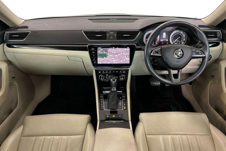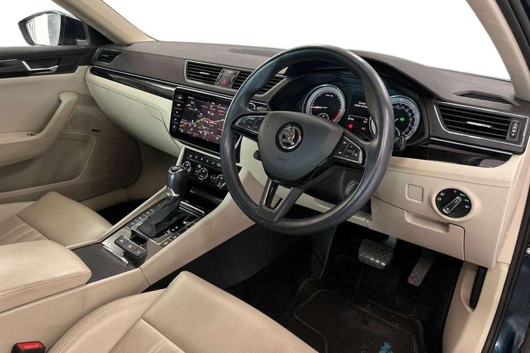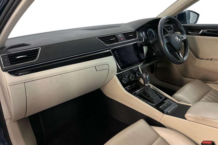 Adaptive cruise control, Bluetooth system, CareConnect and Emergency Call, Columbus colour 9.2" touch screen satellite 3D Map navi system with DAB, SmartLink+, CarPlay, Android Auto, USB, Aux in, SD Card, DVD drive and Wi-Fi, Driver fatigue sensor, Electrically operated boot door, Electromechanical power steering, External temperature gauge, Front assist including automatic braking function, Lane change assist and blind spot detection, Multifunction colour trip computer, Park assist inc parallel/bay space, front/rear parking sensors, Rear view parking camera, Remote fuel cap release, Service interval indicator, Speed warning indicator, Stop/start engine system and energy recovery, Travel assist with traffic sign recognition, Voice control system, Wi-Fi with LTE internet, Diesel particulate filter, Dynamic chassis control with performance mode select for dampers and steering, XDS+, Canton sound system - 610W 10 channel digital amp with 12 speakers, 200W subwoofer, noise cancellation, digital equaliser and 3D surround sound, In-car voice enhancement, Secondary USB port located in the front armrest storage box, Aero wiper + intermittent function, Auto dimming rear view mirror, Bi-Xenon headlights with AFS + integrated headlight washers + LED daytime running lights, Body colour bumpers, Body colour door mirrors and handles, Chrome plated radiator grille, Cornering front fog lights, Electrically adjustable/heated/folding door mirrors with puddle lights/Integrated indicators and memory function, Front and rear electric windows, Fuel filler cap, Heated windscreen, LED brake lights, Light assistant (coming/leaving home/tunnel light), Privacy glass, Rain sensor, Smart light assist, 12v power point in centre console, 12V power point in luggage area, 3 rear height adjustable headrests, Auxiliary heater, Boot net programme and cargo elements, Electrically adjustable front seats with lumbar support and auto dimming door mirrors + memory function, Front armrest with storage box, Heated front and rear seats, Height adjustable front and rear head restraints, Height/reach adjust steering wheel, Illuminated air conditioned glovebox, Illuminated luggage compartment, Interior lights with control switches, Isofix child seat fittings on outer rear seats, Leather gearknob and handbrake lever, Overhead glasses storage compartment, Perforated leather upholstery, Rear centre armrest with cupholders, Removable LED light in boot, Removable rear parcel shelf, Split folding rear seats, Textile floor mat set, Ticket holder, Tri zone climate control, Umbrella compartments in front doors with umbrellas, Ventilated front seats, Virtual pedal for boot opening, LED interior light pack - Superb, LED package plus - Superb, LED rear pack - superb, 3 point height adj front seatbelts + pretensioners, 3 rear 3 point seatbelts + pretensioners, 7 airbags - Front, front side, curtain, driver's knee airbag with front passenger deactivation switch, Door open warning, Driver and passenger seatbelts with warning light, Electronic parking brake, ESC including ABS, EBV, MSR, ASR, EDS, HBA, DSR, RBS, CBC, multi-collision brake (MKB) and Auto hold, Hill start assist, Rear door child safety locks, Tyre pressure monitor, Alarm with interior monitoring tilt sensor and back up horn, Electronic engine immobiliser, Keyless entry and start/stop, Remote central locking with SAFE system, Piano black inserts,