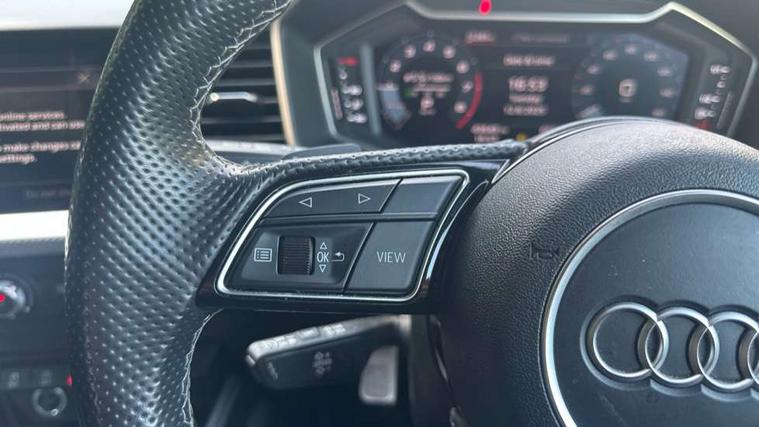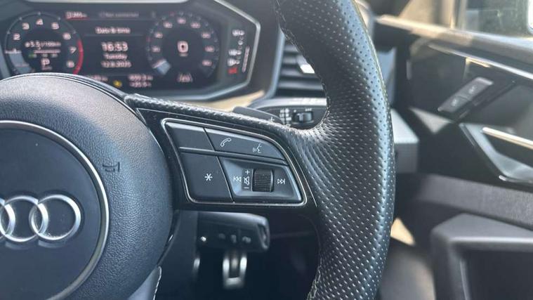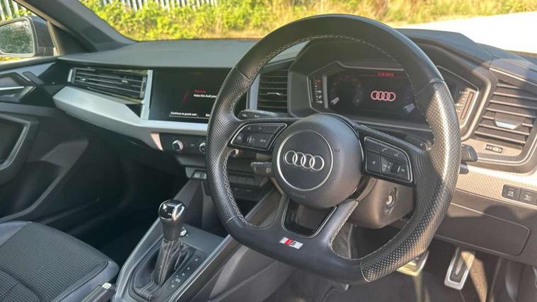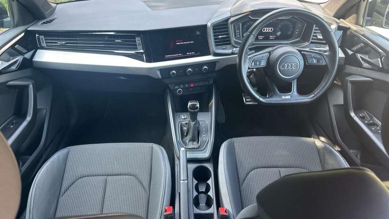 10.25" Digital instrument cluster display classis style instrument dials + speed, odometer, time, outside temperature, telephone menu + fuel level warning, Audi connect safety emergency and service including E-call, Audi drive select - power steering assistance + engine + gear shift 3 preset modes (auto, dynamic, efficiency and an Individual mode), Audi smartphone interface with connect compatible smartphone via USB directly MMI display + Nav, music, third party apps controlled via MMI controller, Automatic start/stop system, Bluetooth interface, Cruise control, Driver's information system, Electromechanical power steering, Emergency services call system, Lane departure warning system, Service interval indicator, Speed limiter, Voice control system, Washer fluid level indicator, Sports suspension, 1 x SDXC card reader, 2 x USB type C connection points, DAB Digital radio, MMI radio plus with 8.8" colour MMI display screen and MMI touch, Auto dimming rear view mirror, Black door mirrors, Black side skirts, Body coloured bumpers, Contrast roof - Mythos black, Door sill trims with aluminium inlays and logo, Electric front and rear windows, Electrically adjustable, heated, folding door mirrors with integrated LED side indicator, Front side air inlets in grained matt black and C frame in titanium black, Front wing badges, Heat insulating glass windscreen and side windows, Heated rear windscreen, High level LED brake light, LED headlights with LED rear lights + dynamic rear indicators + headlight adjustment and high beam, turning light + LED daytime running lights, Radiator protective grille frame in matt aluminium silver, Rain and light sensors, Rear diffuser strip in matt titanium black, Rear fog lights, Rear side wing doors, Rear wing door, Rear wiper, Side front spoiler lips in grained matt black, 12V socket in centre console with two cup holders, 3 rear seats with headrests, 3 seat bench in 2nd row, 3 spoke flat bottomed multi-function plus leather steering wheel with S badging, grips in preforated leather, contrast stitching and paddle shift, 40:60 Split folding rear seat or folded fully, Black cloth headlining, Driver and passenger seat with manual height adjust with forward and backwards adjustment, Front and rear black floor mats with contrast stitching in fine silver, Front head restraints, Front passenger seat, Height and reach adjustable steering wheel, ISOFIX child seat mounting for front passenger and outer rear seats including top tether attachment point of outer rear seats, Leather gear knob with aluminium trim, Luggage compartment light with front and rear reading lights, Manually adjustable lumbar support in front seats, Stainless steel pedals, Black styling pack - A1 Sportback Black Edition, LED interior lighting pack - A1, Luggage compartment pack - A1, 3x3 point rear seatbelts, Audi pre-sense front with pedestrain and cyclist recognition, Brake assist function, Driver and front passenger airbag with front side and head airbags, Electronic Stability Control including ABS, EBD, ASR and EDL, Front passenger airbag deactivation switch, Hill hold assist, Manual rear child locks, Seatbelt height adjustment for front seats, Seatbelt monitoring, Tyre pressure warning light, Warning triangle and first aid kit, Anti theft alarm, Anti theft wheel bolts and loose wheel warning, Immobiliser, Remote central locking with 2 foldaway keys, Aluminium trim for control switches, air vents and digital instrument cluster, Silver grey inlays polygon structure in diamond paint finish, Structured grey accent areas including air vents, door handle recesses and centre console in quartz paint finish, 18" 7 spoke rotor design alloy wheels in gloss anthracite black, diamond cut finish,