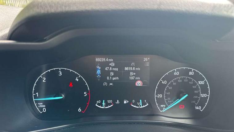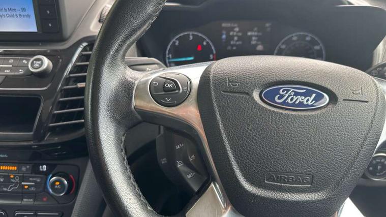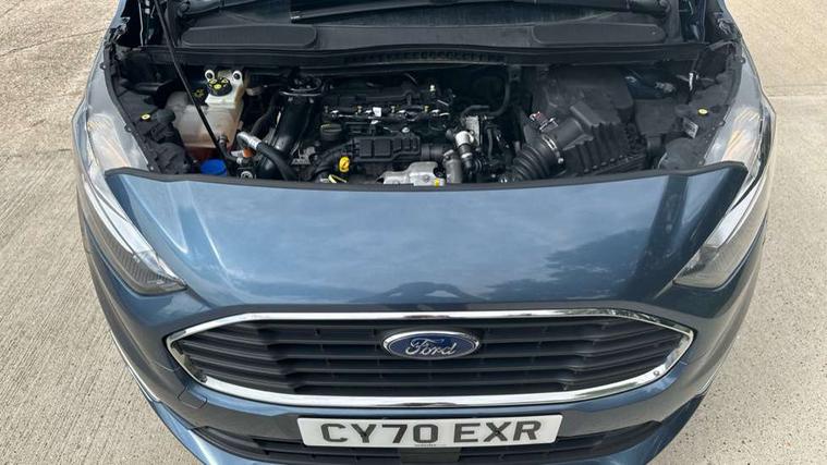Auto start and stop system, Camera enhanced pre-collision assist with pedestrian recognition, Easy fuel capless refuelling system, Eco select function, FordPass connect, Lane keep assist, PAS, Trip computer, Diesel particulate filter, Heavy duty battery, Leather steering wheel mounted radio controls, Active shutter grille, Adaptive cornering lamps includes fog lamp, Auto dimming rear view mirror, Auto headlamps and rain sensitive wipers, Body colour door handles, Body colour side mouldings, Body coloured front bumper, Dual sliding side load doors, Integral roof rails, Power folding and heated door mirrors, Power front and rear windows with global opening/closing, Privacy glass, Quickclear heated front screen, Rear wiper, 2nd row centre armrest, 4 way manually adjustable passenger seat, 8 Way driver seat with fore/aft, recline, height and lumbar adjustment, Driver's armrest, Dual zone automatic air conditioning, Front carpet mats, Front head restraints, Leather gearknob, Ligne fabric upholstery, Map pocket on front seat backs, Pollen filter, Reach + rake adjustable steering column, Rear head restraints, Second row fold flat/drive seats, Seat pack 27 - Titanium, 3 point seatbelts on all seats, Driver, passenger and 2nd row rear seat belt reminder, ESC with ABS, Front airbag restraint and passenger airbag restraint, Front and rear curtain airbags, Front side airbags, 2nd remote key, Immobiliser, Keyless Start, Remote central double locking, Thatcham Cat.1 alarm,