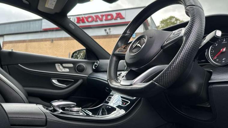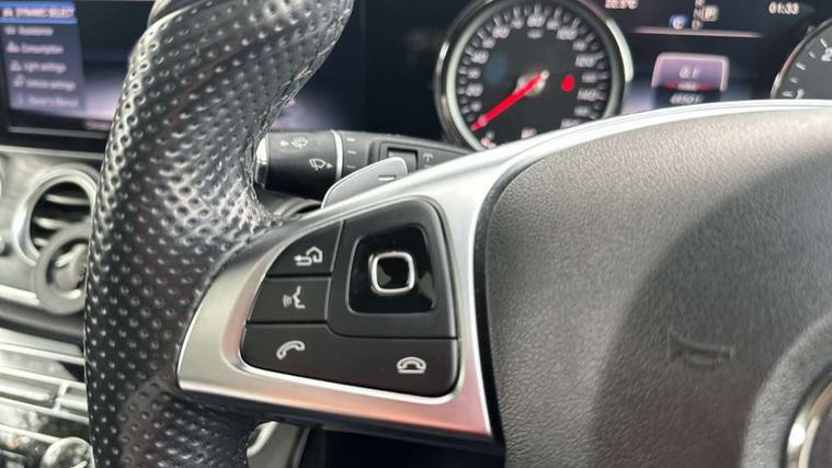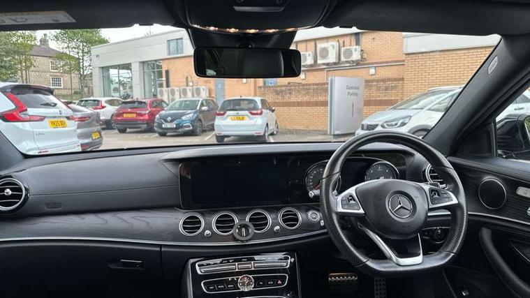 Active park assist with parktronic system, Analogue clock, Attention assist, Bluetooth interface for hands free telephone, Boot release from drivers seat, Brake wear warning light, DYNAMIC SELECT with a choice of driving modes (ECO, Comfort, Sport, Sport+ and Individual), Easy-pack tailgate - Powered opening/closing automatically, Multi function trip computer, Park assist pilot with front and rear park assist, Remote boot release, Service indicator (ASSYST), Speed sensitive power steering, Diesel particulate filter, DAB Digital radio, Media interface, Steering wheel mounted audio controls, USB/aux input socket, Adaptive brake lights, Aerial integrated in rear window, AMG bodystyling, Body colour bumpers, Body colour door handles, Chrome roof rails, Electrically adjustable and heated door mirrors, Polished aluminium upper window surround, Rain sensor windscreen wipers, 3 spoke AMG steering wheel in Nappa leather, 40:20:40 split folding rear bench seat, Ambient lighting, AMG floormats, Artico man-made leather upper dash trim, Auto Mercedes-Benz child seat recognition sensor, Black roof lining, Chrome door pins, Folding shopping box, Front and rear door pockets, Front centre armrest with storage compartment, Front door sills with Mercedes Benz lettering, Heated front seats, Height/reach adjust steering wheel, Interior rear light/integral reading lights, Isofix rear child seat fastenings, Lockable/illuminated air conditioned glovebox, Multi function steering wheel, Sports pedals with stainless steel surfaces and rubber studs, Storage compartment with 12V socket in centre console, Sunvisors with illuminated vanity mirrors, Interior lighting pack - E Class, Keyless Go comfort pack - E Class, Memory pack - E Class, Mirror pack - E Class, 3x3 point rear seatbelts, Active bonnet, Active brake assist, Childproof rear door locks, Driver and passenger side/thorax airbags, Driver/front passenger airbag, Drivers knee airbag, Electronic parking brake, Hill hold assist, Hill start assist, Pre-Safe anticipatory safety system, Seat occupancy sensor, Seatbelt warning, Tyre pressure monitoring system, Warning triangle and first aid kit, Window airbags, Alarm system/interior protection/immobiliser, Chrome surround electric key, High gloss black centre console, Run flat tyres,