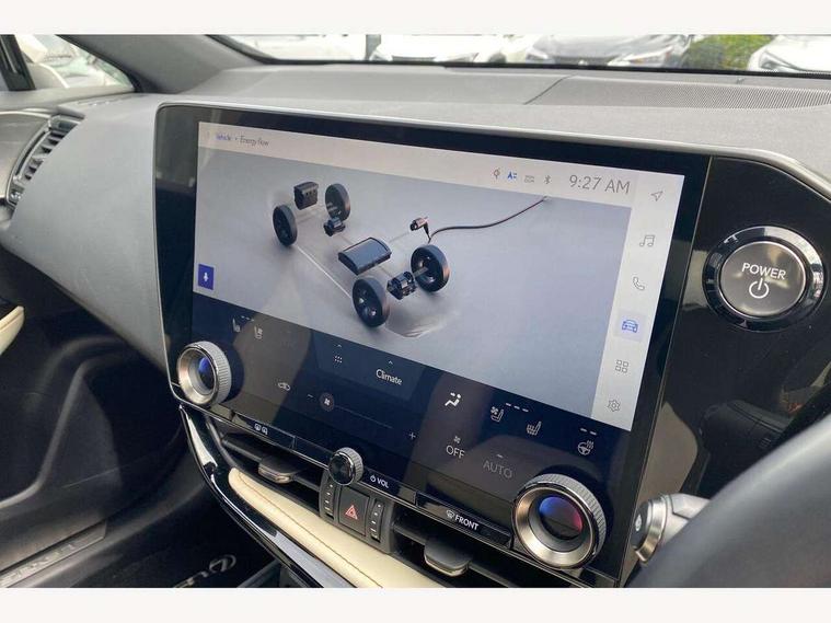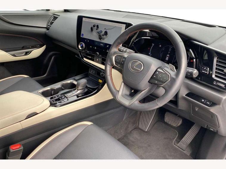 360 degree panoramic view monitor, 4 driving modes EV/Eco/Normal/Sport, 7" display in instrument binnacle, Blind spot monitoring with rear cross traffic alert, Bluetooth telephone connectivity, eCall emergency system, Electric speed sensitive power steering, Extended lexus safety+ system includes front cross traffic alert and lane change assist, Fully automated parking, Head up Display, Intelligent parking sensors - 4 front and 4 rear, Lane change flasher function, Lexus link connect - Cloud based navigation, cloud based voice assistant, always online, 14" HD touchscreen, embedded nav and faster CPU, Push button starter, Reversing camera with back guidelines, Service interval indicator, Tazuna cockpit with 7" improved meters display, 10" HUD and capacitive touch steering wheel switches, Wireless Apple CarPlay and wired Android Auto, Wireless Smartphone charger, 6.6 kW onboard charger, All Wheel Drive (AWD), Hybrid automatic transmission, Vehicle Dynamics Integrated Management (VDIM), Vehicle Stability Control (VSC), 10 speakers, 4 USB ports - 2 front, one USB C, 2 rear USB C, DAB Digital radio, 4 eye LED headlight with adaptive high beam, Automatic headlights, Digital rear view mirror, Double hidden exhaust pipes, Electric sunroof, Front and rear one touch power windows, with anti-jam protection, Headlight cleaners, Heated, auto-folding, auto-dimming outside mirrors with reverse tilt function and turn indicators, Illuminated door handles with puddle light, LED brake lights and rear lights with emergency brake signal, LED cornering lights, LED daytime running lights, LED front fog lights, LED Indicators, Power back door with kick sensor, Privacy glass, rear doors and tailgate, Rain sensor windscreen wipers, Rear side wing doors, Rear wiper, 12V accessory port centre console and luggage compartment, 2 cupholders in front centre console, 2 x fixed shopping bag hooks in boot, 2 x sun visors with vanity mirror and lamp, 3 seat bench in 2nd row, 4 way electrical lumbar adjustment for driver, 4 x tie down hooks in the boot, 60/40 split folding rear seat, 8 way driver/passenger electrically adjustable front seats, Adjustable rear seat backrest, Card holder installed in driver and passengers sun visors, Centre armrest with storage box, Door courtesy lights, Driver seat memory function, Dual zone climate control air conditioning system with humidity sensor, Front and rear head restraints, Front and rear textile carpet mats, Front passenger seat, Heated and ventilated front seats, Heated rear seats, Heated steering wheel, Leather gear lever, LED ambient lighting, LED interior illumination, Power adjustable leather steering wheel with paddle shifts, Rear centre armrest with 2 cupholders, Smooth leather upholstery, Whiplash Injury Lessening (WIL) feature (active headrest) for seats, 2 x Isofix child rear seat restraints, 3 point ELR front seatbelts with pretensioners, 3x3 point rear seat belts, ABS, Adjustable seat belt anchor points, Driver and front passenger 2 stage airbag, Driver/front passenger side airbags, Drivers knee airbag, E-Latch with safe exit assist, EBD + Brake Assist, ECB (Electronically Controlled Brake System), Electronic parking brake, Front and rear curtain shield airbags, Front center airbag, Front passenger seat cushion airbag, Hill assist control, Lexus safety system - dynamic radar cruise control, pre collision system day and night, lane tracing assist, road sign, OTA, Manual rear child locks, Passenger airbag cut-off device, Traction control, Tyre pressure warning, 2 x remote key fobs, Anti-theft system with alarm, intrusion sensor, glass breakage sensor, tilt sensor and engine immobiliser, Locking wheel nuts, Smart card key, Smart keyless entry, Speed sensitive auto door locking, Two motion door lock with double lock, VIN Window etching, Sumi blackwood inlay,