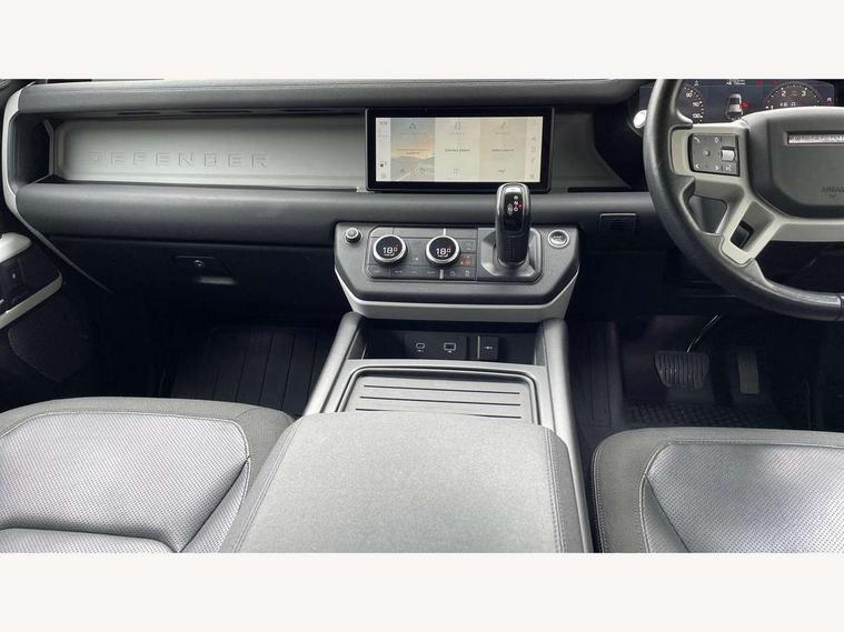 10" touch screen, 360 degree parking aid, 3D Surround Camera with 360 View, 180 Rear View, Front Traffic Detection, Forward Vehicle Guidance, Tow Hitch Assist and clear sight Ground View, Android Auto, Apple CarPlay, Blind spot assist, Bluetooth system, Clear exit monitor, Click and go integrated base unit, Connected navigation pro, Driver condition monitor, Interactive driver display, Lane keep assist, PAS, Pivi Pro connected navigation system with upgraded Infotainment, Rear traffic monitor, Traffic sign recognition with adaptive speed limiter, Trip computer, Wade Sensing, Adaptive dynamics, Electronic air suspension, DAB Radio (Digital Audio Broadcasting), Meridian 400w sound audio system with 11 speakers and subwoofer, Auto high beam assist, Automatic headlight levelling, Automatic headlights, ClearSight interior rear view mirror, Front fog lights, Heated windscreen, LED tail lights, Power fold, auto-dimming, heated door mirrors with memory and approach lights, Premium LED headlights with signature DRL, Puddle lights, Rain sensing windscreen wipers, SE badge, Signature graphic (with interior storage), Standard treadplates, Carpet mats, Electric reach + rake adjustable steering column, Front passenger isofix child seat attachment, Light oyster morzine headlining, Loadspace cover, Multifunction steering wheel, Rear headrests, Rear ISOFIX, Sunvisors with illuminated vanity mirrors, Twin front cupholders with cover, Online pack with data plan - Defender, 5 x 3 point seatbelts, ABS, Driver and passenger airbags, Emergency braking, ESP + traction control, TPMS (Tyre pressure monitoring system), Alarm, Immobiliser, Intrusion sensor, Keyless entry and go, Locking wheel nuts, Remote locking,