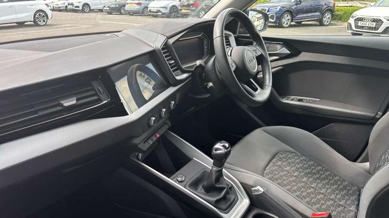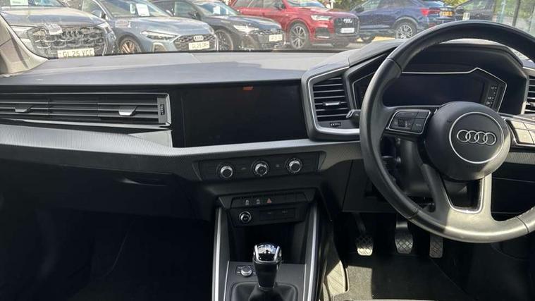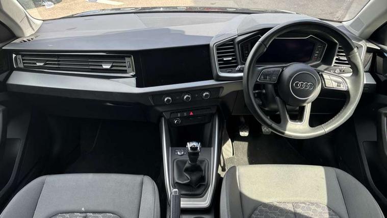 10.25" Digital instrument cluster display classis style instrument dials + speed, odometer, time, outside temperature, telephone menu + fuel level warning, Audi smartphone interface with connect compatible smartphone via USB directly MMI display + Nav, music, third party apps controlled via MMI controller, Automatic start/stop system, Bluetooth interface, Cruise control, Driver's information system, Electromechanical power steering, Emergency e-call, Lane departure warning system, Rear parking sensor, Service interval indicator, Speed limiter, Voice control system, Washer fluid level indicator, Dynamic suspension, 2 x USB type C connection points, 6 passive loudspeakers, DAB Digital radio, MMI radio plus with 10.1" colour MMI display screen and MMI touch, Auto dimming rear view mirror, Body coloured bumpers, Body coloured door mirrors, Electric front and rear windows, Electrically adjustable, heated, folding door mirrors with integrated LED side indicator, Front side air inlets in grained matt black and C frame in anthracite black, Heat insulating glass windscreen and side windows, Heated rear windscreen, High level LED brake light, LED headlights with LED rear lights + dynamic rear indicators + headlight adjustment and high beam, turning light + LED daytime running lights, Radiator grille and rear diffuser in matt anthracite black, Radiator protective grille frame in matt aluminium silver, Rain and light sensors, Rear fog lights, Rear side wing doors, Rear wiper, Side front spoiler lips in grained matt black, 12V socket in centre console with two cup holders, 3 rear seats with headrests, 3 seat bench in 2nd row, 3 spoke leather multifunction plus steering wheel, 40:60 Split folding rear seat or folded fully, Black front and rear floor mats, Door sill trims with aluminium inlay, Driver and passenger seat with manual height adjust with forward and backwards adjustment, Front head restraints, Front passenger seat, Grey cloth headlining, Height and reach adjustable steering wheel, ISOFIX child seat mounting for front passenger and outer rear seats including top tether attachment point of outer rear seats, Leather gear knob with aluminium trim, Leather handbrake grip, Luggage compartment light with front and rear reading lights, Manual air conditioning, Manually adjustable lumbar support in front seats, Novum cloth upholstery with front sport seats, Luggage compartment pack - A1, 3x3 point rear seatbelts, Audi pre-sense front with pedestrain and cyclist recognition, Brake assist function, Driver and front passenger airbag with front side and head airbags, Electronic Stability Control including ABS, EBD, ASR and EDL, Front passenger airbag deactivation switch, Hill hold assist, Manual rear child locks, Seatbelt height adjustment for front seats, Seatbelt monitoring, Tyre pressure warning light, Warning triangle and first aid kit, Anti theft alarm, Anti theft wheel bolts and loose wheel warning, Immobiliser, Remote central locking with 2 foldaway keys, Aluminium trim for control switches, air vents and digital instrument cluster, Black dashboard, Silver grey accent areas including air vents, door handle recesses and centre console in diamond paint finish, Slate grey inlays polygon structure in fine paint finish,