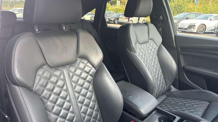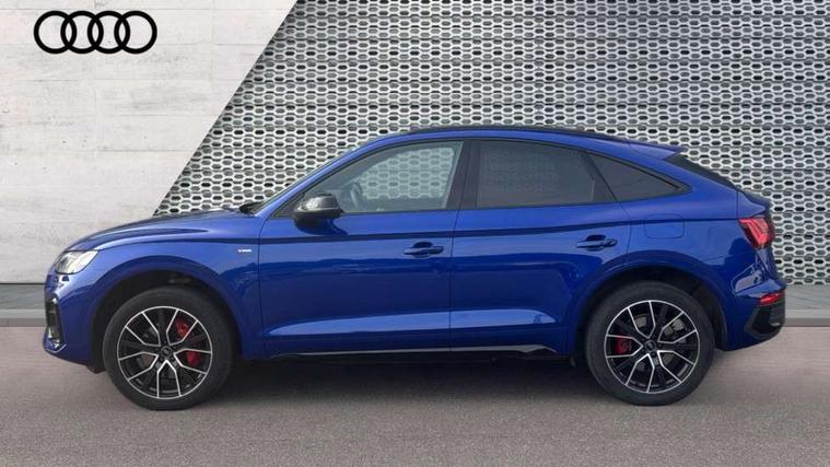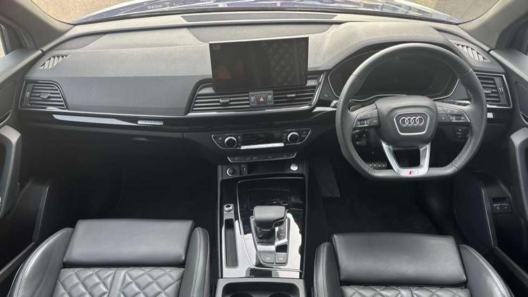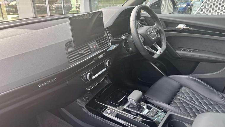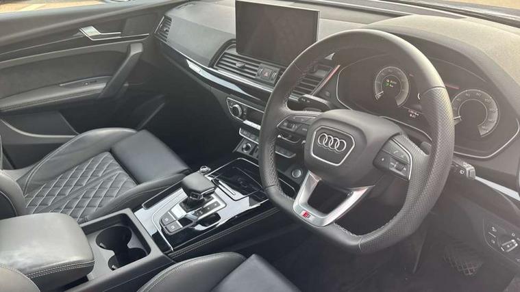 Acoustic front and rear parking sensor, Audi connect safety and service (e-call), Audi connect with Amazon Alexa Integration, Audi drive select, Audi virtual cockpit with 12.3" screen with specific display, Audi wireless smartphone interface, Automatic start-stop system with coasting functionality and efficiency programme, Bluetooth interface, Electro - mechanical power assisted steering, MMI navigation plus with 10.1" touch screen, Power tailgate, Reversing camera, Service interval indicator, Voice control system with Audi hotword activation "Hey Audi", 3 pin 10 amp domestic charging cable, 7.4 kW onboard charger, Dynamic suspension, Industrial connector CEE 32A, 230V, Quattro on demand, Type 2 mode 3 22kW 32 amp charging cable, Type 2 socket for AC charging, 2 x USB charging port with aux input socket, 8 loudspeakers, DAB Digital radio, Acoustic windscreen, Audi matrix LED headlights with dynamic front and rear indicators, Auto dimming door mirrors, Auto dimming frameless rear view mirror, Automatic headlight adjustment, Automatic headlights and windscreen wipers, Black roof rails, Body colour bumpers, Body colour underbody protection, Chrome plated exhaust trims, Daytime running lights, Door sills in Selenite silver, Electric adjustable/heated/folding door mirrors, Front air inlet surrounds in anthracite black, Front and rear electric windows, Headlight washers, High gloss black B pillar trims and triangular rear door trim, High level LED brake light, Rear chrome trim strip below lights, Rear privacy glass and rear side windows, Rear side wing doors, Rear spoiler, Rear wiper, Roof bars, 3 rear headrests, 3 seater rear seat bench, 4 way electric lumbar support for driver and front passenger, Black cloth headlining, Comfort front centre armrest, Contrast stitching on seats, steering wheel and gear lever gaiter, Deluxe 3 zone electronic climate control, Electrically adjustable front seats, Fine Nappa leather upholstery with diamond pattern contrast stitching + front sport seats with S embossed logo, Front/rear floor mats, Gear lever in black leather, Heated front seats, Height adjustable front head restraints, Height/reach adjustable steering column, Illuminated door sill trims with S logo, Rear seat bench plus-adjust for forwards/backwards position/backrest angle, cupholders in the armrest, load through hatch and remote backrest release, Single front passenger seat, Sunvisors with vanity mirrors, Trunk roller cover, Black styling package - Q5 Edition 1, Extended interior upholstery pack - Q5, Extended LED Interior multi coloured Lighting Pack - Q5, 3 point seatbelts on all seats, 6 airbags - Driver, front passenger, curtain and side airbags, Electrically operated child locks on rear doors, Electromechanical parking brake, Electronic stabilisation control including ABS, ASR and EDL, First aid kit with warning triangle and vests, Front and rear brake calipers painted in red, Front passenger airbag deactivation, Hill descent control, Hill hold assist, ISOFIX child seat mounting for front passenger seat and ISOFIX child seat mounting with Top Tether for outer rear seats, Multi collision brake assist, Pop-up bonnet for pedestrian protection, Pre sense city, Seat belt force limiter, Seatbelt monitoring, Tyre pressure warning, Anti theft alarm, Anti-theft wheel bolts, Keyless Go access/ignition system, Remote central locking, Air vents inserts and centre console in gloss black, Piano black finish inlay, Tool kit, Tyre repair kit,