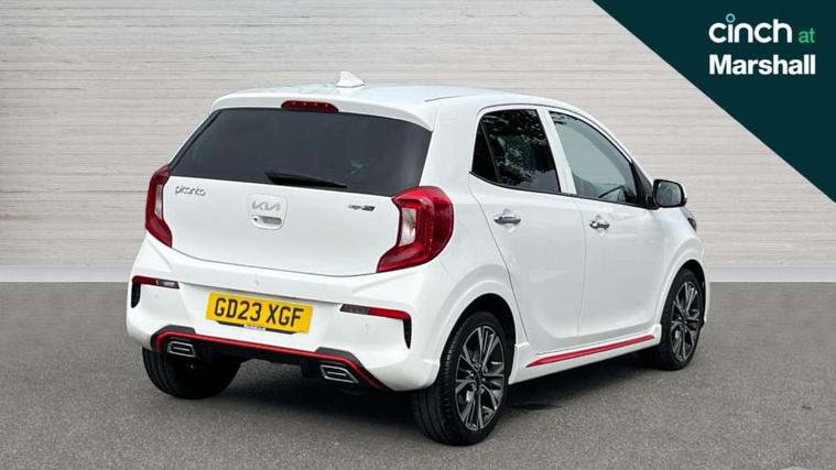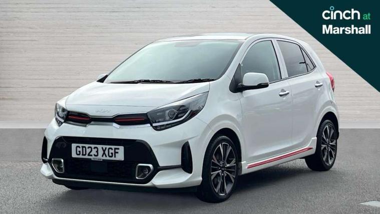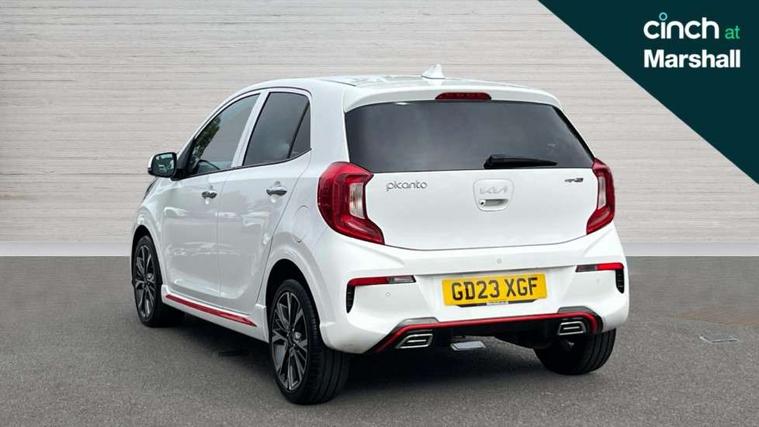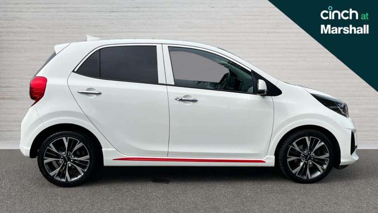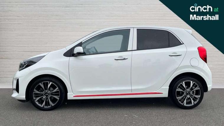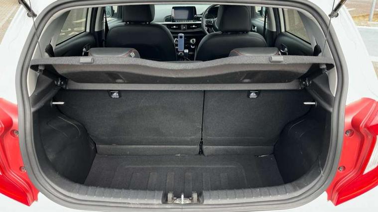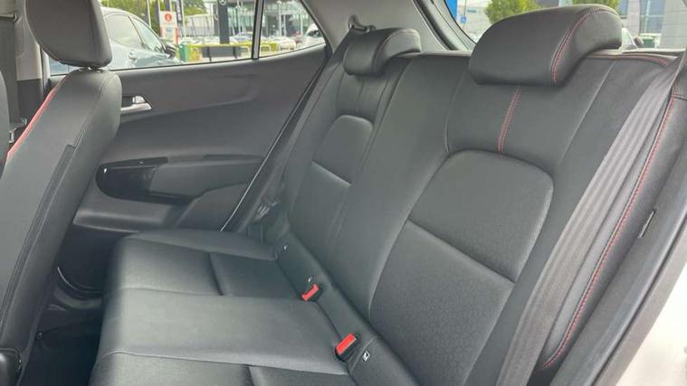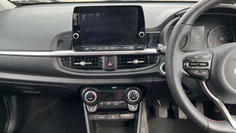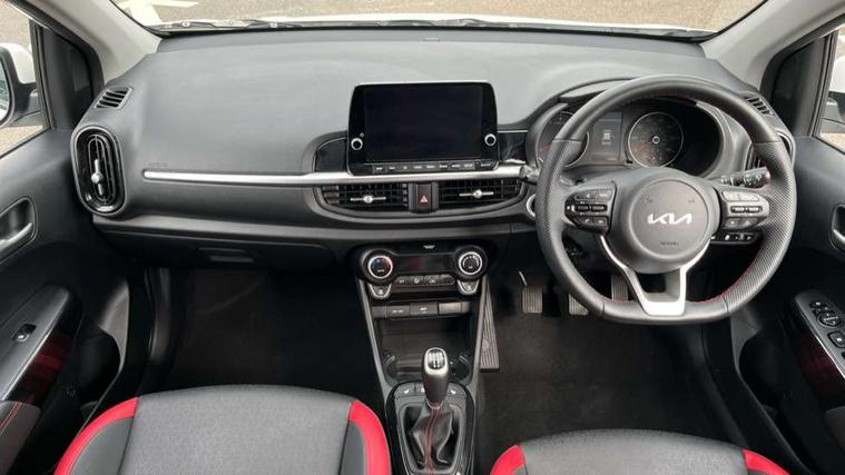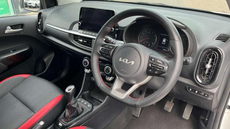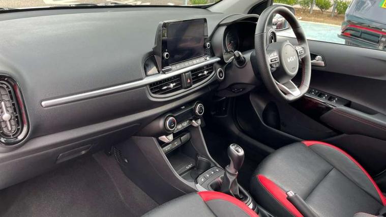 8" touch screen satellite naviagtion with RDS and DAB with telematics, Apple car play/Android Auto with voice control, Cruise control + speed limiter, Emergency call service, Emergency stop signalling system, External temperature gauge, Kia Connect (UVO), Motor driven power steering, Rear parking sensors, Reversing camera system with dynamic guidelines (Integrated into centre fascia screen), Tachometer, Trip computer, Wireless Smartphone charger, 6 speaker audio system, Bluetooth with music streaming, Steering wheel mounted controls, USB ports for connection of a media device, Automatic headlight control system, Bi-function projection headlights, Black beltline mouldings, Black grille with silver surround, Body colour B pillars, Body colour bumpers, Body colour side sill mouldings, Body coloured mirrors and chrome exterior handles, Day/night rear view mirror, Electric adjustable/heated/folding door mirrors with LED indicators lights, Front and rear electric windows with drivers's auto up/down function, Front fog lights, Headlamp levelling, Heated rear window, High mount brake light, LED daytime running lights, LED rear fog lights, Privacy glass - Rear windows and tailgate, Rain sensor, Rear side wing doors, Rear wash/wipe, Speed variable front wipers, Sports front and rear bumpers with gloss black skid plates twin exhaust, Tinted glass, Visible VIN plate, Welcome and follow-me home light functionality, 1 x rear coat hook, 12V power point front, 2 seat bench in 2nd row, 3 x passenger assist grips, 60/40 split/folding 2nd row of seats, All round height adjustable headrests, Automatic air conditioning, Black and red accents front door armrest, Centre Console with Storage Box and Sliding Armrest, Cupholders in centre console, D-cut steering wheel with red stitching, Driver and front passenger sunvisors with driver's side illuminated vanity mirrors, Driver seat height adjust, Faux leather upholstery, Front cabin lights, Glovebox, Heated front seats, Heated steering wheel, High gloss lower centre fascia trim, door armrest and air vents, ISOFIX Child seat top tethers and anchor fixings, Leather trimmed steering wheel and gearshift, Luggage area light, Luggage area parcel shelf, Passenger front seatback pockets, Satin chrome interior door handles, Single front passenger seat, Slide/reclining front seats, Tilt adjustable steering wheel, Advanced Driver Assistance Pack - Picanto, 2 x 3-point rear seatbelts, ABS/EBD, Automatic unlocking of doors in case of impact, Dual front airbags, ESC + BAS + VSM + HAC, Front passenger airbag cut-off switch, Front seatbelt height adjusters, Front seatbelt pretensioners + load limiters, Hill hold control, Knee airbags, Rear child proof door locks, Seatbelt warning, Side impact protection, Torque vectoring brake based and straight line stability (SLS), Traction control, Twin curtain airbags, Twin front side airbags, Tyre pressure monitoring system, Anti theft alarm, Engine immobiliser, Locking wheel nuts, Smart key with engine start/stop button, 16" alloy GT-Line wheels, Tyre mobility kit,