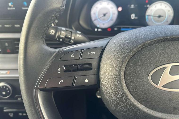 10.25" digital supervision cluster, 2nd Gen eCall, 8" Touchscreen with DAB, Apple car play/Android Auto, Cruise control + speed limiter, Forward collision assist with car, pedestrian and cycle detection, Intelligent speed limit warning, Lane follow assist, Lane keep assist, PAS, Rear parking sensor, Rear view camera with dynamic guidelines, USB C port front, 3rd brake light, Dusk sensor, Electric adjustable heated door mirrors, Front grille mesh pattern design, High beam assist, LED daytime running lights, LED Headlights, LED taillights, Rain sensor, Rear side wing doors, Rear wiper, Repositioned flat metal hyundai emblem, 3 seat bench in 2nd row, Adjustable head restraints, Air conditioning, Cloth upholstery, Floor mats, Leather steering wheel, Single front passenger seat, 3x3 point rear seatbelts, ABS with front and rear diagonally split, Autonomous emergency braking, Child locks on rear doors, Front ventilated disc brakes, Rear solid disc brakes, Tyre pressure monitoring system, 16" alloy wheels, Tyre repair kit,