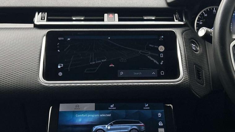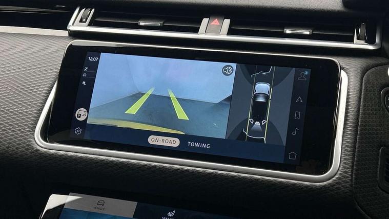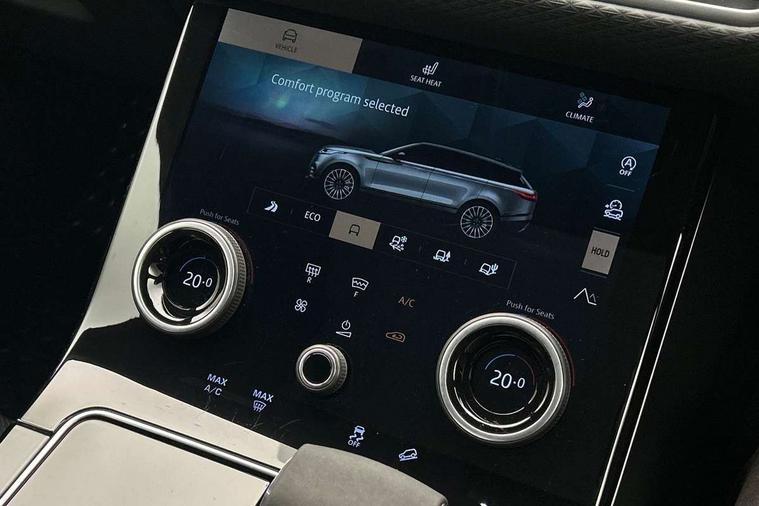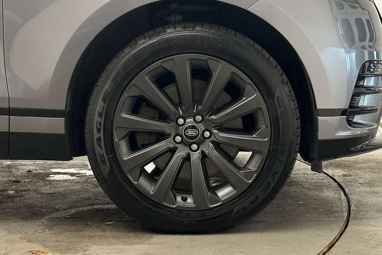 10" deployable touchscreen, Android Auto, Apple car play, Blind spot assist, Bluetooth connectivity, Brake pad wear indicator warning light, Driver condition monitor, eCall emergency call system, InControl remote, Land Rover InControl apps, Lane keep assist, Pivi pro with connected navigation, Push button start, Rear traffic monitor, Service indicator, Speed proportional electronic power assisted steering (EPAS), Traffic sign recognition with adaptive speed limiter, Trip computer, Voice control system, 8 speed automatic transmission, Adaptive dynamics, All terrain progress control, Open differential with torque vectoring by braking, Single speed transfer box, Digital Audio Broadcast radio-DAB, Steering wheel mounted controls, Acoustic laminated windscreen, Adaptive front lighting system, Auto dimming interior rear view mirror, Automatic headlamp levelling, Automatic headlights, Body coloured bumpers, Boot protection plate, Electric heated/power fold door mirrors with approach lights and auto dimming driver side, Electric windows with one touch open/close and anti trap, Flush deployable exterior door handles, Follow me home headlights, Heated rear window with timer, Heated washer jets, Heated windscreen, LED 3rd brake light, Metal load space scuff plates, No badge - Removes engine badge, Rain sensor windscreen wipers, Rear animated directional indicators, Rear fog lights, Rear side wing doors, Rear wash/wipe, Tailgate/boot lid spoiler, Trailer stability assist, Velar and R-dynamic badge, 3 seat bench in 2nd row, Ambient lighting, Bright metal pedals, Driver/passenger sunvisors with illuminated vanity mirrors, Isofix system on outer rear seats, Loadspace cover, Overhead lighting console, Overhead stowage for sunglasses, Passive front headrests, Rear air vents, Rear centre headrest, Satin chrome gearshift paddles, Single front passenger seat, Standard interior, Twin front cupholders, Twin sliding front centre armrest, Online pack with data plan - Velar, 380mm front brakes and 325mm rear brakes, 3x3 point rear seatbelts, Anti-lock braking system (ABS), Cornering brake control, Curtain airbags, Customer configurable autolock, Door side intrusion beams, Driver airbag, DSC - Dynamic Stability Control, Electronic brake force distribution, Electronic parking brake, Electronic traction control, Emergency brake assist, Emergency braking, Front and rear seatbelt reminder, Hill descent control, Hill launch assist, Low traction launch, Passenger airbag, Power operated child locks, Rear airbags, Roll stability control, Side airbags, Tyre pressure monitoring system, Unpainted brake calipers, Global lock and unlock switch on driver door, Immobiliser, Intrusion sensor, Keyless entry, Lock only switch on front passenger door, Locking wheel nuts, Perimetric alarm, Remote central locking,