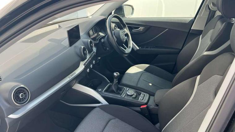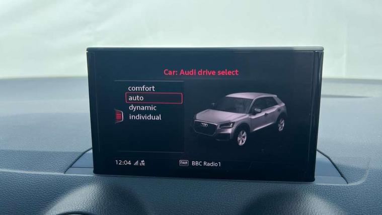 Audi drive select, Audi smartphone interface, Bluetooth hands free telephone connection, MMI - Multi Media Interface control system, MMI SD card Navigation, PAS, Service interval indicator, Voice control system, Dynamic suspension, Audi music interface, Aux input, CD player, DAB digital radio module, MMI radio plus with 7" colour MMI screen and MMI controller, USB port, Body colour door mirrors, Chrome exhaust tailpipe, Door mirror integrated indicators, Electrically adjustable and heated door mirrors, Front and rear electric windows, Rear wiper, Sunband for windscreen, Aluminium door sill trims, Centre console with storage/cupholders, Front and rear door pockets, Front and rear headrests, Front and rear velour floor mats, Front centre armrest, Front sports seats, Glovebox, Height adjustable front seats, Height/reach adjust steering wheel, ISOFIX on front passenger and rear outer seats, Storage compartment in rear centre console, Titanium grey cloth headlining, Non smoking pack - Q2, 3x3 point rear seatbelts, ABS+Electronic Brake force Distribution, Curtain airbags, Driver and passenger airbags, Driver and passenger side airbags, EDL + ASR, Electrically operated child locks on rear doors, Electromechanical parking brake, ESP, Multi-Collision braking, Pre-sense front with pedestrian recognition, Seatbelt warning light, Tyre pressure monitoring system, Warning triangle and first aid kit, Locking wheel bolts, Remote central locking, Thatcham category 1 alarm + immobiliser, Aluminium interior trim,