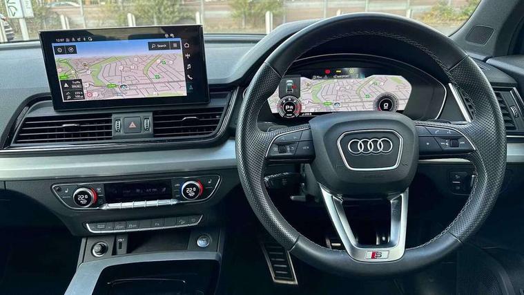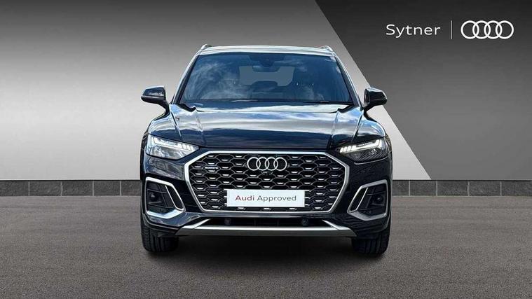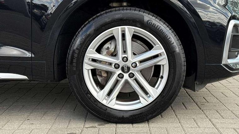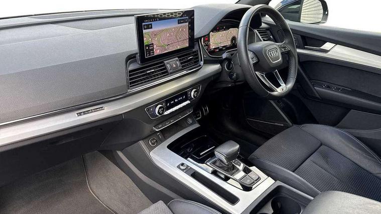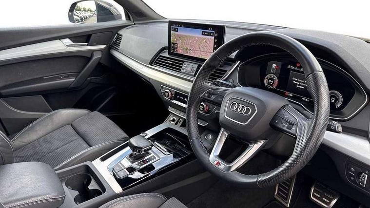 Audi connect safety and service (e-call), Audi connect with Amazon Alexa Integration, Audi drive select, Audi virtual cockpit plus with 12.3" screen and three different layout designs, Audi wireless smartphone interface, Automatic start-stop system with coasting functionality and efficiency programme, Bluetooth interface, Electro - mechanical power assisted steering, MMI navigation plus with 10.1" touch screen, Power tailgate, Reversing camera, Service interval indicator, Voice control system with Audi hotword activation "Hey Audi", Diesel particulate filter, Quattro on demand, S line sports suspension, 2 x USB charging port with aux input socket, DAB Digital radio, Acoustic windscreen, Aluminium roof rails, Audi matrix LED headlights with dynamic front and rear indicators, Auto dimming door mirrors, Auto dimming rear view mirror, Automatic headlight adjustment, Automatic headlights and windscreen wipers, Body colour door mirrors, Body colour rear diffuser with matt aluminium silver surrounds, Body colour underbody protection, Chrome plated exhaust trims, Daytime running lights, Door sills in Selenite silver, Electric adjustable/heated/folding door mirrors, Front air inlet surrounds in aluminium, Front and rear electric windows, Front radiator grille in honeycomb design, Headlight washers, High level LED brake light, Lower bumpers painted in contrast Manhattan grey, Rear chrome trim strip below lights, Rear privacy glass and rear side windows, Rear side wing doors, Rear wiper, Roof bars, S Line badges on the front wings, S Line front and rear bumpers, S Line rear spoiler, S Line side skirts, 3 rear headrests, 40:20:40 split folding 3 rear bench seat in 2nd row with rear centre armrest, Black cloth headlining, Comfort front centre armrest, Contrast stitching on seats, steering wheel and gear lever gaiter, Deluxe 3 zone electronic climate control, Front head restraints, Front/rear floor mats, Gear lever in black leather, Heated front seats, Height/reach adjustable steering column, Illuminated door sill trims with S logo, ISOFIX child seat mounting and top tether, Manual seat adjustment with 4-way electric lumbar support, Removable luggage compartment floor, Single front passenger seat, Stainless steel pedals, Sunvisors with vanity mirrors, Trunk roller cover, High gloss pack - Q5, LED interior light pack - Q5, 3 point seatbelts on all seats, 6 airbags - Driver, front passenger, curtain and side airbags, Electrically operated child locks on rear doors, Electromechanical parking brake, Electronic stabilisation control including ABS, ASR and EDL, Front passenger airbag deactivation, Hill descent control, Hill hold assist, Multi collision brake assist, Pop-up bonnet for pedestrian protection, Pre sense city, Seat belt force limiter, Seatbelt monitoring, Tyre pressure warning, Warning triangle and first aid kit, Anti theft alarm, Anti-theft wheel bolts, Keyless Go access/ignition system, Remote central locking, Matt brushed aluminium inlays,