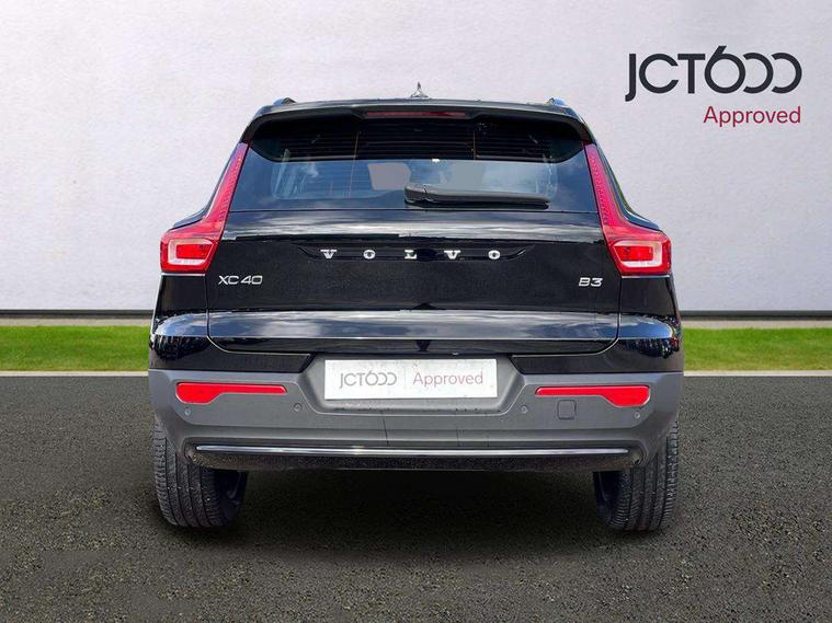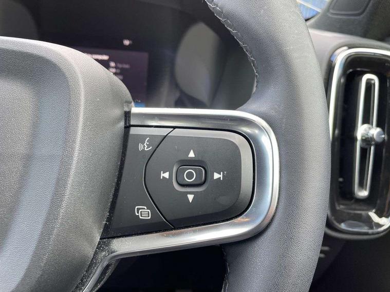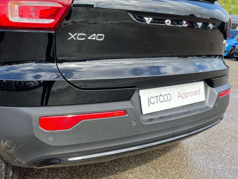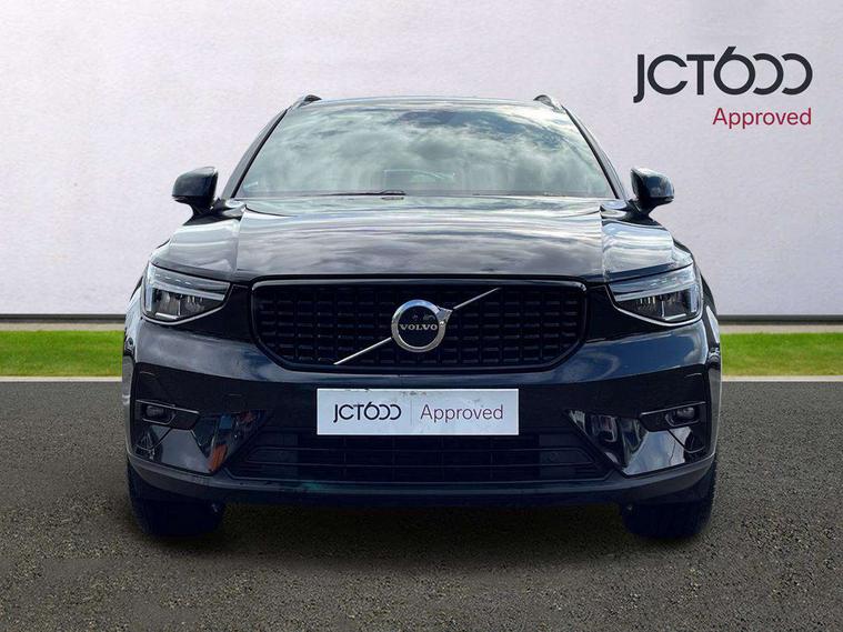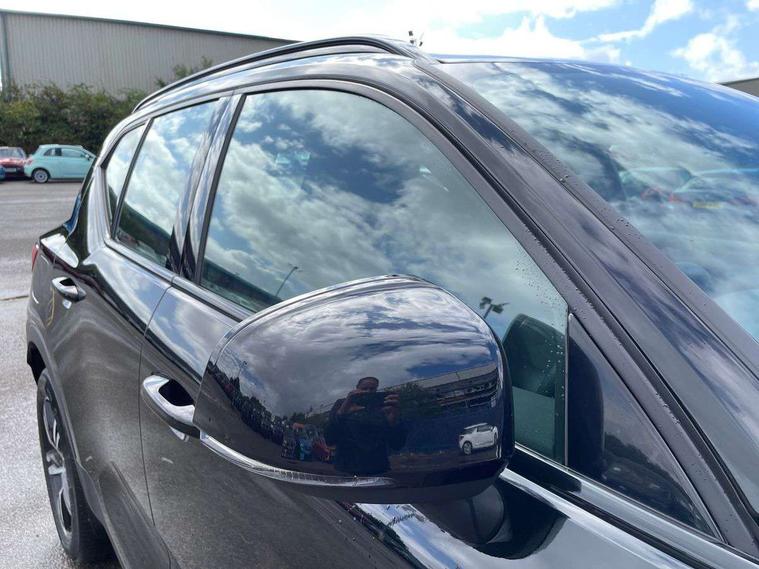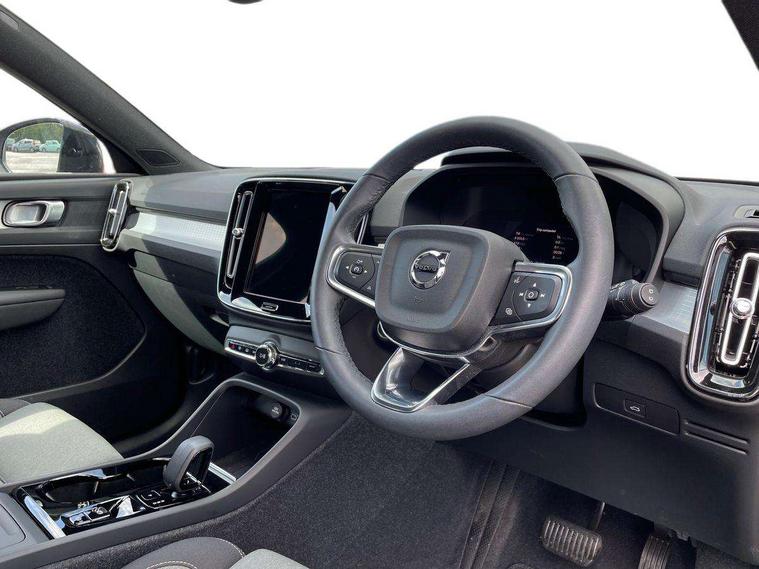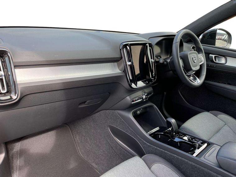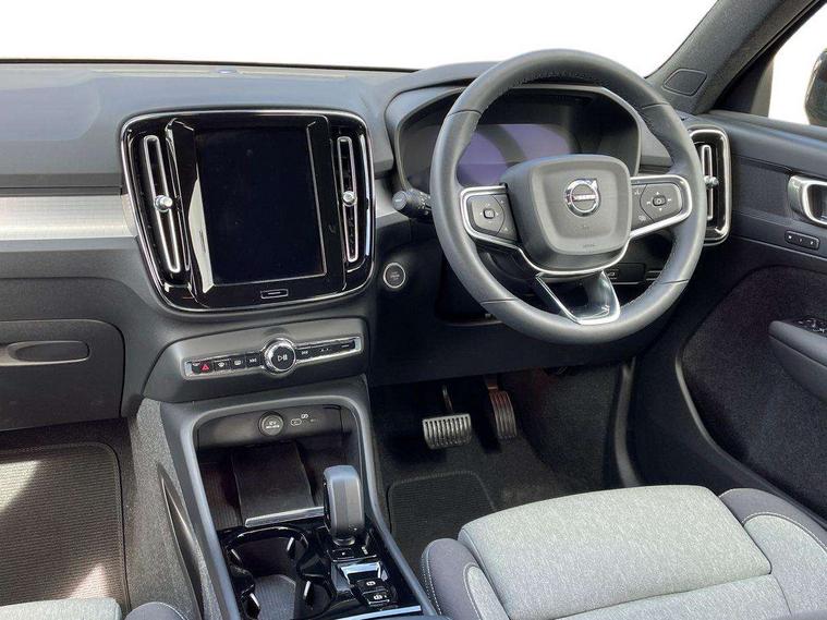 12.3" Progressive Driver Display, 9" centre console portrait touch screen, Adjustable steering wheel force, Bluetooth hands free telephone kit, Cruise control, Driver awareness - blind spot information system with steer assist, cross traffic alert with autobrake, rear collision warning and migitation, E-call, Front park assist, Google automatic services - Nav with google maps, apple carplay/android auto, voice recognition with google assistant, Hands free power tailgate, Lane keep assist with driver alert control, Oncoming Lane Mitigation, Rear park assist, Rear park assist camera, Speed limiter, Speed sensitive steering, Wireless/Inductive Mobile Phone Charging, Dynamic chassis, DAB Digital radio, High performance sound, 8 speakers/250W, front USB and 2 rear type C USB, Steering wheel mounted remote controls, Adaptive brake lights with high level LED brake lights, Auto dimming feature for exterior door mirrors, Auto dimming interior mirror, Automatic headlamp levelling, Automatic LED Headlights + Active high beam incorporating daytime running lights, Front aluminium tread plates, Front and rear electric windows, High gloss black front and rear skid plate, High gloss black mesh front grille with high gloss black surround, High gloss black window trim, Home safe and approach lighting, Integrated roof rails in high gloss black, LED front fog lights, Puddle lights, Rain sensor with automatic windscreen wiper activation, Rear side wing doors, Rear wiper, Roof antenna, Roof spoiler, Visible VIN plate, 12V socket in front tunnel console and luggage compartment, 2-Zone electronic climate control with CleanZone air quality system and pollen filter, 3 seat bench in 2nd row, 3 Spoke tailored steering wheel with chrome trim, 60/40 versatile split folding rear seat, A-pillar parking ticket holder, Ambient front door and instrumental panel lighting, Centre console cupholders and storage, Flexible load floor and grocery bag holder, Floor mats, Front door pocket and front cupholder illumination, Front footwell illumination, Front headrests, Front reading light and theatre lighting, Front seat cushion extensions, Front tunnel pocket, Glovebox bag hook, Heated front seats, Height adjustable passenger seat, Height/reach adjustable steering column, High gloss centre tunnel deco, Illuminated glovebox, Illuminated luggage compartment, Illuminated tailgate, Illuminated vanity mirrors, Integrated waste bin, Isofix attachments on outer rear seats, Load protection net, Multi directional lumbar support, Power driver seat with memory + exterior mirrors memory, Rear armrest / integral cup holders / storage tray, Rear headrests, Rear reading and courtesy lights, Single front passenger seat, Underfloor cargo storage, Climate pack without heated front seats - XC40, 3x3 point rear seatbelts, City safety with steering support with Pedestrian + cyclist + front collision warning with full auto brake and rear auto brake, Drivers knee airbag, Dual stage driver/passenger airbags, Electronic parking brake with auto hold, First aid kit, Front and outer rear seatbelt reminder and pretensioners, Front seats SIPS airbags, Hill descent control, Hill start assist, Inflatable curtain, Passenger airbag cut-off device, Power child locks on rear doors, Road sign information display, Run off Road Mitigation, Run off Road Protection, SIPS (Side Impact Protection System), Slippery road and hazard light alert, Stability and Traction Control with Spin control, Engine Drag Control and Corner Traction Control, Tyre pressure monitoring system, Vehicle deceleration control with Anti-lock Brake System, Electronic Brake Distribution and Emergency Brake Assist, Warning triangle, WHIPS whiplash protection system - front, Anti-theft alarm including immobiliser/volume sensor + level sensor, Key integrated remote control central locking + fuel flap with deadlocking system and auto open/close power windows, Keyless drive includes keyless entry and keyless start, Locking wheel nuts,